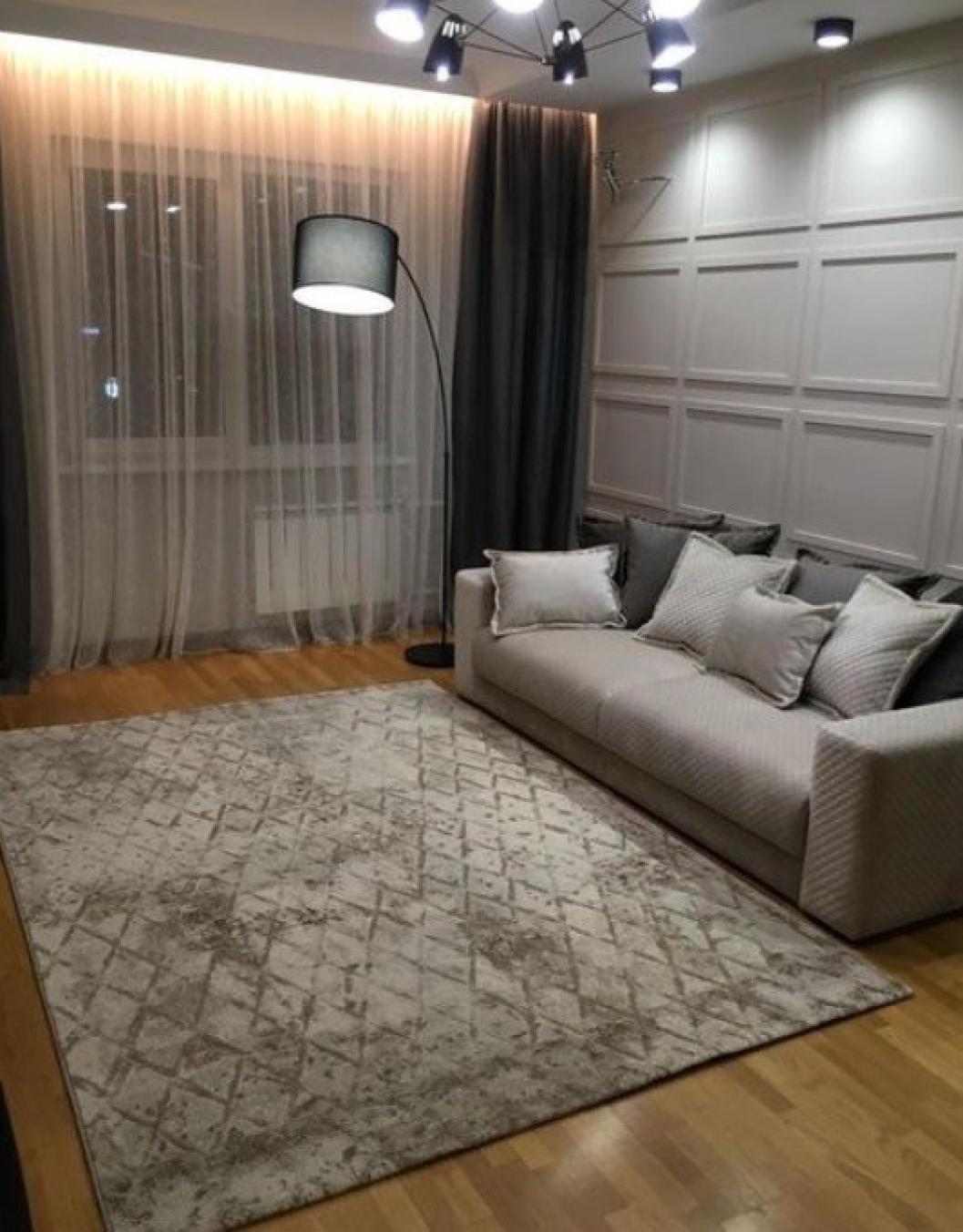 Великолепный ковер бельгийского производства из коллекции «Argentum». Модель выполнена с основой из полиэстера и джута, а ворс — из полипропилена Exellan. На основе полотна серого оттенка изумительно смотрится ромбовидный геометрический узор бежевого цвета. Плотность ворса составляет миллион узлов на один квадратный метр. Вес относительно легкий и составляет порядка трех килограммов. Напольный ковер машинного производства отлично смотрится и в доме, и в офисе.