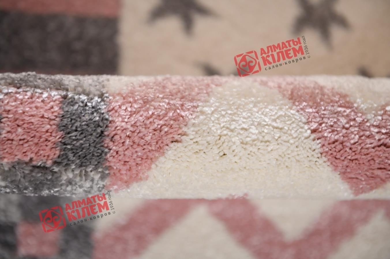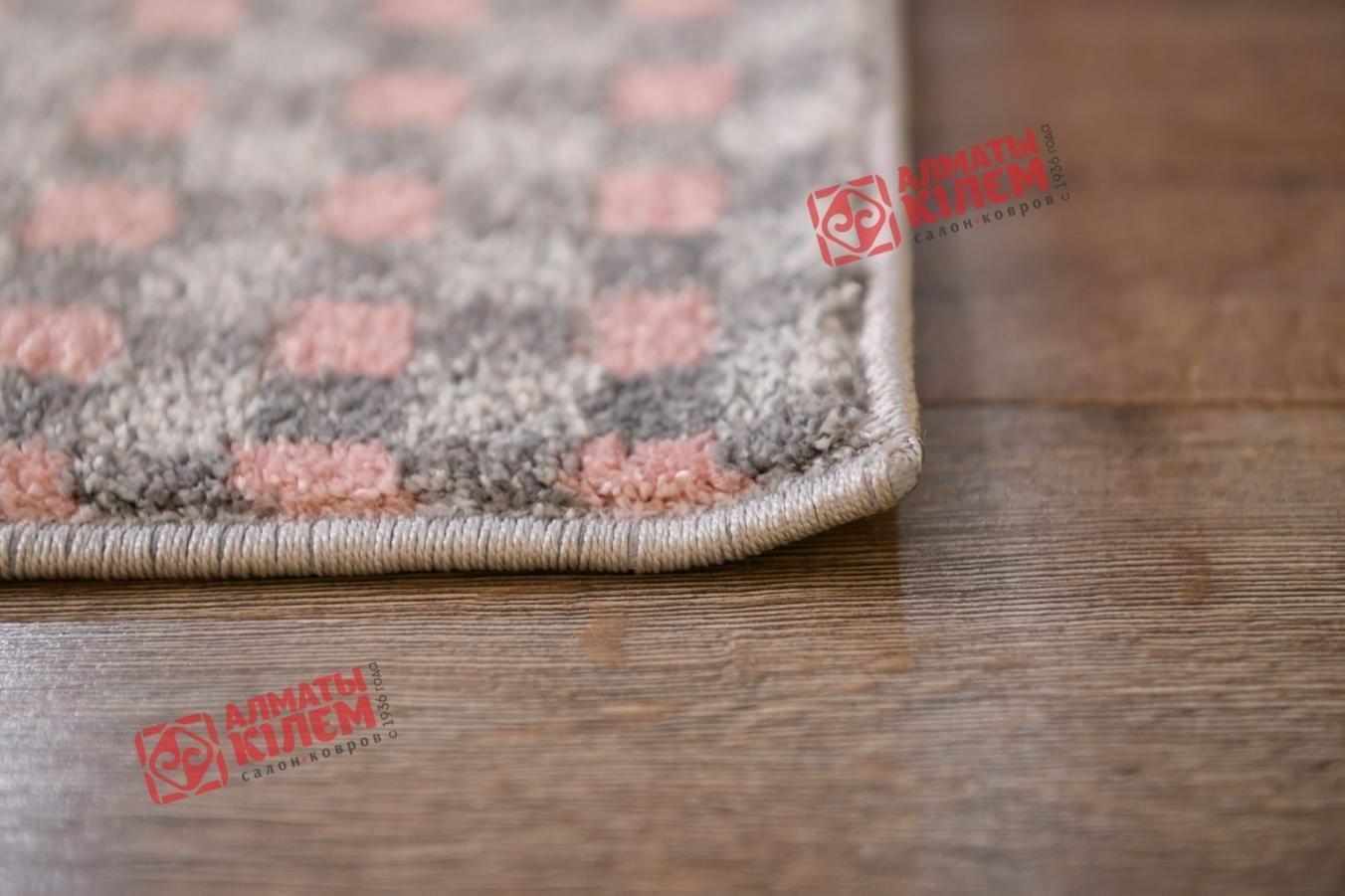 Выполнен ковер из полипропилена Фризе. Это синтетическое волокно гораздо лучше подходит для детской. Натуральная шерсть нередко вызывает аллергию. Особенно в юном возрасте. Кроме того, в ней заводится моль, пылевые клещи. Фризе без каких-либо обработок является гипоаллергенным. В нем не заводятся насекомые.