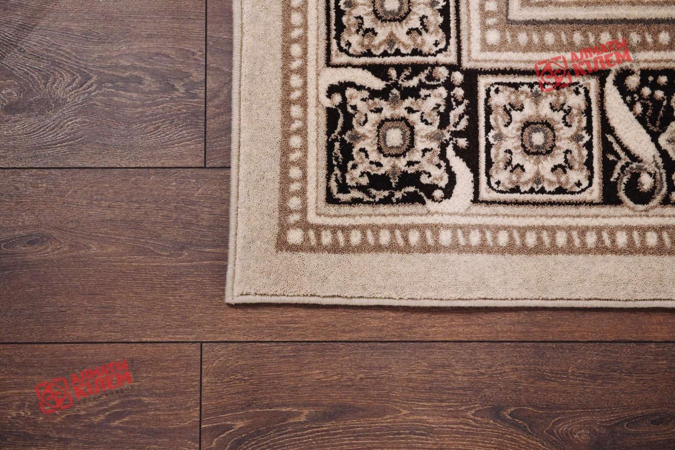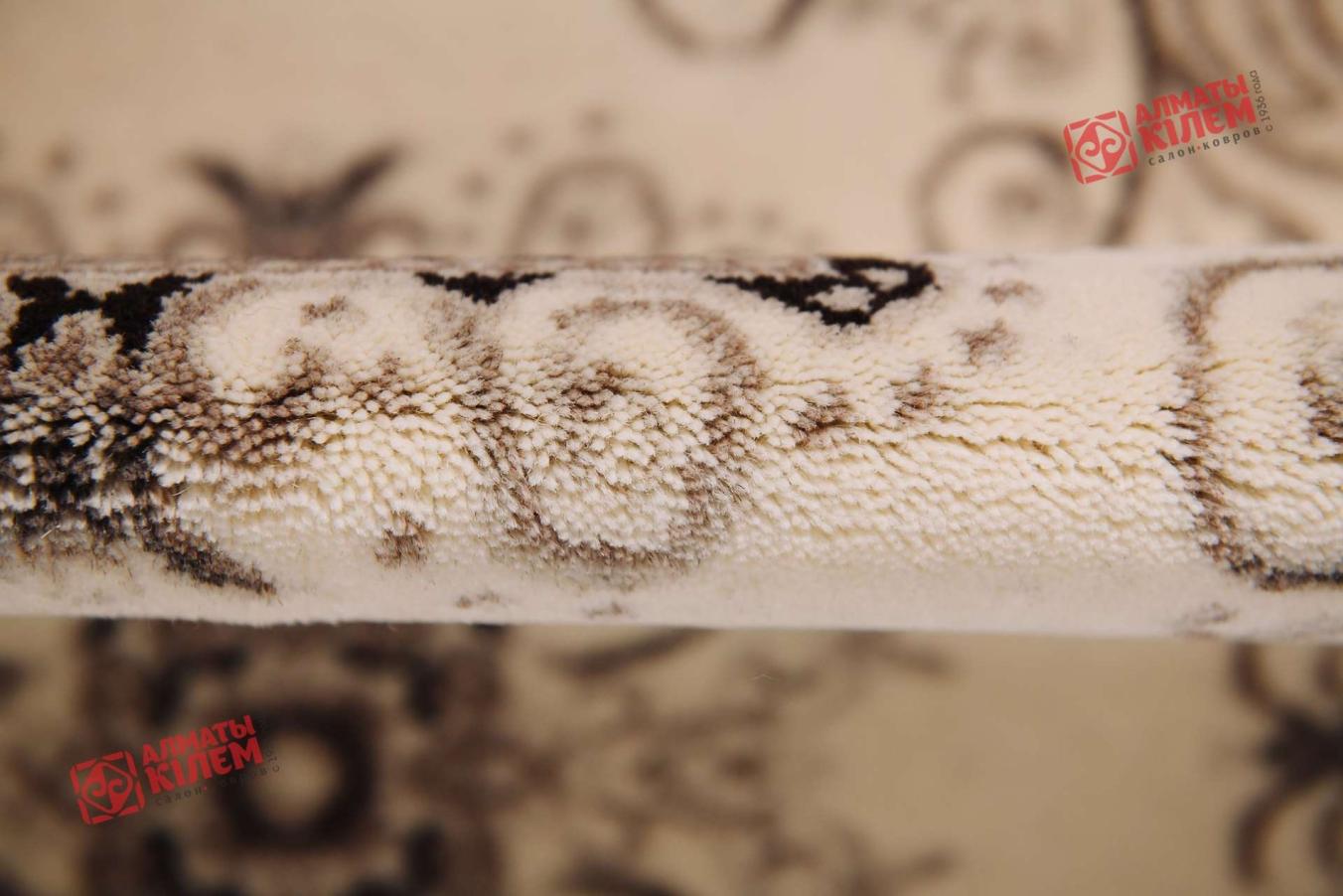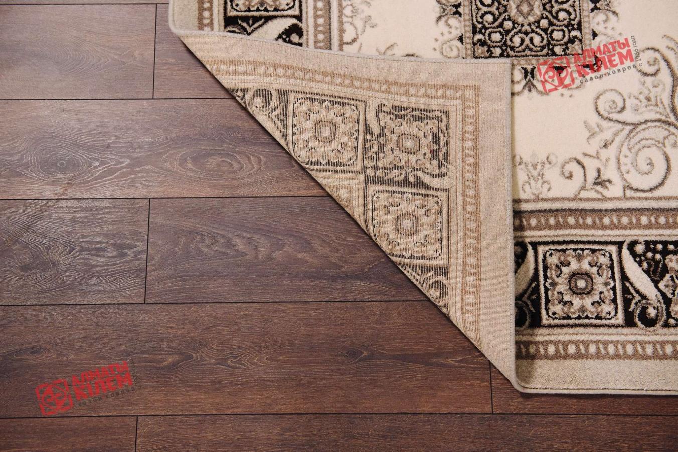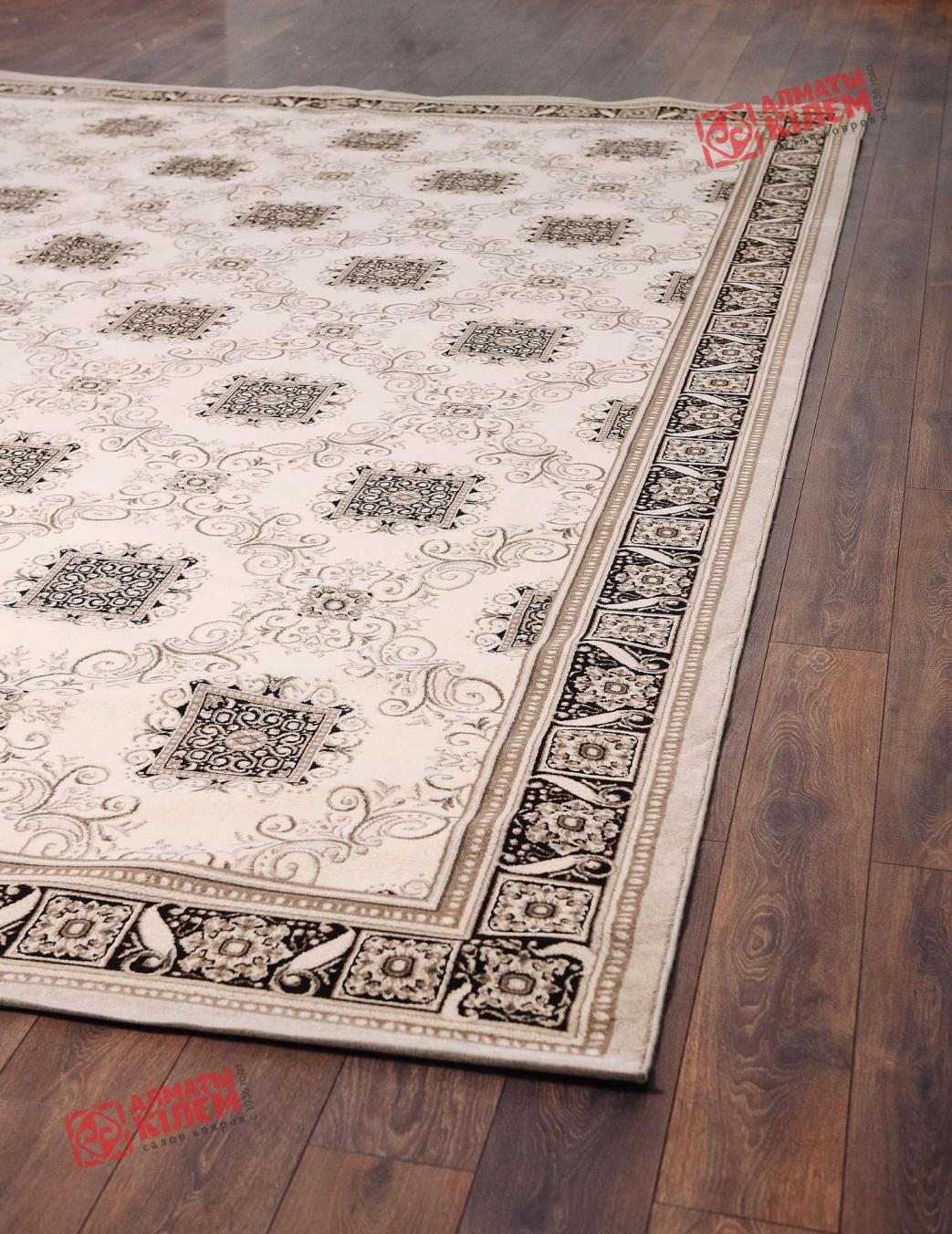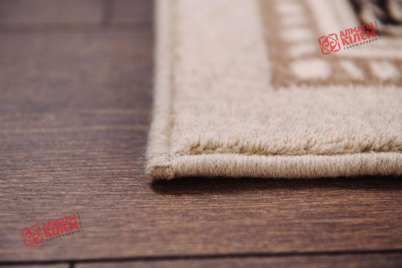 Стопроцентно шерстяной ковер из коллекции «Чингис ковер» от монгольского бренда «Erdenet Carpet» машинного производства в кремовом оттенке. Последний факт нисколько не влияет на качество изделия. Джутовая основа с использованием хлопка и полиэстера придает полотну хорошую прочность и износоустойчивость. Высокая плотность, когда на квадратный метр ковра приходится 340 тысяч узелков, позволяет использовать покрытие в местах с относительно большой проходимостью.