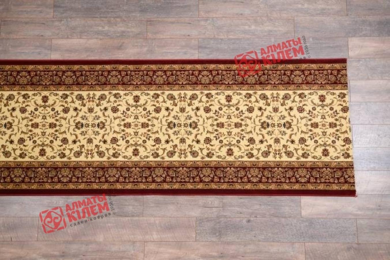Ковровая дорожка производства Беларусь представляет собой напольную дорожку из полипропилена Хит-Сет. Материал имитирует натуральную шерсть, но стоит гораздо дешевле, а главное гипоаллергенен. Основной цвет модели, купить которую можно с доставкой в Алматы-Кілем, бежевый. По фону идет флористический узор, обрамленный рамкой. Рисунок и бордюр красные. Полотно прекрасно вписывается в домашние и офисные интерьеры.