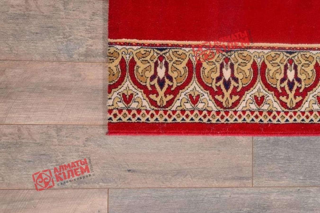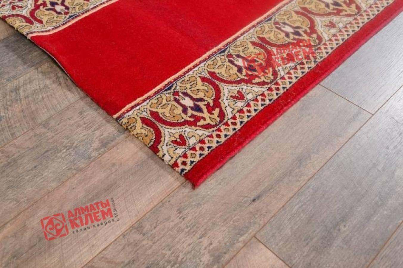 Ярко-красная ковровая дорожка производства Монголии с широким роскошным бордюром бежево-кремового цвета по краям станет великолепным украшением интерьеров прихожих, холлов, кабинетов, офисов, различных учреждений. Модель, купить которую с доставкой в Алматы-Кілем можно прямо на сайте, выполнена из стопроцентной высококачественной шерсти. Плотность ковровой дорожки средняя, что позволяет сохранить нежность и мягкость изделия.