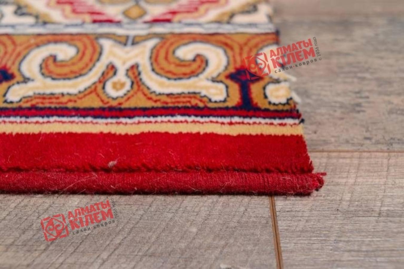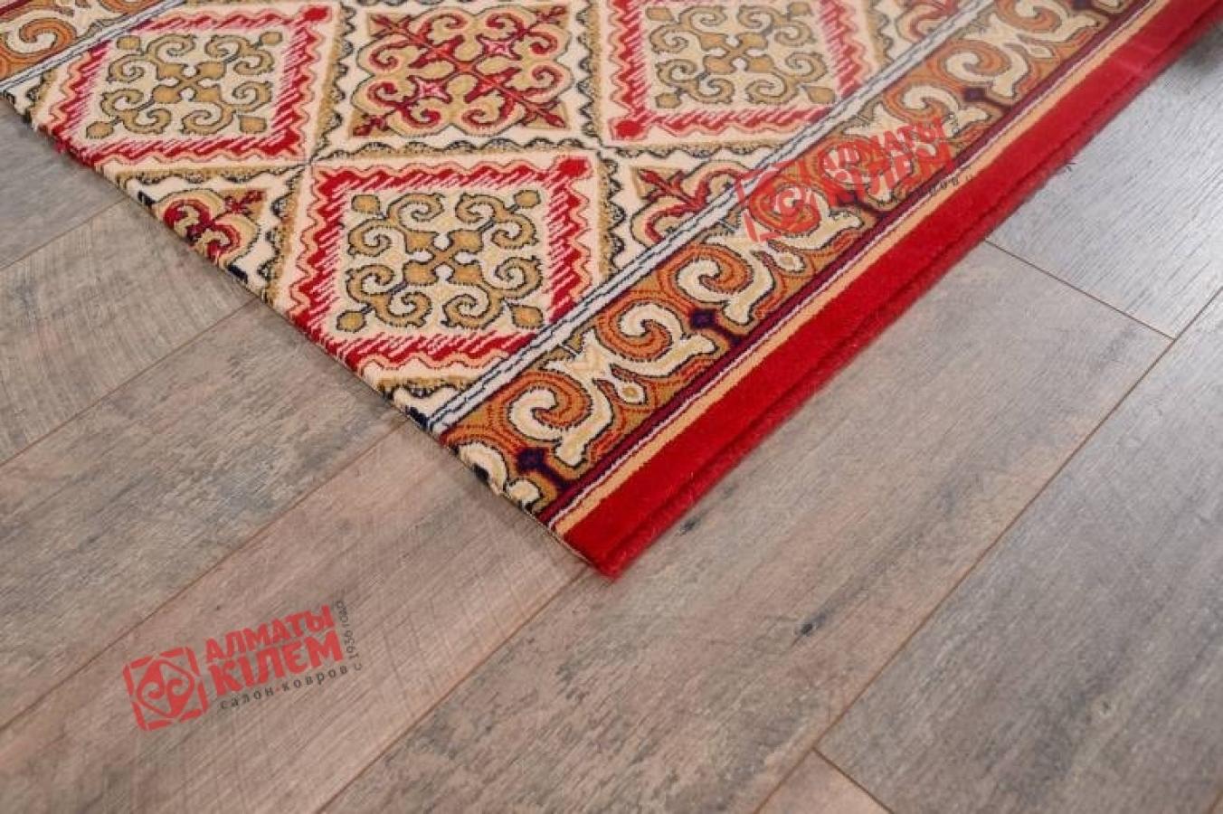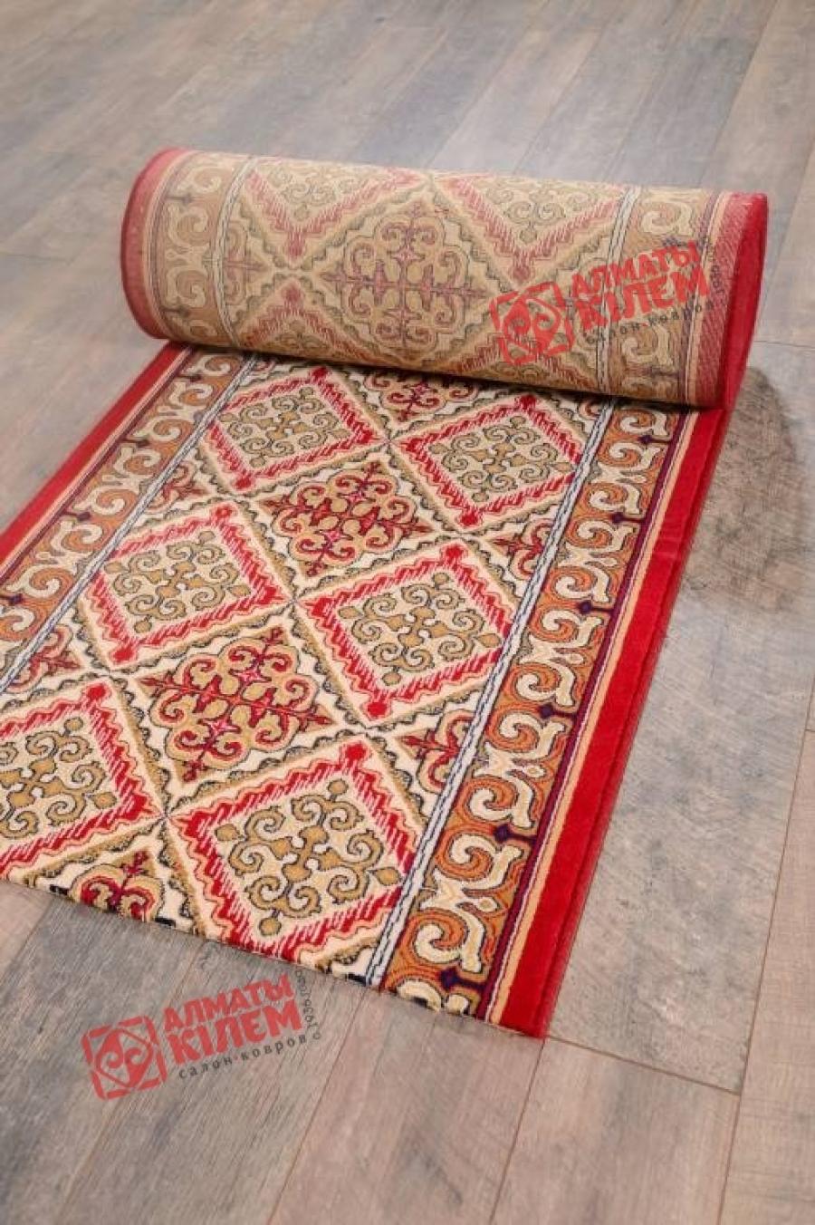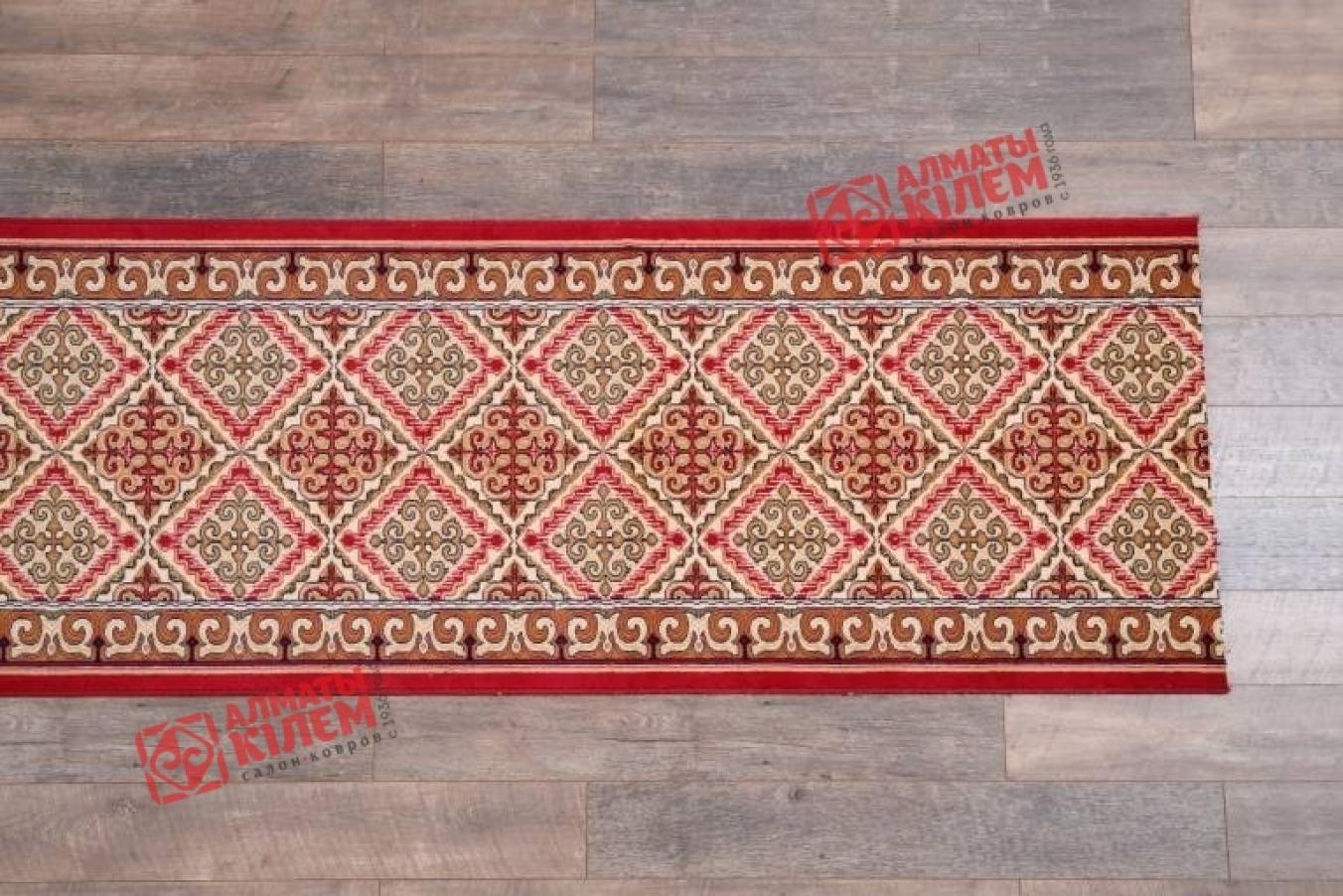 Ковровая дорожка из стопроцентной шерсти от монгольского бренда Erdenet Carpet в восточном стиле. Купить модель с доставкой можно не только для домашних, но и офисных интерьеров, оформленных в соответствующем дизайне. Покрытие декорировано кыргызско-казахским орнаментом. Высота мягкого и нежного ворса средняя. Основной цвет — рубин, а узора — золотистый, бежевый, бордо.