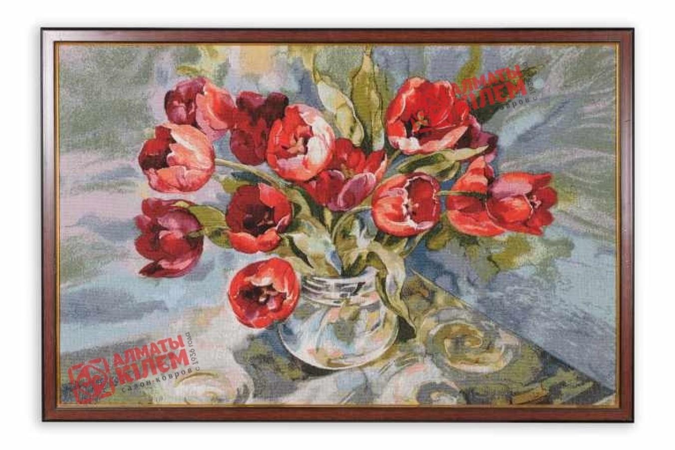 Гобелен «Дыхание весны» в темно-коричневом багете станет достойным украшением гостиной комнаты, спальни, столовой или обеденной зоны, холла. Красные маки на гобелене в прозрачной вазе смотрятся просто роскошно. Фон полотна, купить который можно в Алматы-Кілем cдоставкой или самовывозом, продуман до мелочей. На столе и стенах изображены тени и блики от букета в различных оттенках зеленого, создающего эффект того, что до вазы можно буквально коснуться рукой.