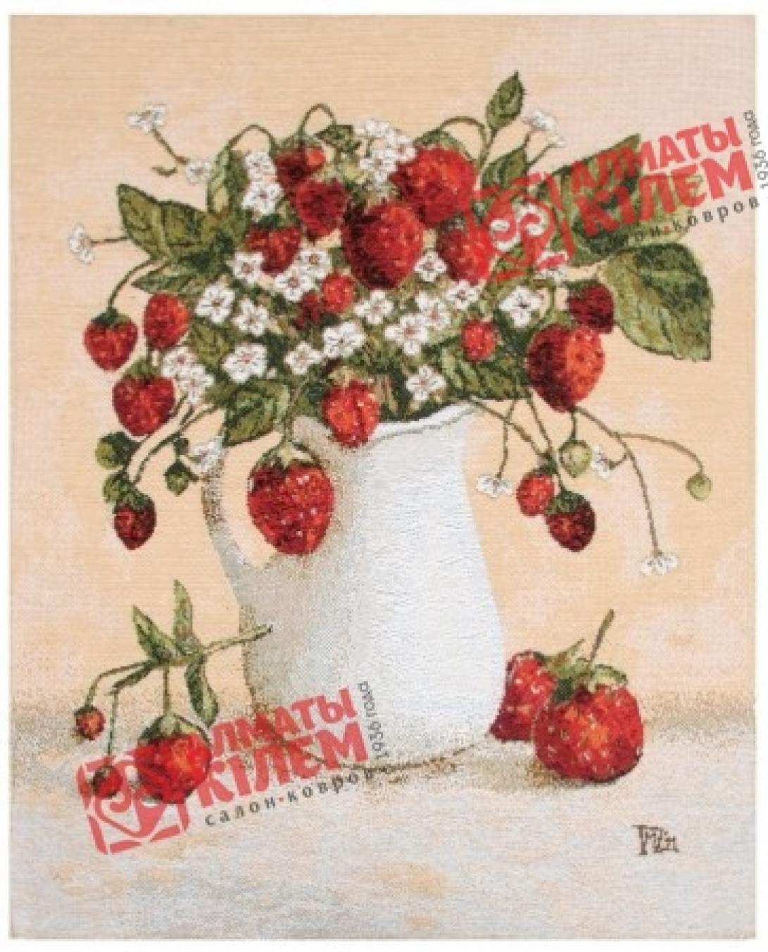 Гобелен «Клубника в кувшине» — это нежный натюрморт, вызывающий улыбку и радость. На бежевом фоне полотна, купить который с доставкой уже сейчас можно в Алматы-Кілем, изображена светлая скатерть с белоснежным кувшином. Внутри вазона не цветы, а куст с клубникой. Красные ягодки продолговатой формы и разного размера не сорваны с зеленых веточек, а заботливо помещены в вазон словно букет. На кустике еще остались не завязавшиеся соцветия. Лучшие предложения по гобеленам у нас в интрент-магазине.