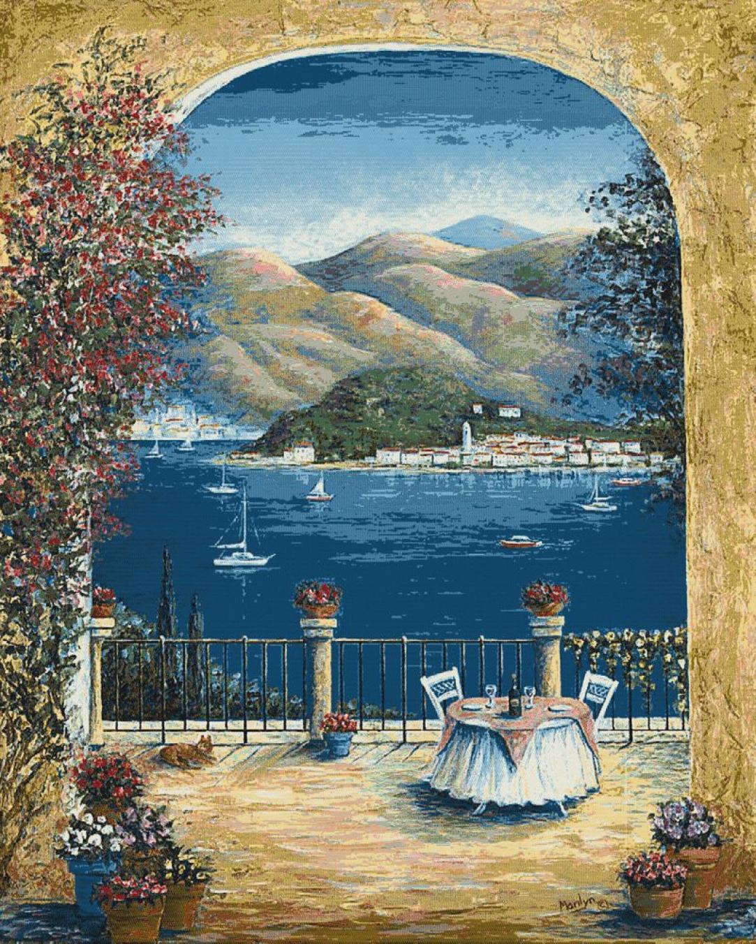 Роскошный гобелен «Корсика» в позолоченной багетной рамке переносит на великолепный средиземноморский остров Италии. Накрытый стол на двоих с бутылкой вина недвусмысленно намекает на романтический ужин с видом на море, неспешно плавающие парусные лодки, горы, расположившийся на противоположном берегу городок. Глядя на этот пейзаж, невольно вспоминаешь лучшие времена, проведенные вместе с дорогими и любимыми людьми. Купить гобелен можно в интернет-магазине Алматы-Кілем по лучшей ценам.