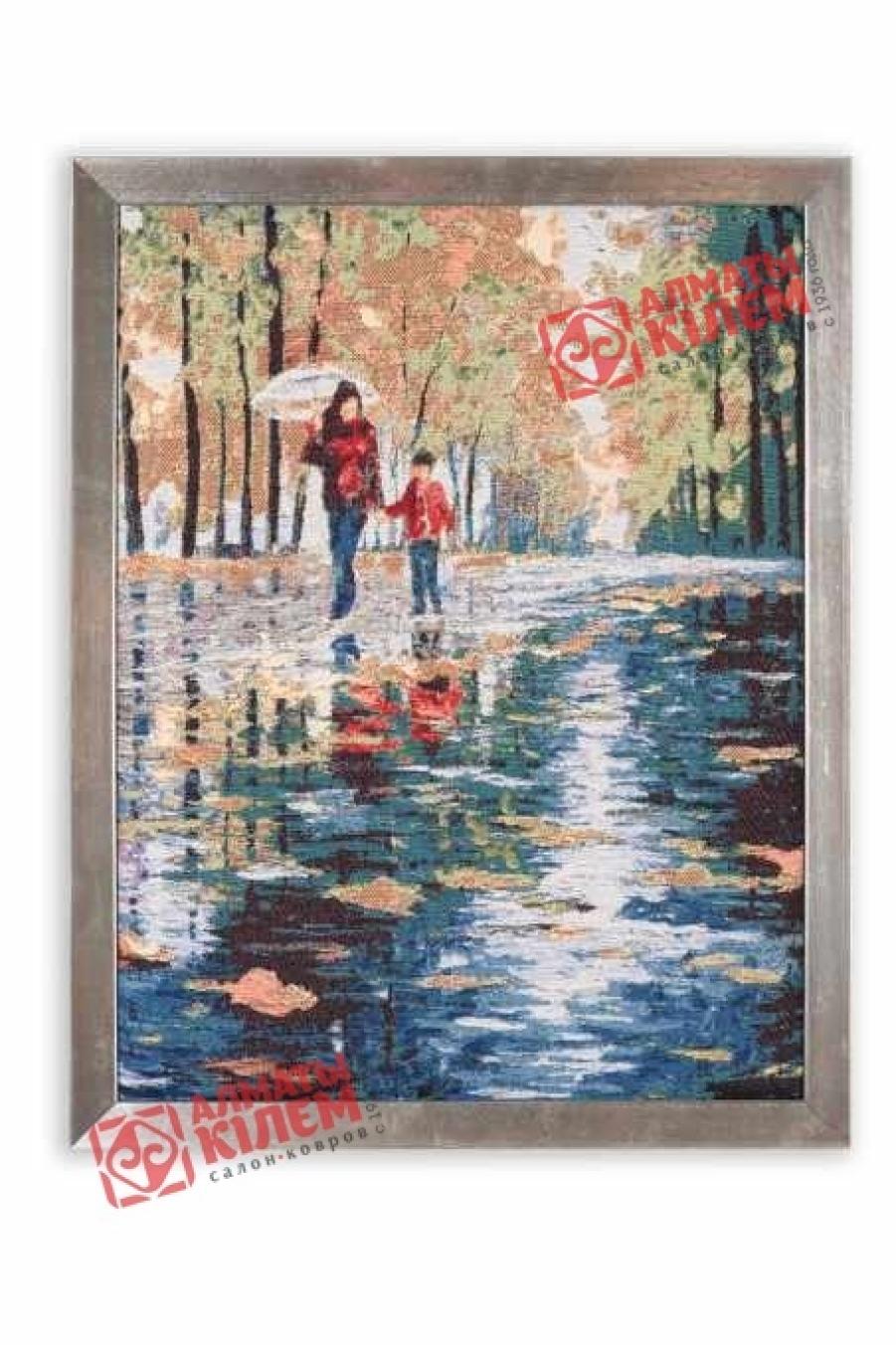 Гобелен «Прогулка» с осенним пейзажем — это поистине универсальный настенный декор. На полотне изображены мама с сыном, неспешно прогуливающиеся под зонтиком по парку в дождливый день. Они явно никуда не торопятся, и на улице стоит теплая погода, а малыш безумно радуется лужицам под ногами. Купить картину в Алматы-Кілем с доставкой по всей территории Казахстана можно абсолютно в любую комнату. Она будет уместна везде.