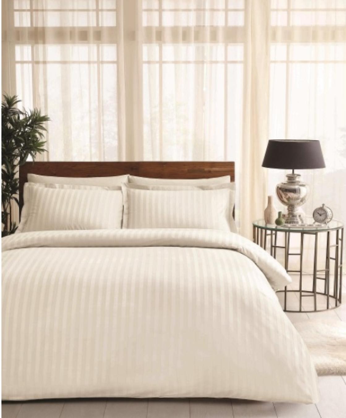Невероятно изысканное постельное белье «Palace» поистине достойно украшать дворцовые покои. Комплект выполнен в классическом стиле. Нежная кремовая палитра и роскошное полотно в вертикальную полоску из сатина-жаккарда буквально преобразят спальню.