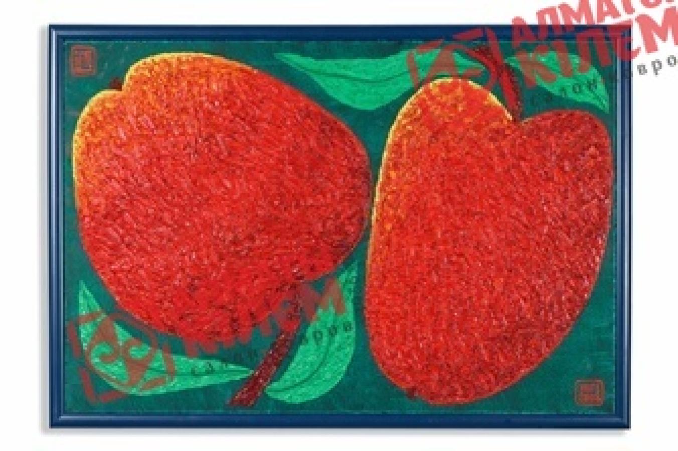 Невероятно красивый натюрморт от художника Гвоздева завораживает своей оригинальностью. Два огромных красных яблока занимают собой практически весь холст. Сочетание темно-зеленого фона и светло-зеленых листочков придает картине интересный эффект присутствия. Яблоки выглядят словно настоящие. Хочется буквально протянуть руку и коснуться каждого. Написанный маслом натюрморт станет великолепным подарком на новоселье. Он украсит собой гостиную, спальню, столовую, офис или кабинет. Этот холст одинаково великолепно будет смотреться абсолютно в любом помещении и интерьере. Картина ассоциируется с одним из красивейших городов Казахстана — Алматы.
