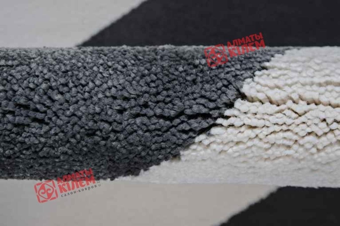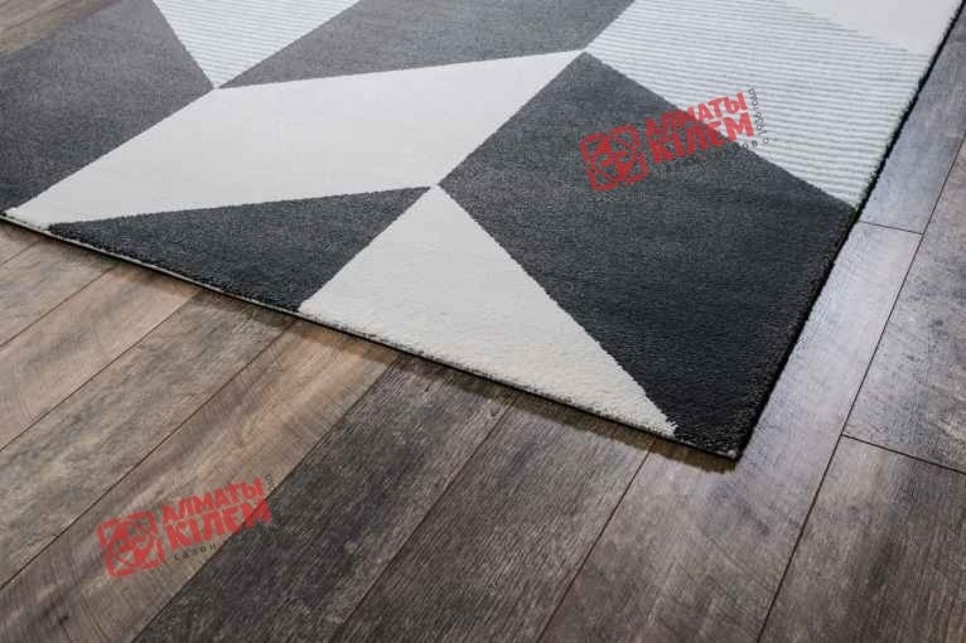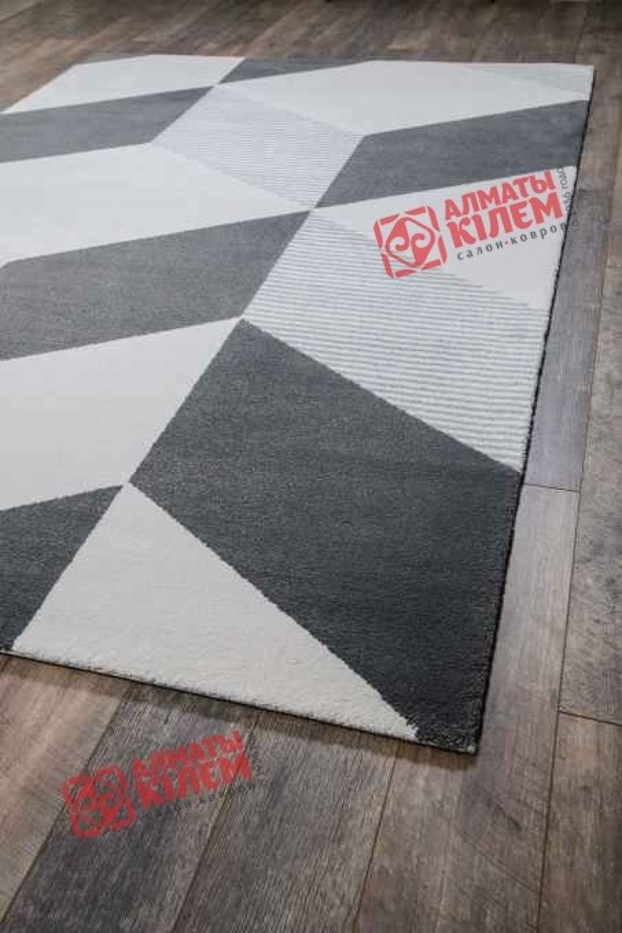 Оригинальный напольный ковер, выполненный из полипропилена, не оставит равнодушным абсолютно никого. На белоснежном фоне роскошного напольного покрытия серым изображены прямоугольники. Одни полностью серые, а другие, наоборот, имеют полосатый узор. Они расположены таким образом, что создают великолепный трехмерный эффект столбов, образуемых выпуклую поверхность, заканчивающуюся светлой площадкой, рядом с которой на уровень выше находится другая. Смотрится такое дизайнерское решение просто великолепно. Ковер одинаково великолепно смотрится в современных интерьерах гостиных и спален, кухонь и столовых, детских и ванных, прихожих и холлов.