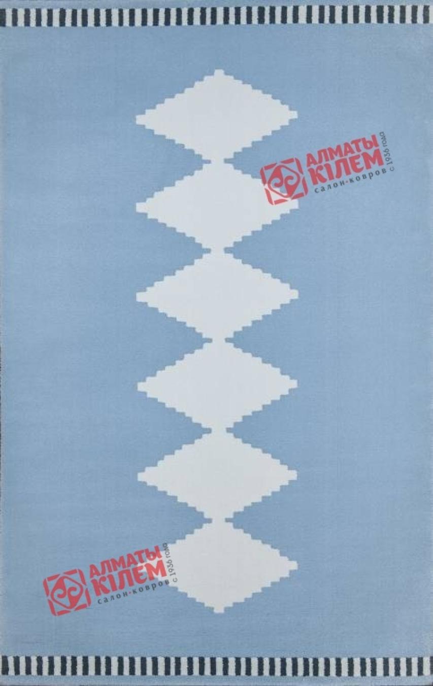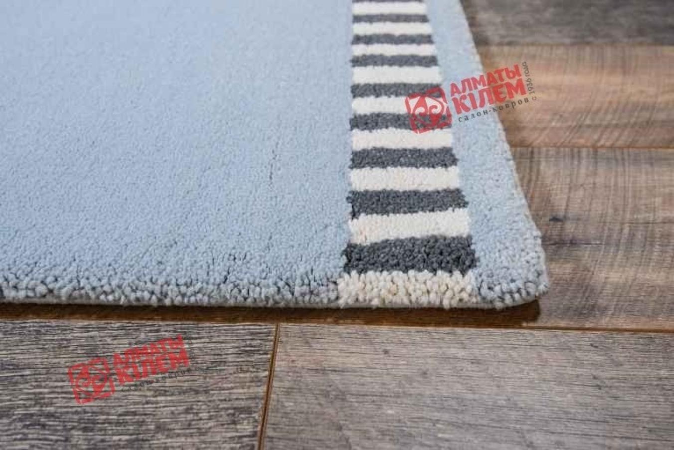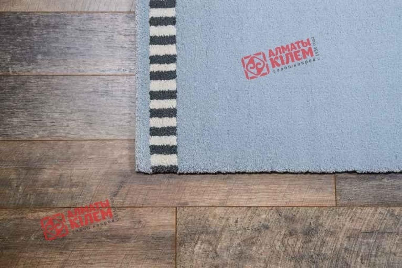 Оригинальный напольный ковер бельгийского производства представляет собой покрытие в современном стиле с геометрическим узором. На серо-голубом фоне изображены светлые ромбы. Они расположены вдоль полотна и образуют соединенную в единое целое полоску. Дизайн ковра отличает оригинальность и универсальность. Модель прекрасно впишется абсолютно в любой современный интерьер гостиной, спальни, детской, ванной, прихожей, кухни и спальни. Универсальность достигается благодаря полипропилену, из которого выполнено изделие. Этот материал прекрасно «чувствует» себя при высокой влажности и не притягивает пыль с грязью, а также отличается простотой в уходе.