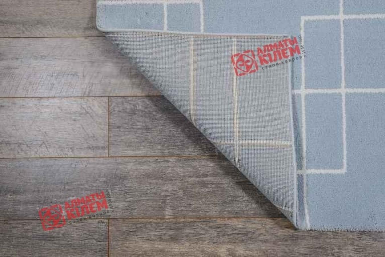 Серо-голубой ковер, выполненный из полипропиленового волокна, со средним ворсом станет прекрасным украшением для домашних современных интерьеров. Он будто создан для стилей минимализм, хай-тек и модерн. Гостиные, спальни, кухни и столовые, детские, ванны и прихожие буквально преображаются и наполняются атмосферой подчеркнутого комфорта, уюта и строгости. Геометрический узор с правильными и четкими линиями смотрится сдержанно и эффектно. Белые полоски, образующие геометрический абстрактный узор, придают покрытию особую изысканную красоту. Средний ворс напольного покрытия не просто создает комфортную температуру пола, но и способствует расслаблению при ходьбе.