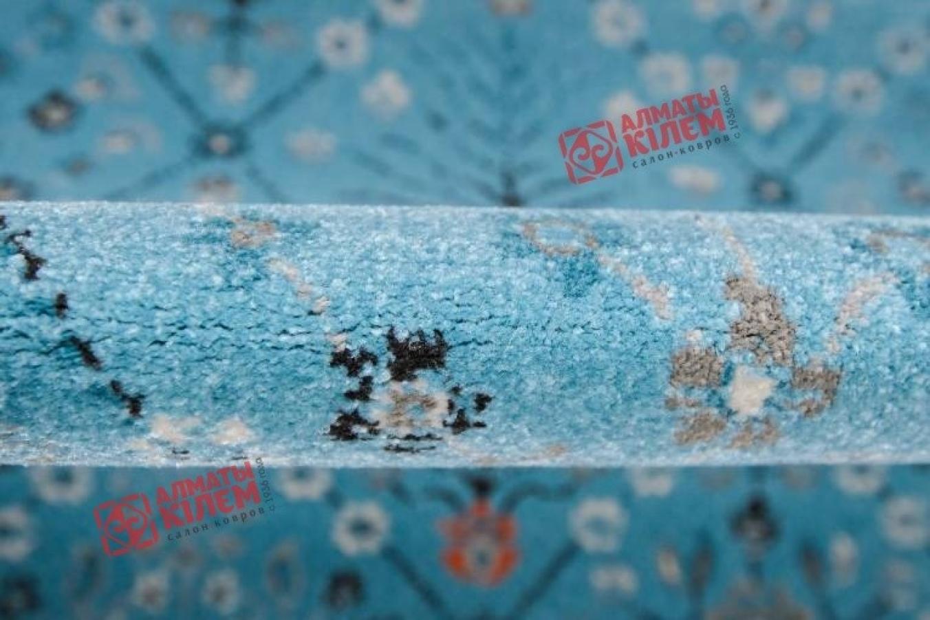 Оригинальный бельгийский ковер из коллекции «Antique» — это европейское качество и роскошный дизайн исполнения. Модель станет идеальным завершающим штрихом домашних и офисных интерьеров. Он выполнен в современном стиле и красивой голубой палитре. Особую изюминку покрытию придает черно-белый флористический мотив. Узор аккуратный, образующий подобие ромбов, каждый из которых декорирован подобием елочки. Такая симметричность и органичность делают покрытие невероятно красивым и изысканным. Средний ворс из полипропилена не накапливает пыль и грязь, что облегчает уход за покрытием. Он оставляет на коже исключительно самые приятные ощущения.
