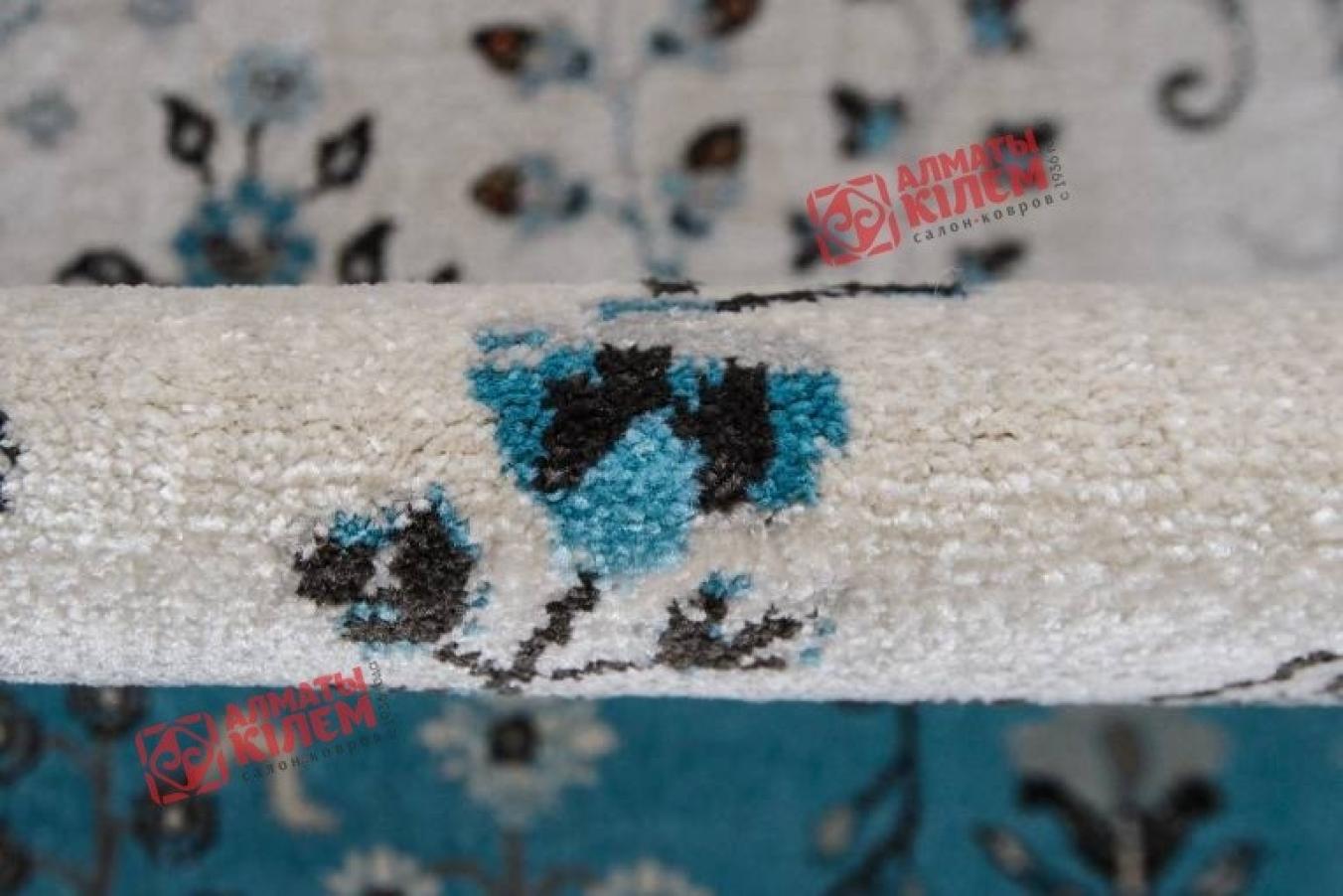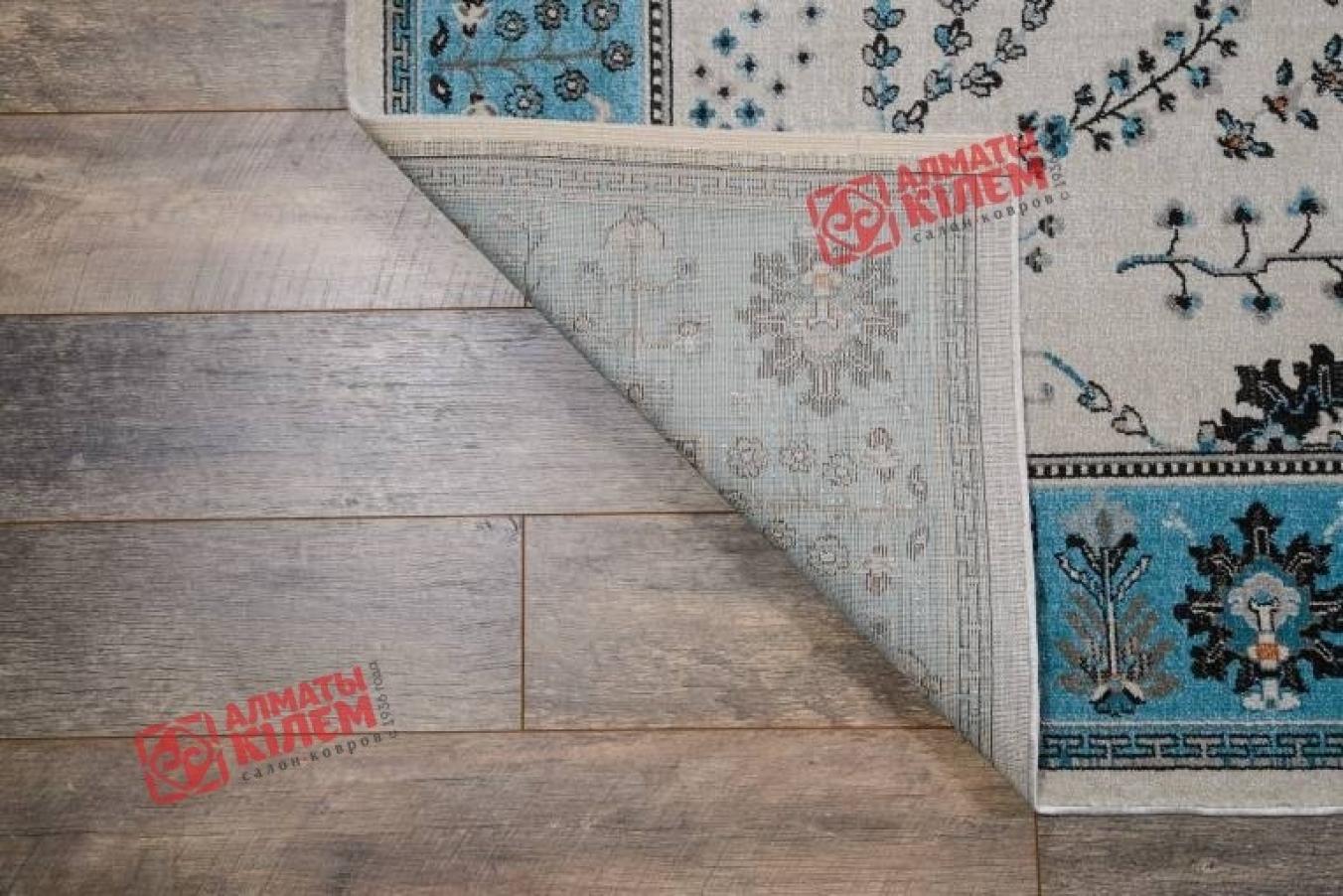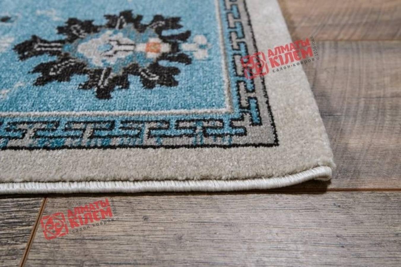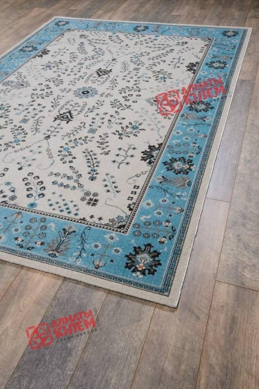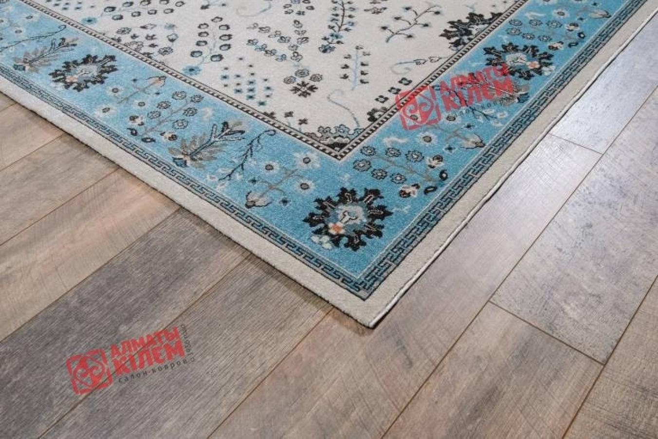 Невероятно красивый и необычный дизайн этого бельгийского ковра не оставит равнодушным абсолютно никого. Модель сочетает в себе черты современного и неоклассического стилей. Это делает напольное покрытие по-настоящему оригинальным. Оно одновременно и традиционно, и более современно. Медальон белоснежного оттенка декорирован флористическим узором из маленьких цветочков, которые перекликаются с мотивом бордюра. Обрамляющая рамка синего цвета прекрасно подчеркивает основной рисунок. Орнамент багета перекликается с основным мотивом, что придает изделию подчеркнутую гармоничность и органичность. Ковер идеально впишется как в домашние, так и в офисные интерьеры.