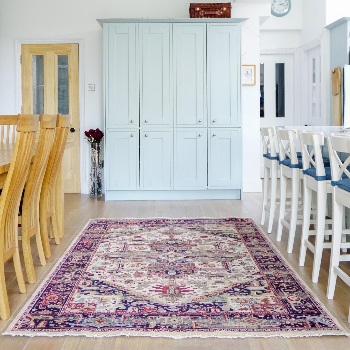 Оцените как ковёр вписывается в интерьер и подходит ли по размерам.