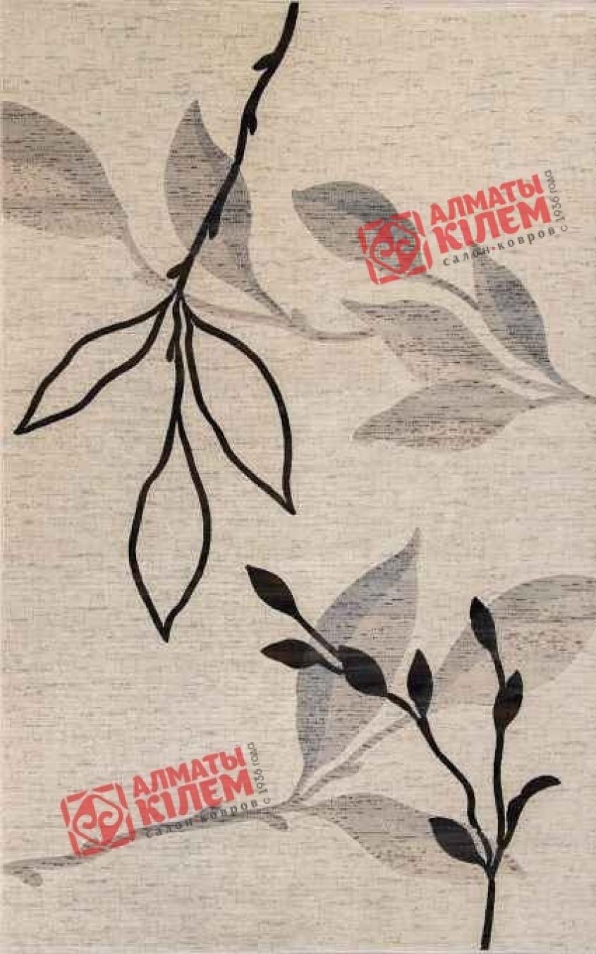 На сером фоне изображен флористический узор из двух крупных кремового оттенка веточек с листьями.