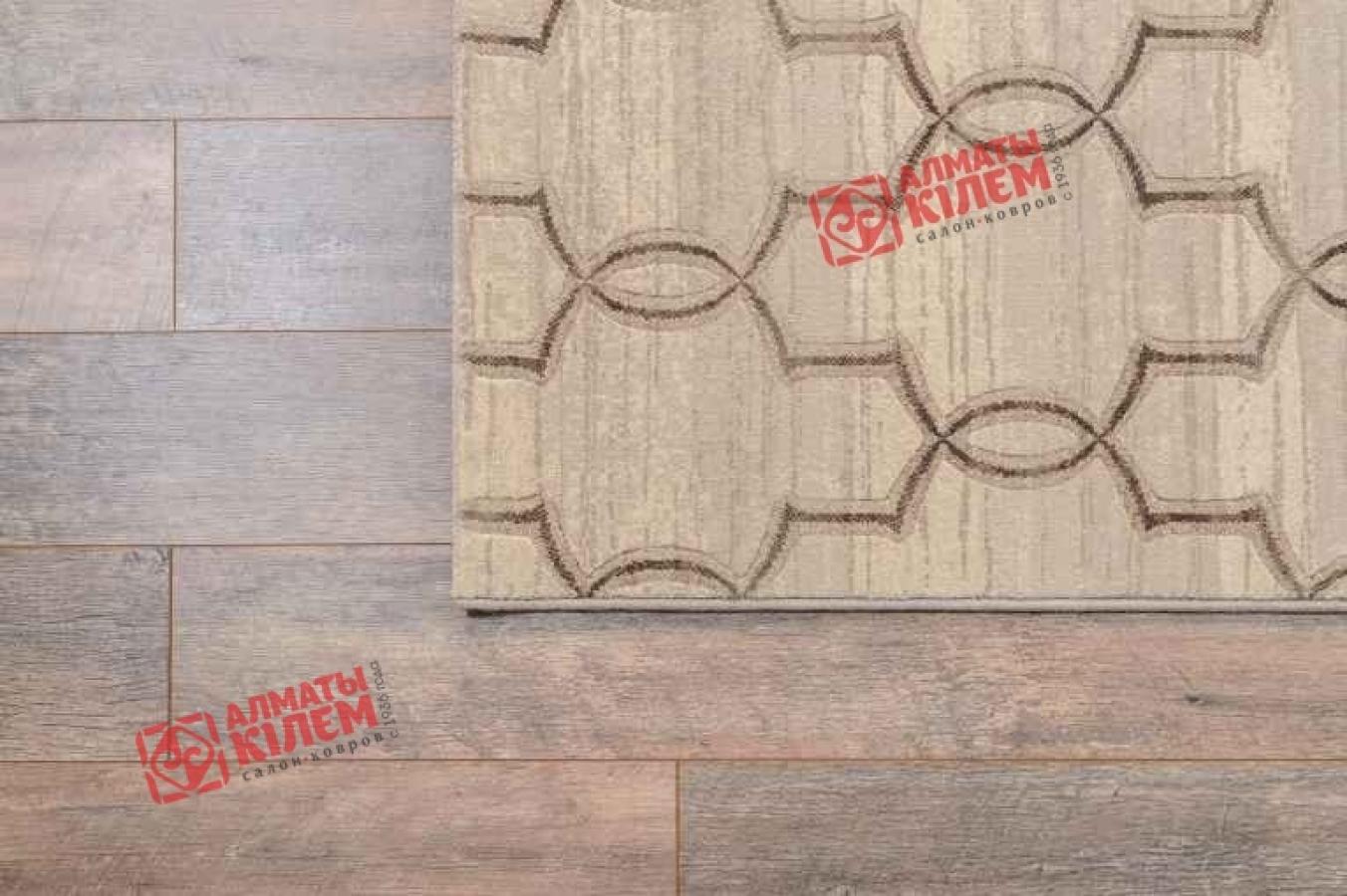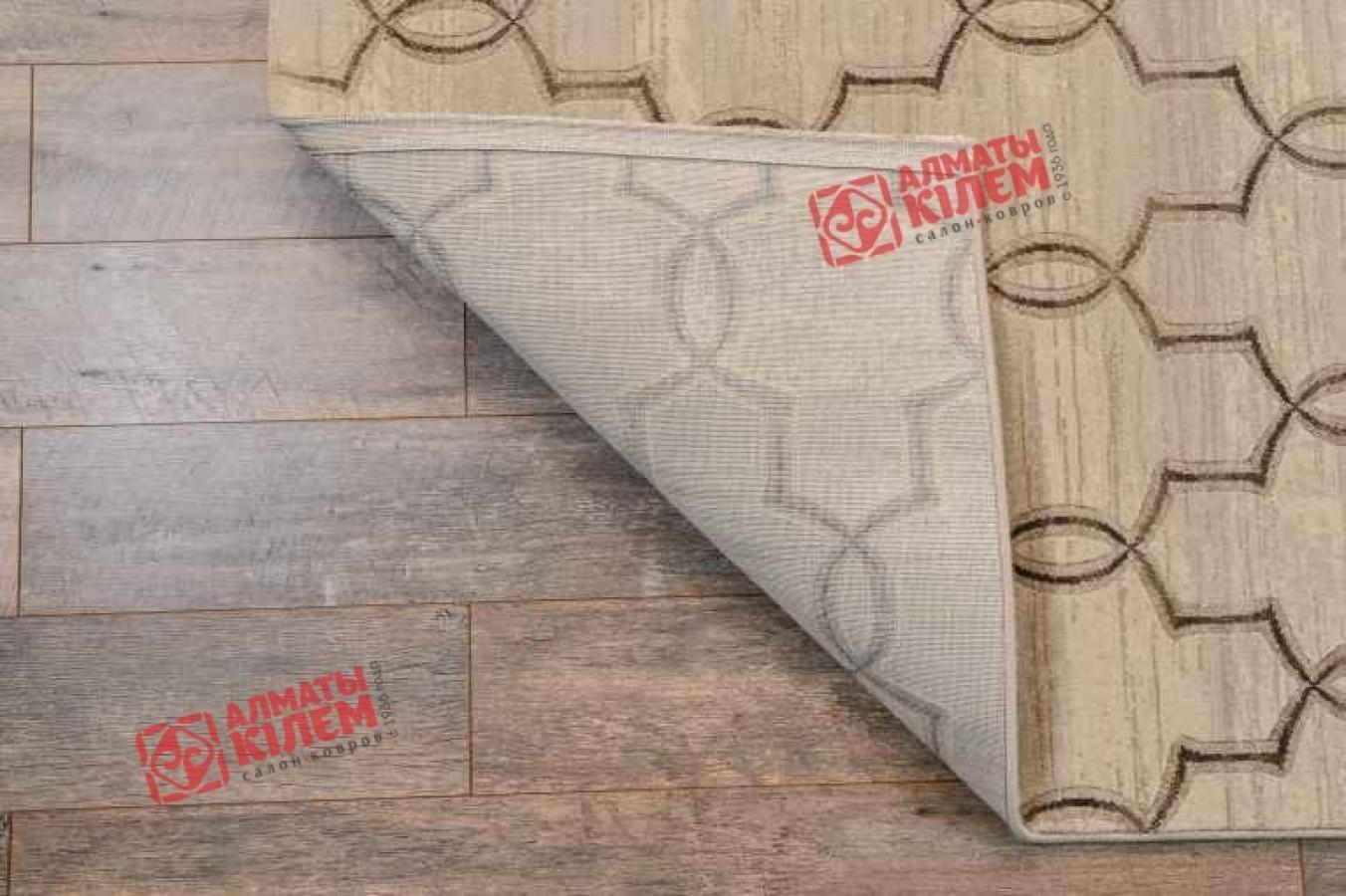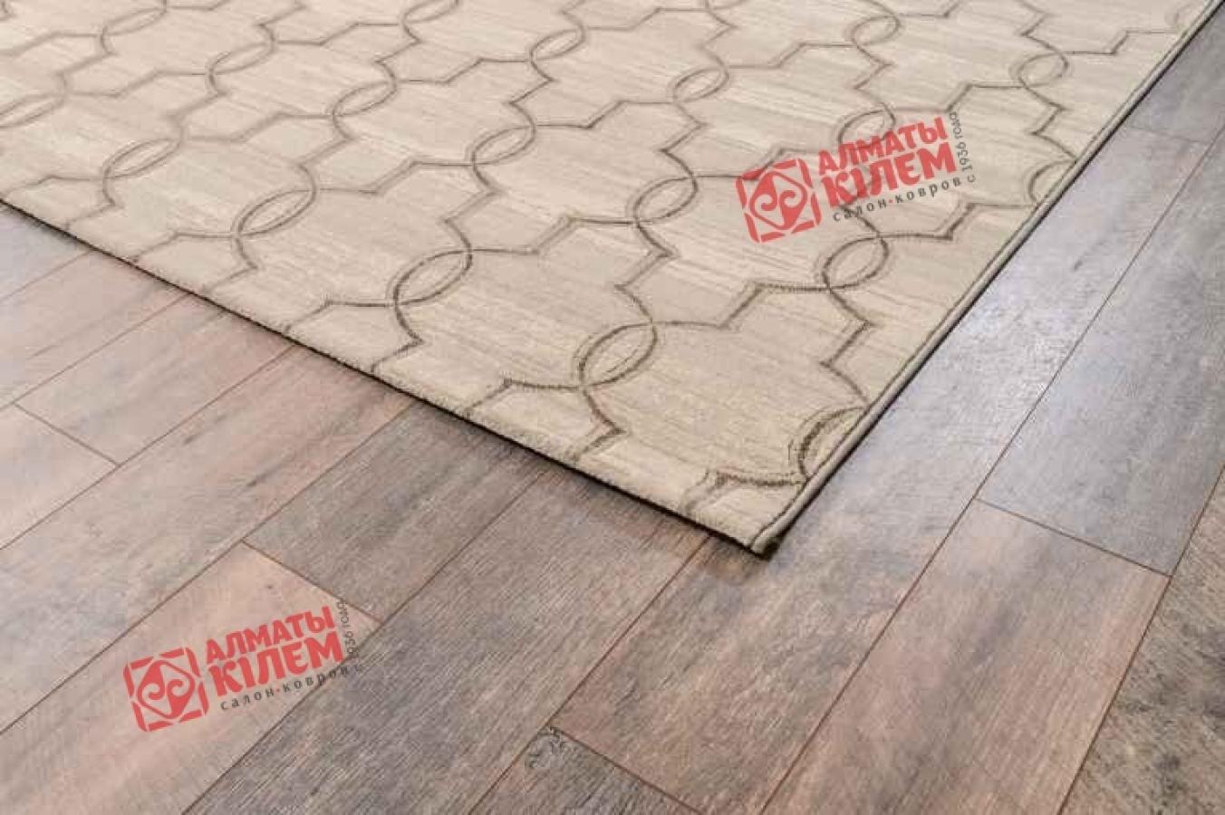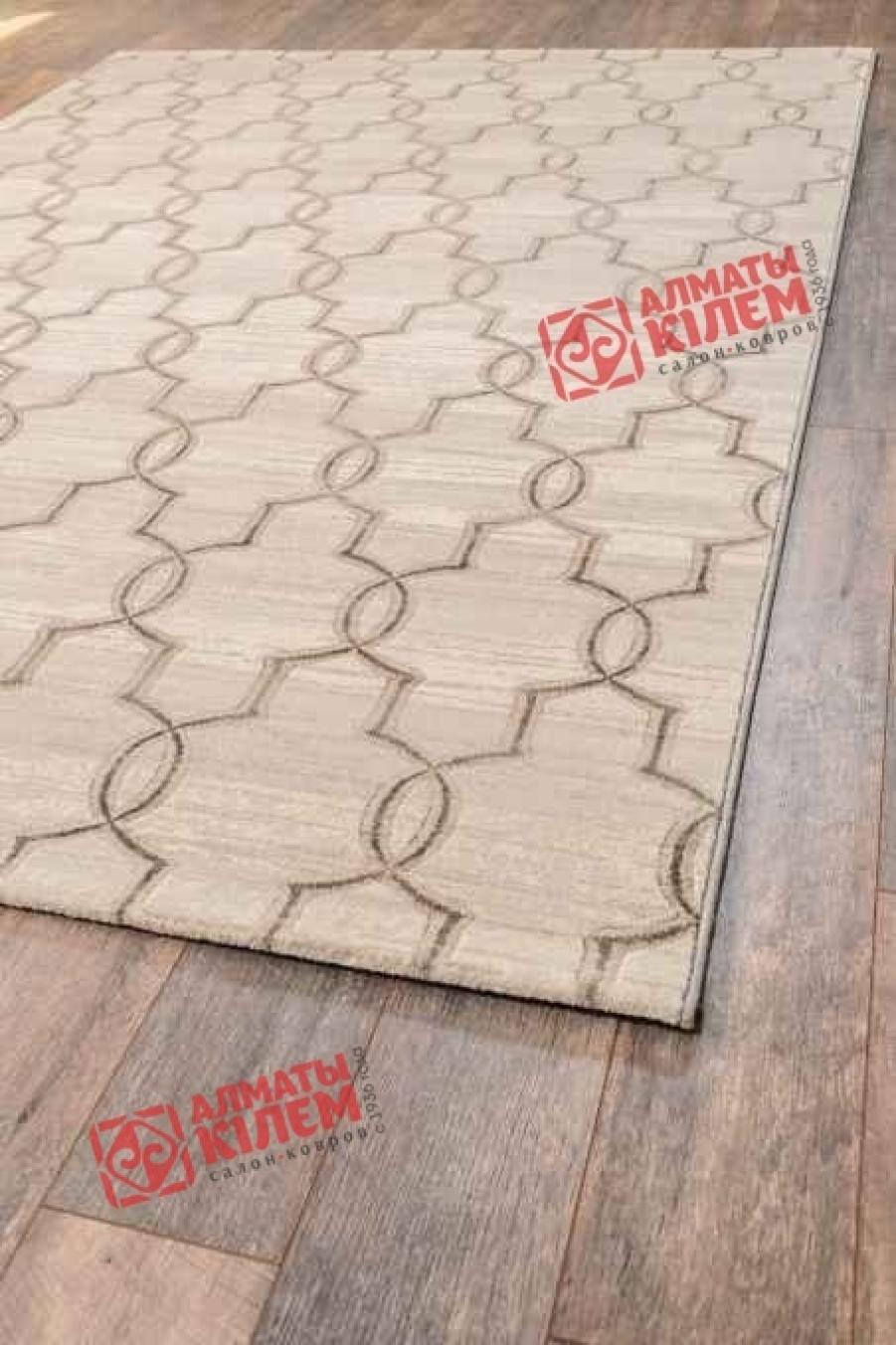 Современный бельгийский ковер с абстрактным геометрическим узором, каждый отдельный элемент которого пересекается с соседним и продолжается до самого конца полотна.