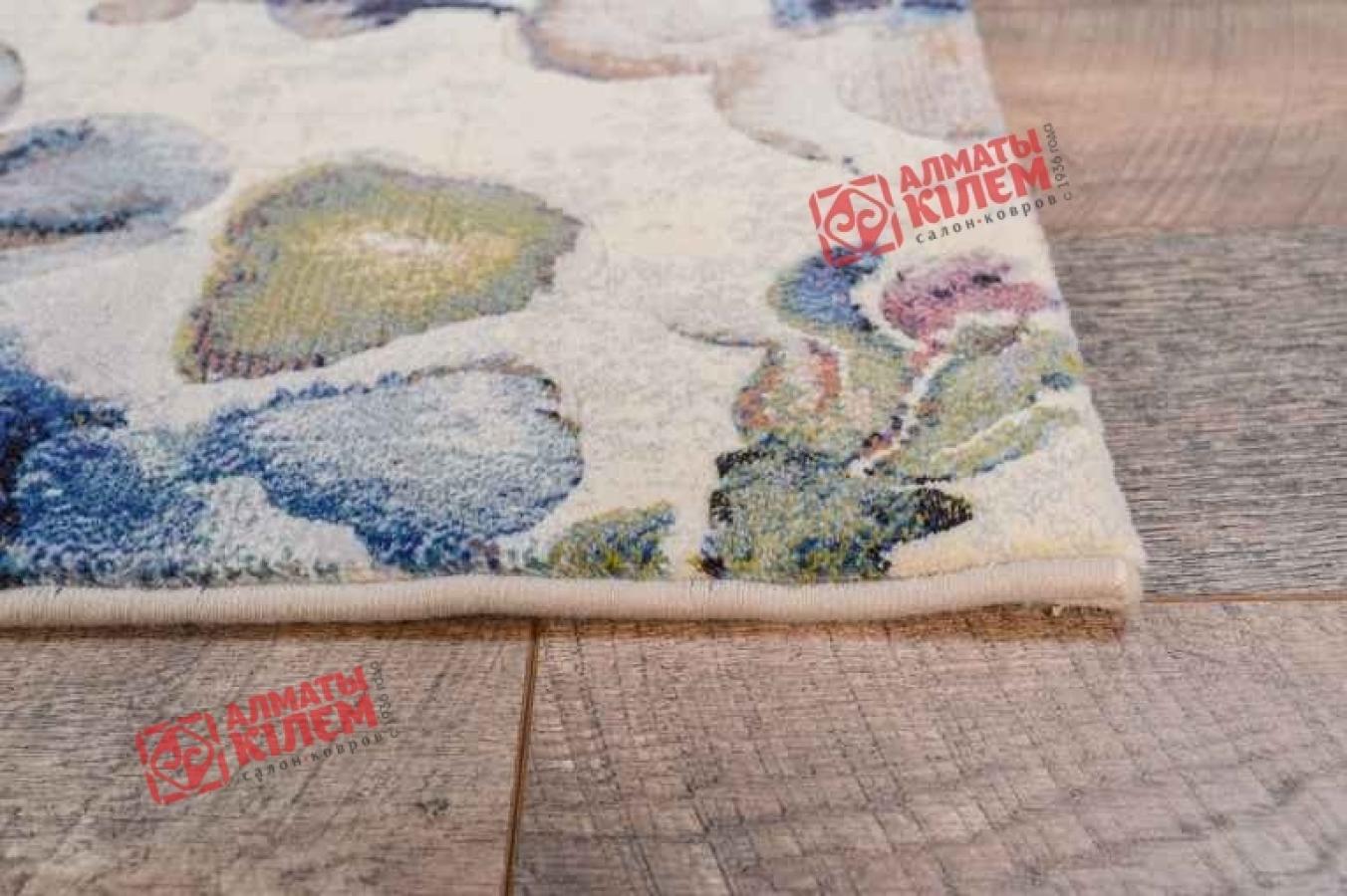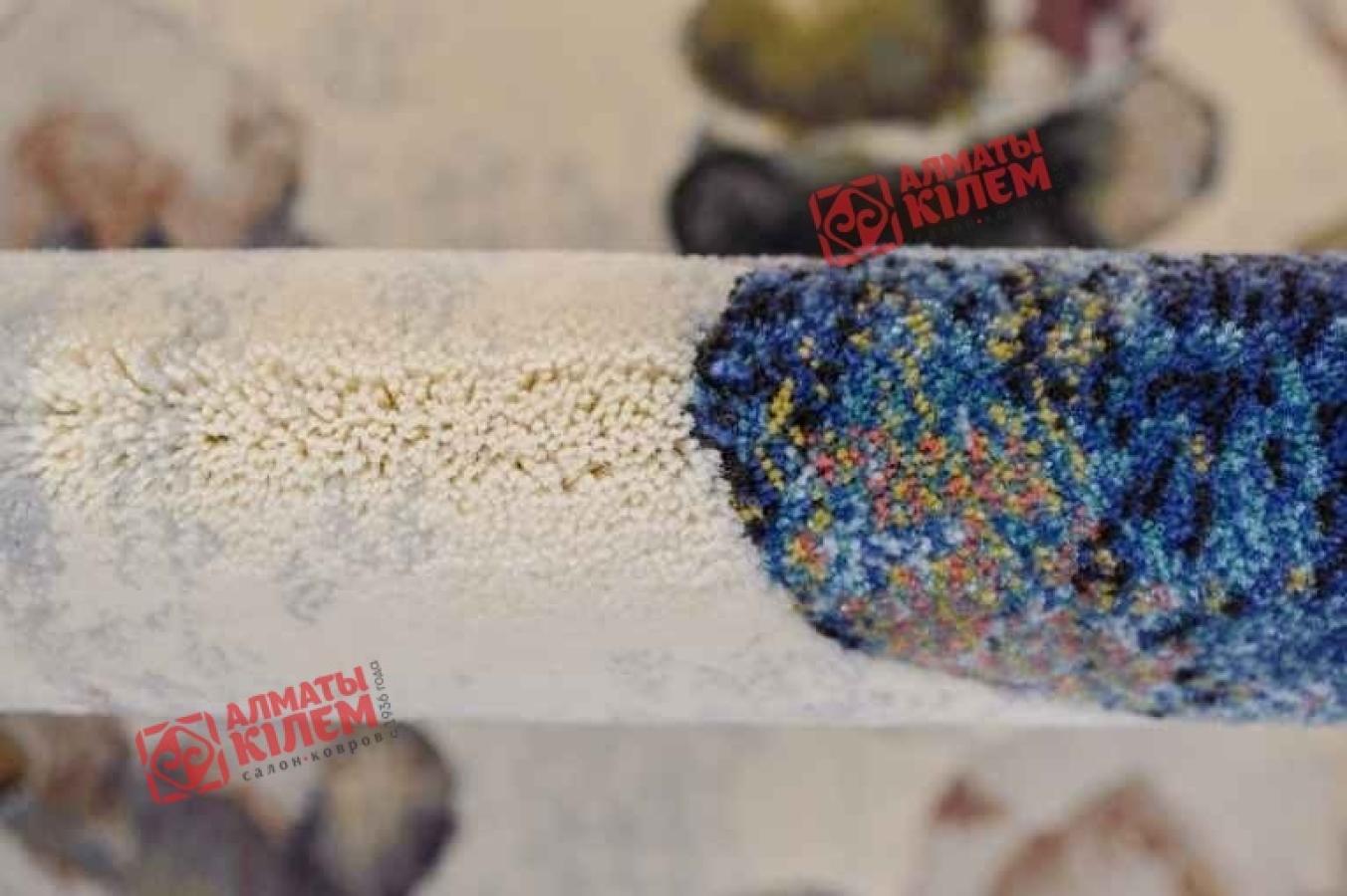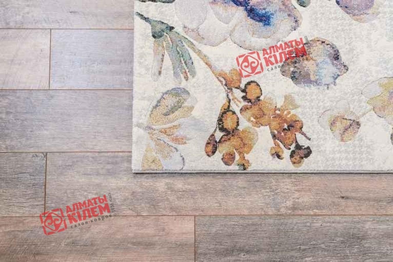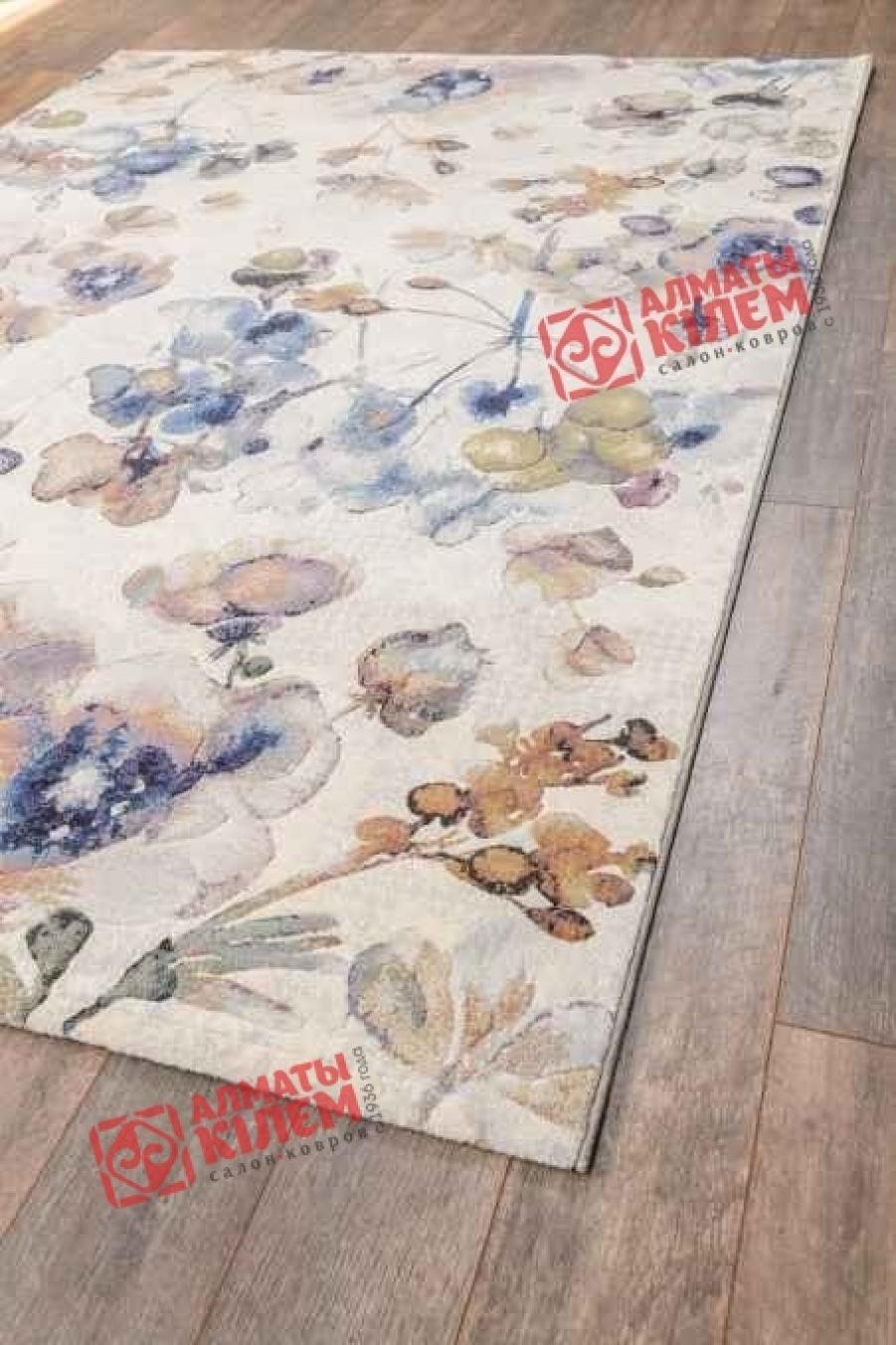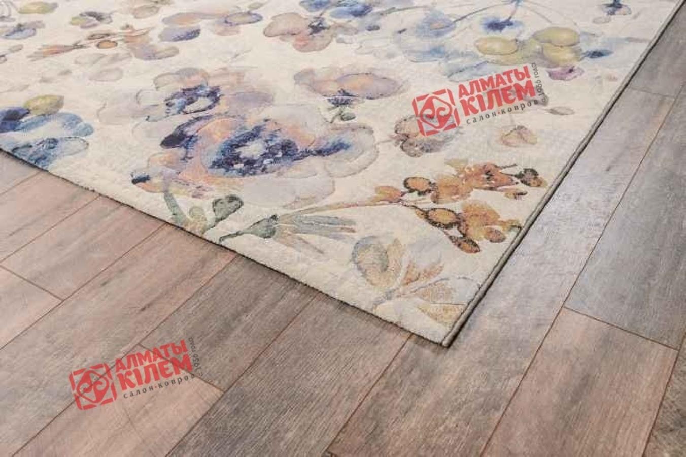 Изысканный бельгийский ковер в нежной кремовой палитре с цветочным узором голубого оттенка.