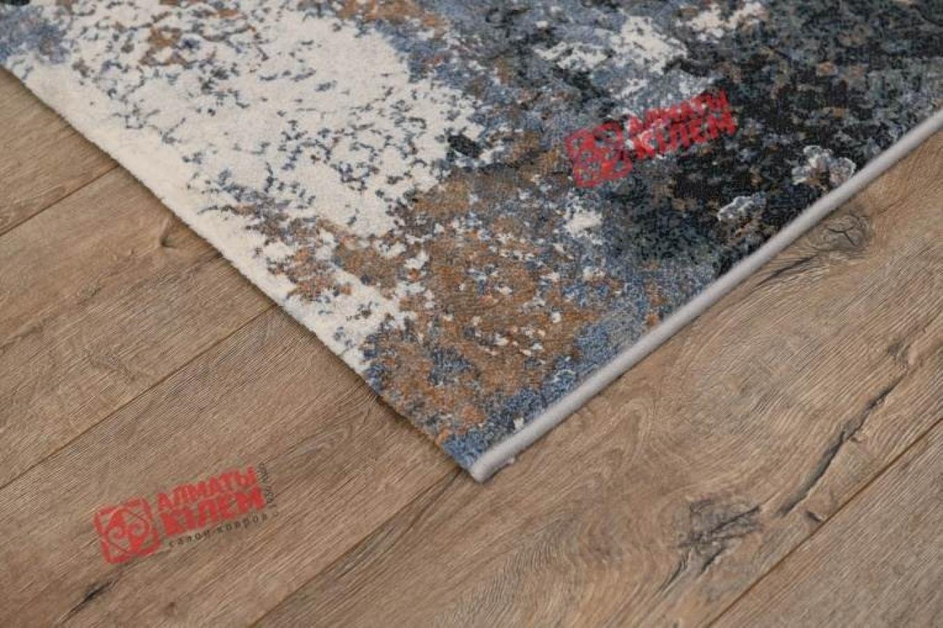 Роскошное напольное покрытие из бельгийской коллекции «Argentum» представляет собой ультрасовременный ковер, который идеально впишется в интерьер гостиной, спальни, столовой, кухни, прихожей, кабинета, офиса. Модель поражает оригинальностью своего дизайна и цветового решения. Светлый фон покрыт серо-синими брызгами с вкраплениями коричневого. Выполнен ковер из полипропилена, но при этом напоминает собой изысканную шкуру, которая придаст роскоши и богатства абсолютно любой обстановке. Оно отличается высокой плотностью, но остается невероятно мягким и нежным на ощупь, способствуя расслаблению стоп. На каждый квадратный метр приходится миллион узелков.