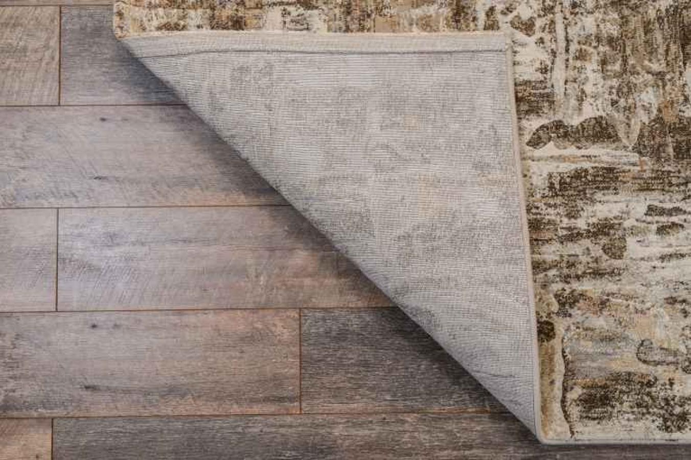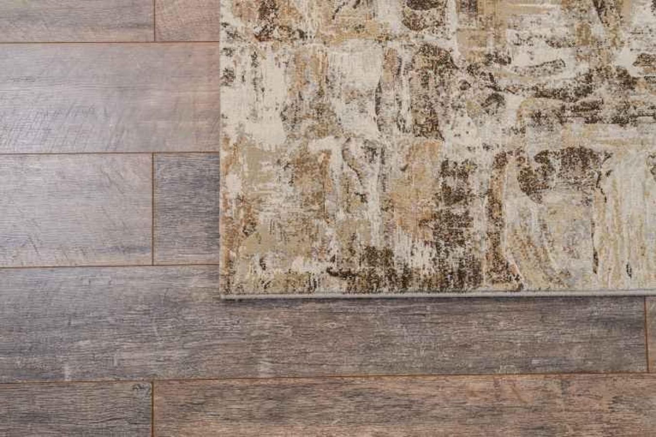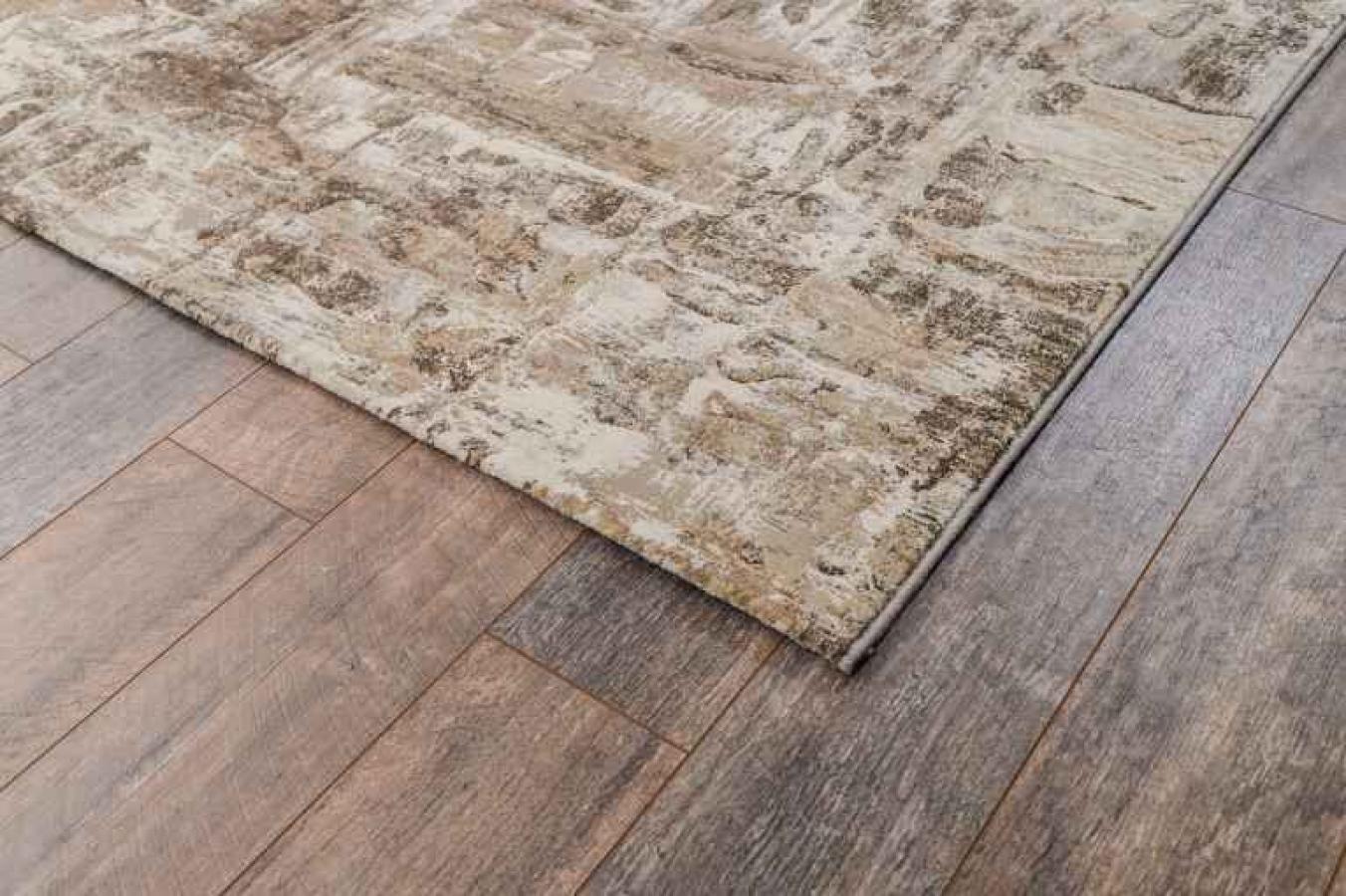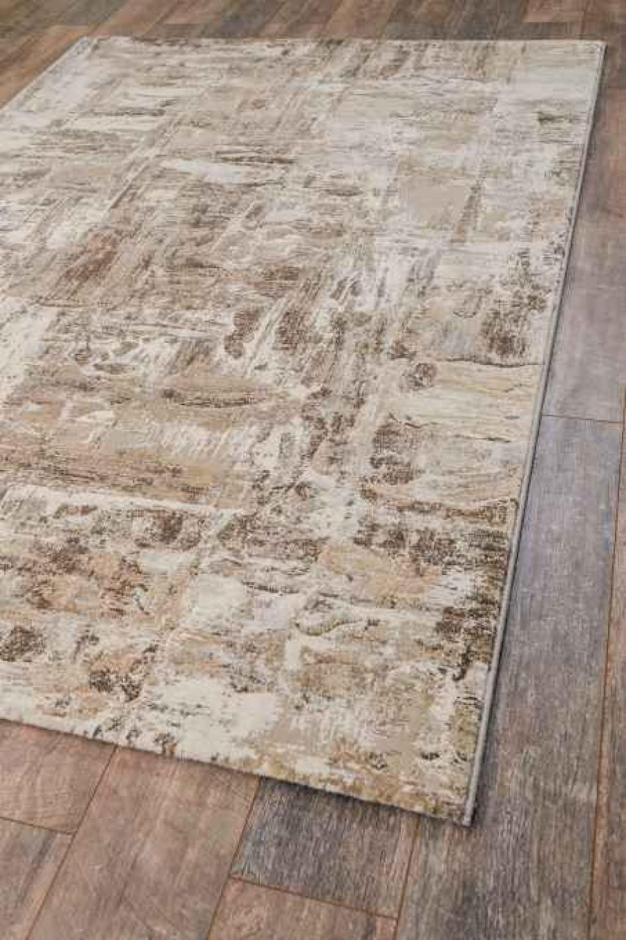 На бежевом фоне полотна нанесены слегка потертые коричневые штрихи. Они придают покрытию особую изюминку и красоту.