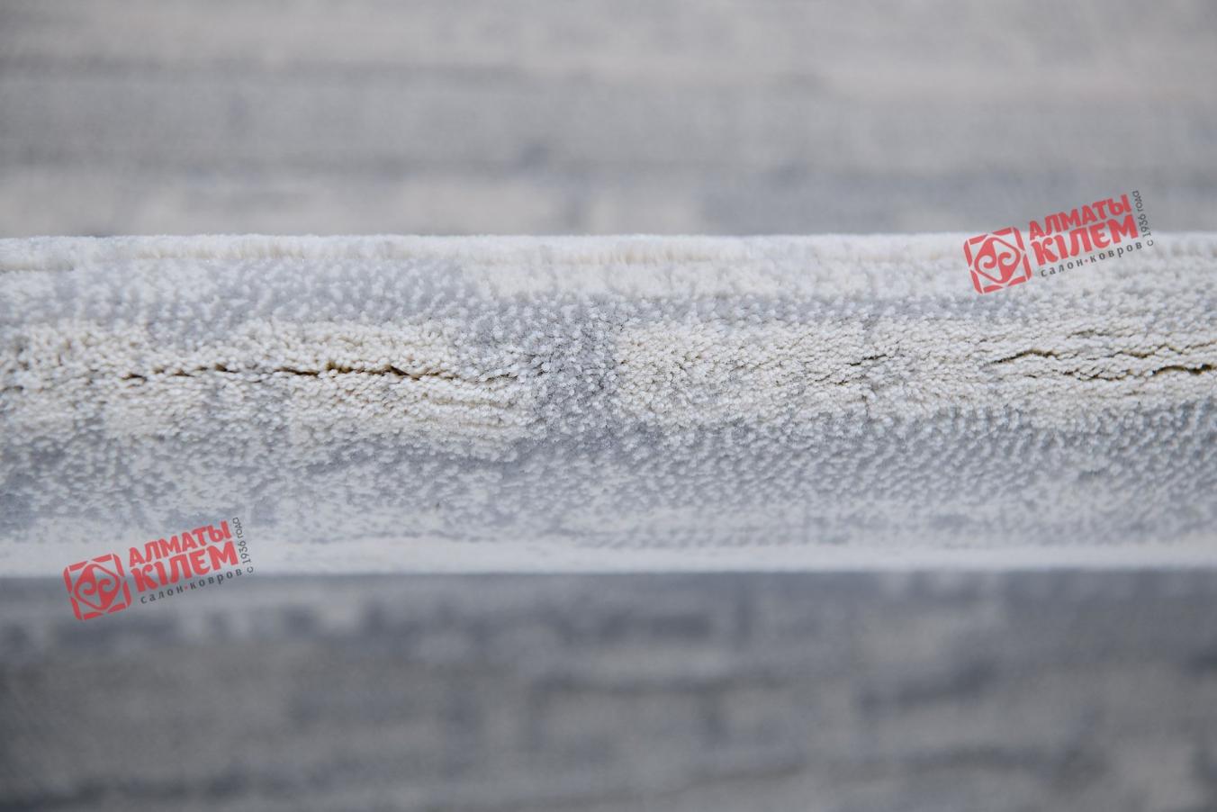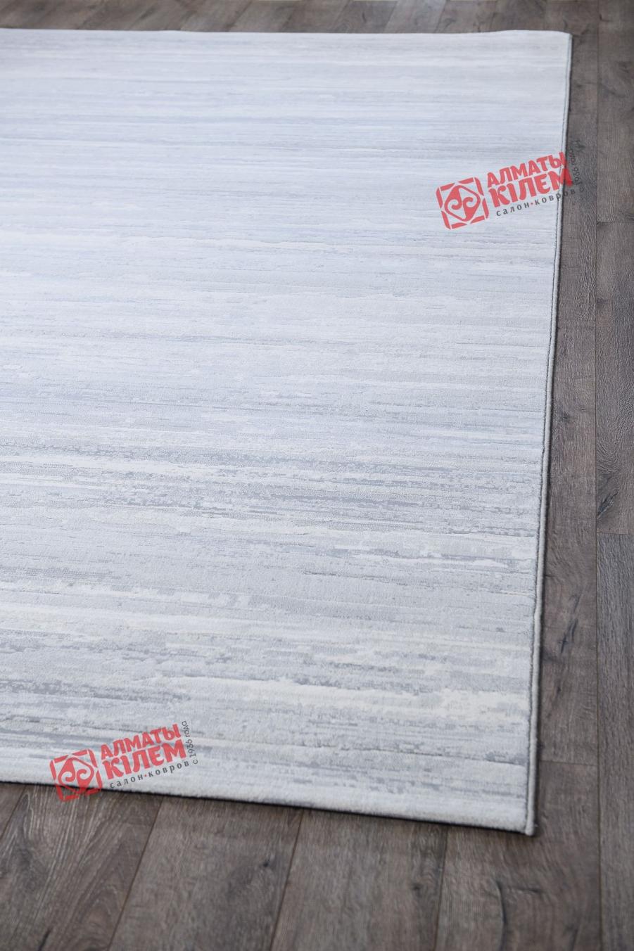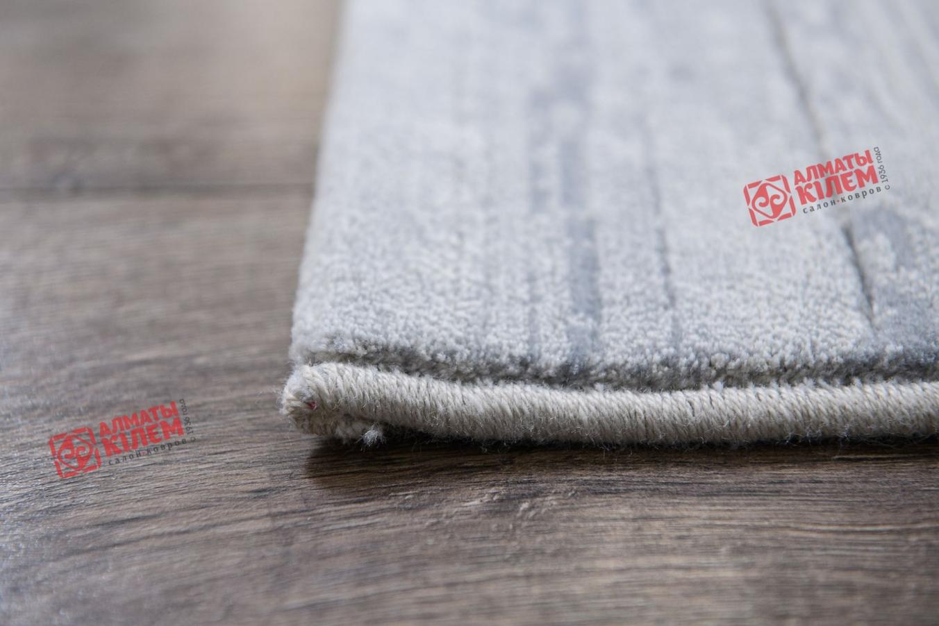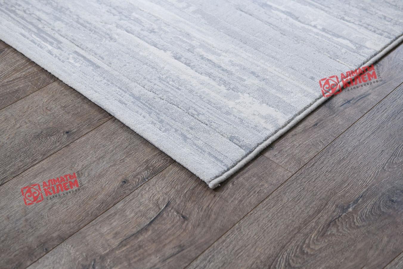 Бельгийский ковер в благородной серебристой палитре с исключительно редким показателем высокой плотности в миллион узелков на квадратный метр. Модель из коллекции «Argentum» машинного производства с белой основой и серым дополнительным цветом в современном дизайне имеет довольно высокий ворс (чуть больше одного сантиметра). Основа выполнена из полиэстера с джутом, а ворс — из полипропилена Exellan. Полотно отлично смотрится в современных домашних интерьерах, а также офисах.