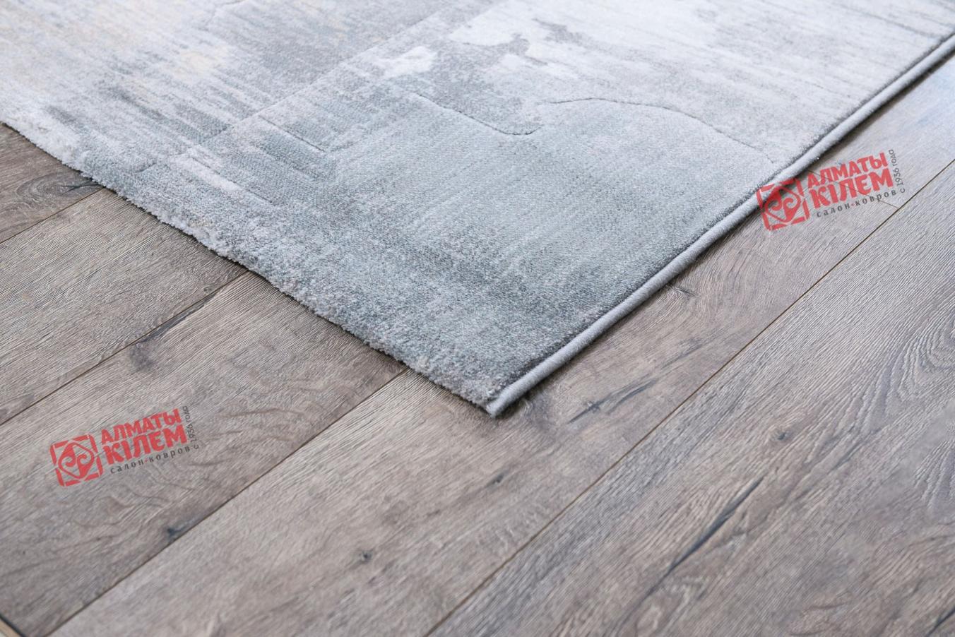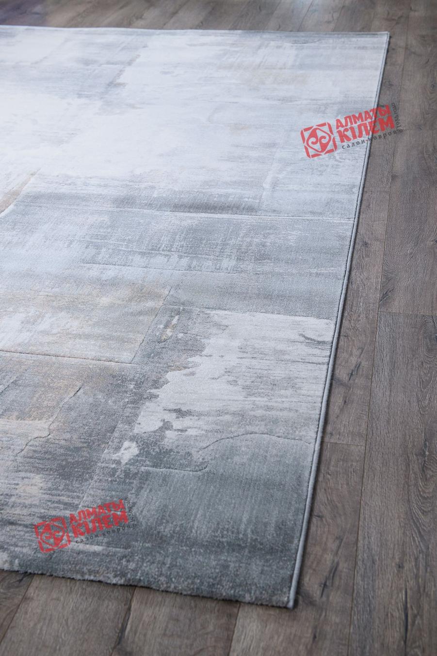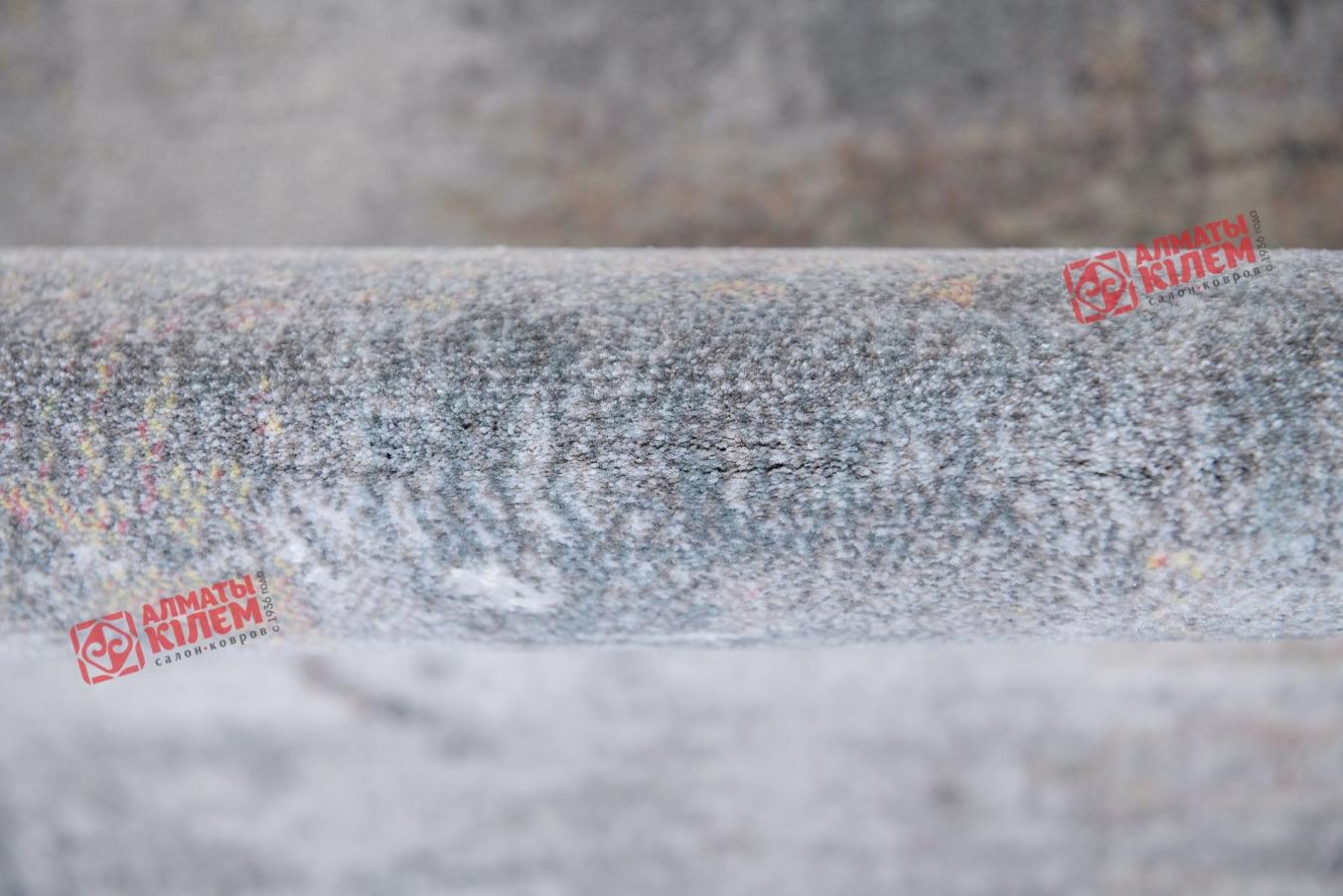 Ковер в современном стиле от бельгийского бренда Ragolle Rugs N. V. из коллекции «Argentum» с основой из полиэстера с джутом и средней высотой ворса. Фоновый цвет серый, а модернистский узор с геометрическими едва различимыми фигурами цветной. Ворсистая поверхность выполнена из особого полипропилена Exellan. Количество узлов на один квадратный метр составляет миллион. Модель прекрасно подходит для интерьеров прихожих, холлов, столовых, кухонь, гостиных, офисов.