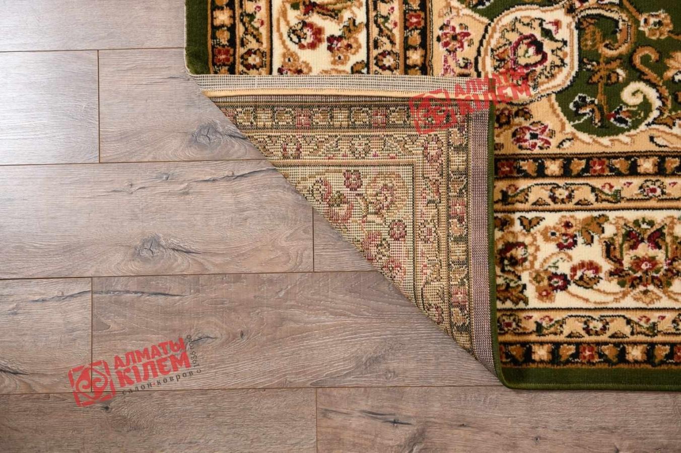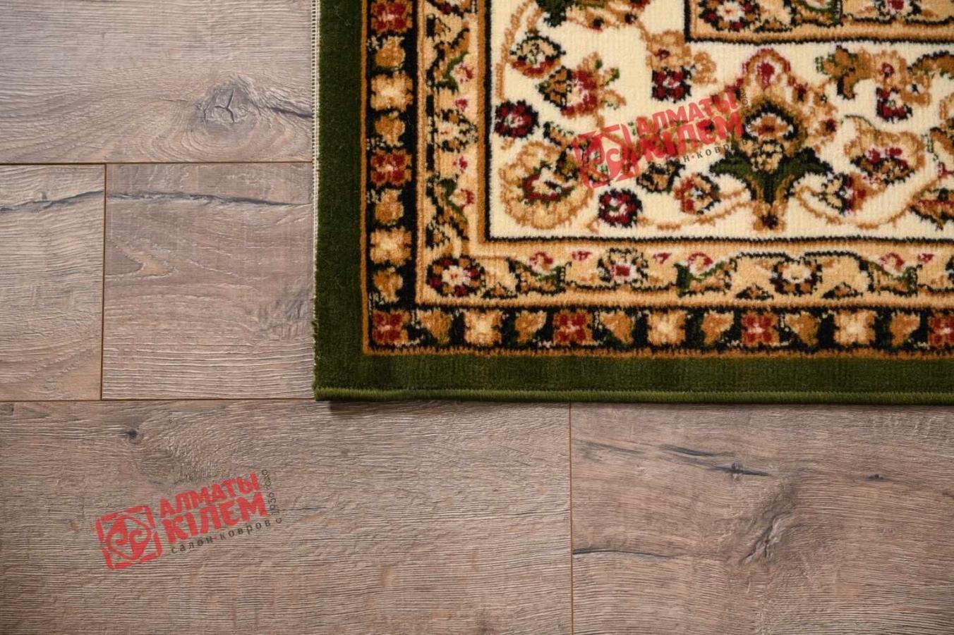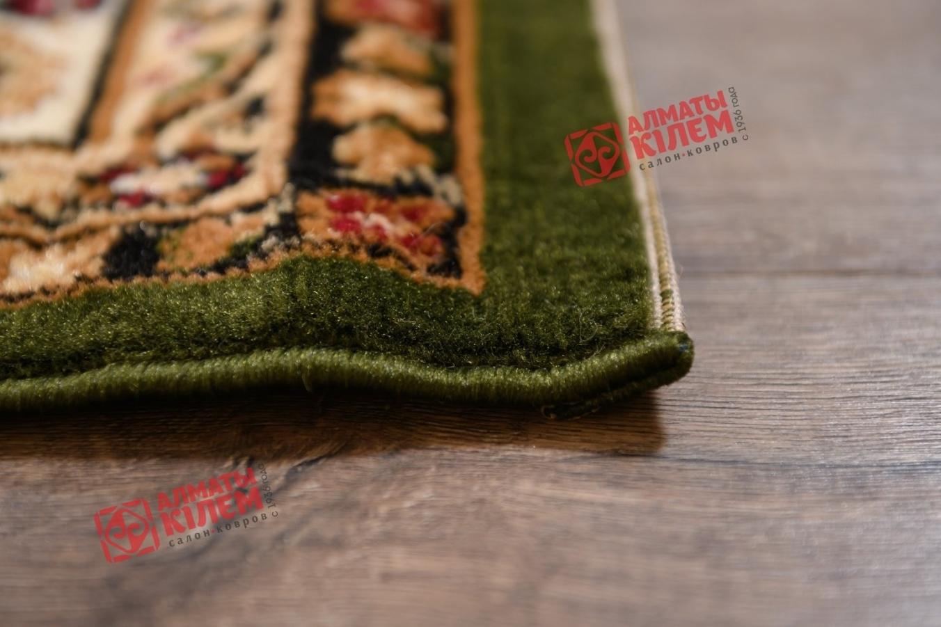 Роскошный ковер отечественного производства в классическом стиле станет не просто завершающим штрихом при создании уютного и комфортного интерьера гостиных, спален, кухонь, столовых, прихожих, офисов и кабинетов, но и украшением, завершающим общую концепцию всей обстановки. Высокий ворс подчеркивает богатство фактуры и придает покрытию невероятную красоту. Ходить по нему как в обуви, так и босиком — это настоящее удовольствие. Он способствует расслаблению, а также создает комфортную температуру даже тогда, когда полы в комнате холодные. Традиционный для классического дизайна медальон и обрамление в виде бордюра разбавлено зеленым основным оттенком.