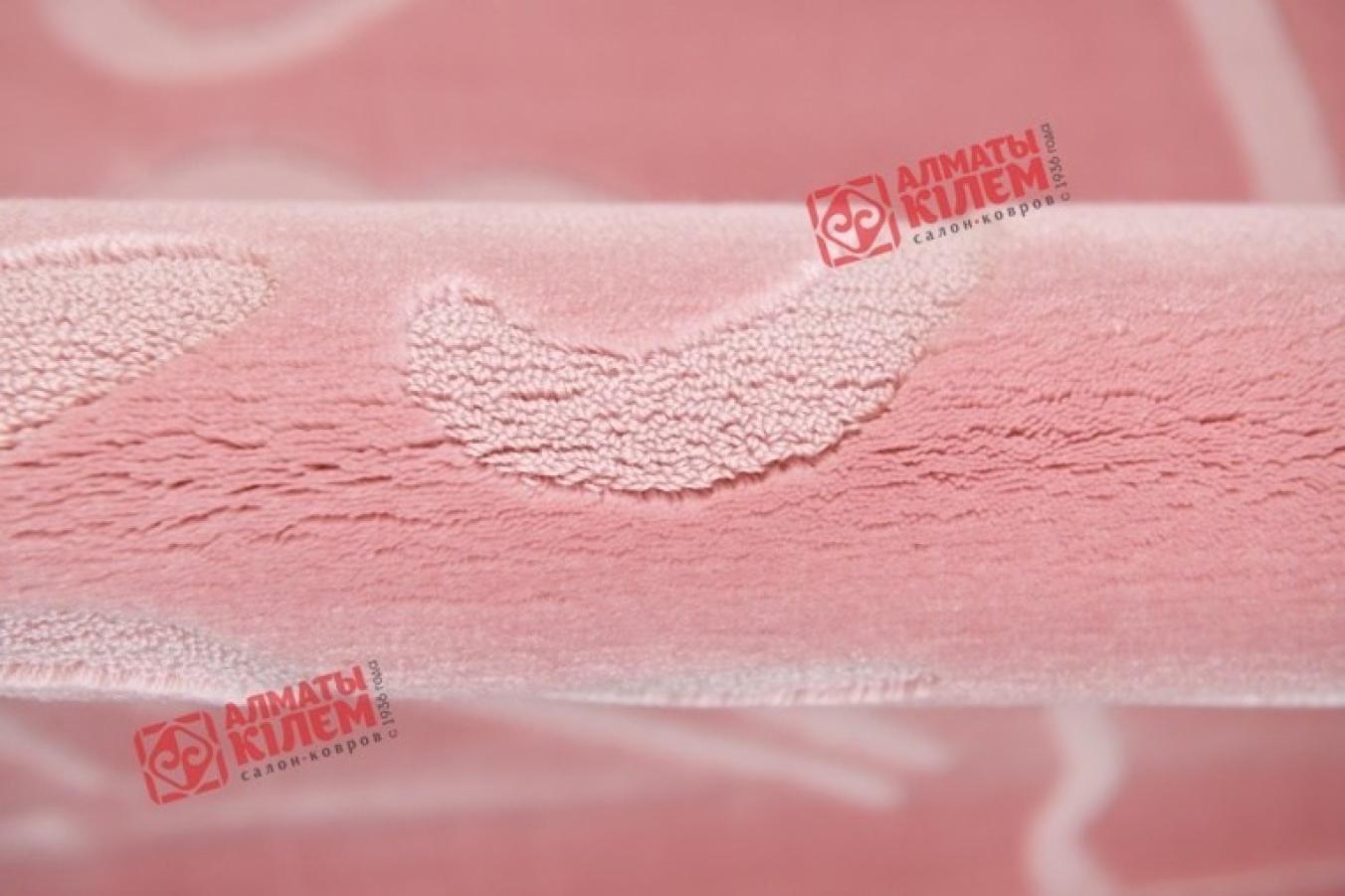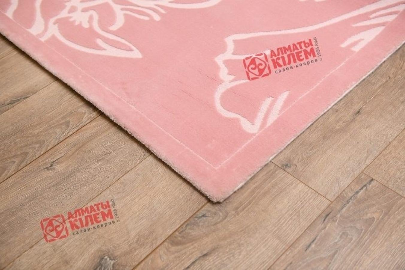 Невероятно изысканный и оригинальный ковер из коллекции «Asur» от российского бренда «Венера» не оставит равнодушным абсолютно никого. Напольное покрытие поражает своей оригинальностью. Оно имеет необычный дизайн и расцветку. На розовом нежном фоне нанесен изысканный флористический узор белого оттенка. Он отличается от основного полотна не только по цвету, но и по высоте ворса. Такой переход смотрится эффектно и красиво. Ковер придает абсолютно любому современному интерьеру неповторимую атмосферу свежести, уюта и комфорта. Высокий ворс оставляет самые приятные тактильные ощущения, снимает усталость после трудового дня или заряжает зарядом бодрости, если покрытие уложено в спальне.