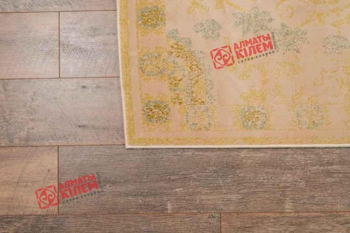 Роскошный ковер не обязательно должен быть дорогим и эта модель яркое этому подтверждение. Полотно, выполненное из вискозы, не уступает по внешним и эксплуатационным характеристикам натуральному ворсу. Оно невероятно приятно на ощупь и оставляет после себя исключительно приятные тактильные ощущения. Главным достоинством материала является гипоаллергенность. Он идеально подходит тем, кто имеет аллергию на натуральную шерсть. Узор на ковре образован приглушенными зеленым и золотистыми оттенками, образующими подобие павлиньих хвостов по краям и округлых узоров по цветному полотну. Он смотрится ажурно и нежно словно тонкое кружево из шелковых нитей. Это полотно — прекрасный представитель ковров в современном стиле.