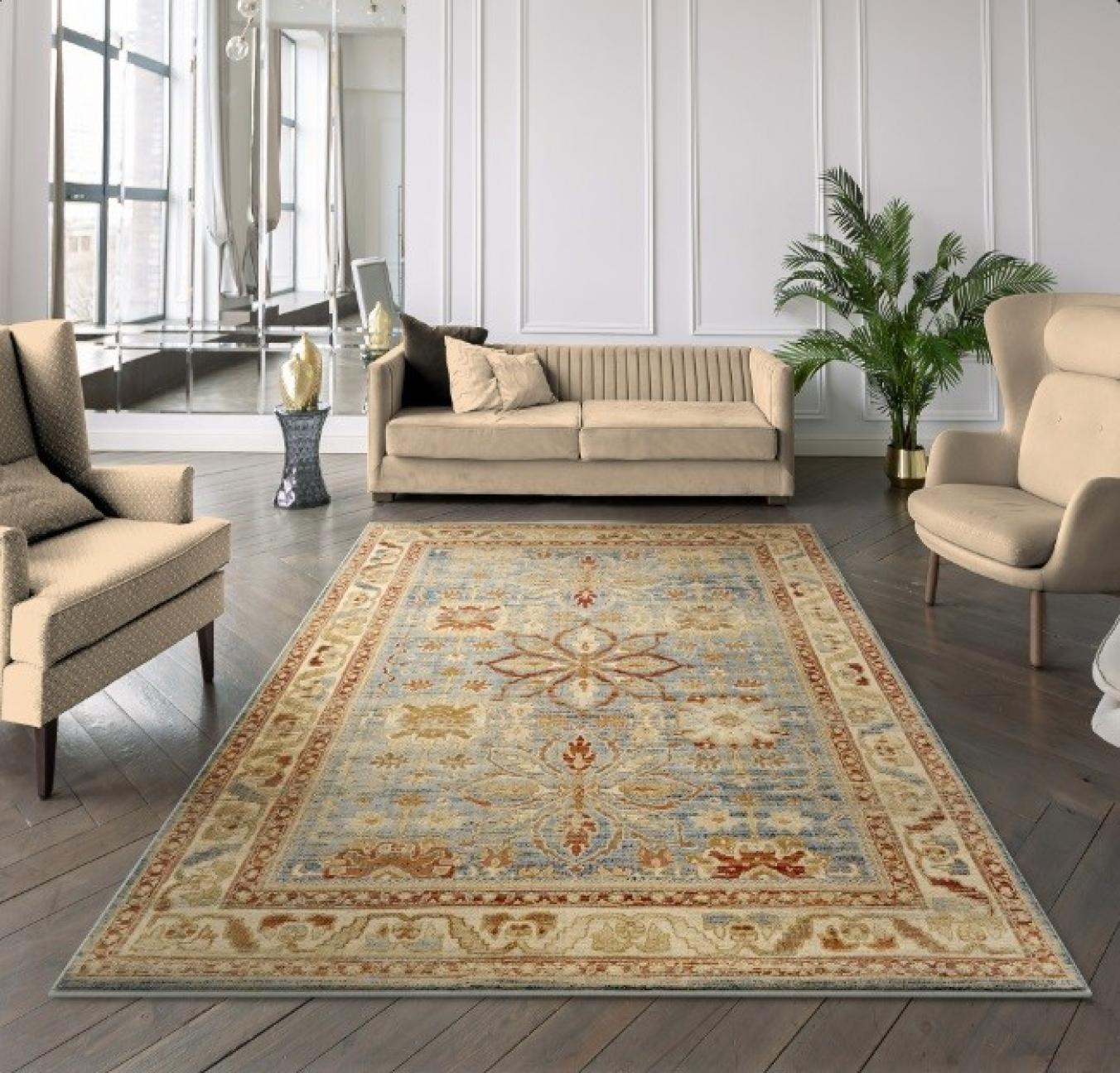 Оцените как ковёр вписывается в интерьер и подходит ли по размерам.