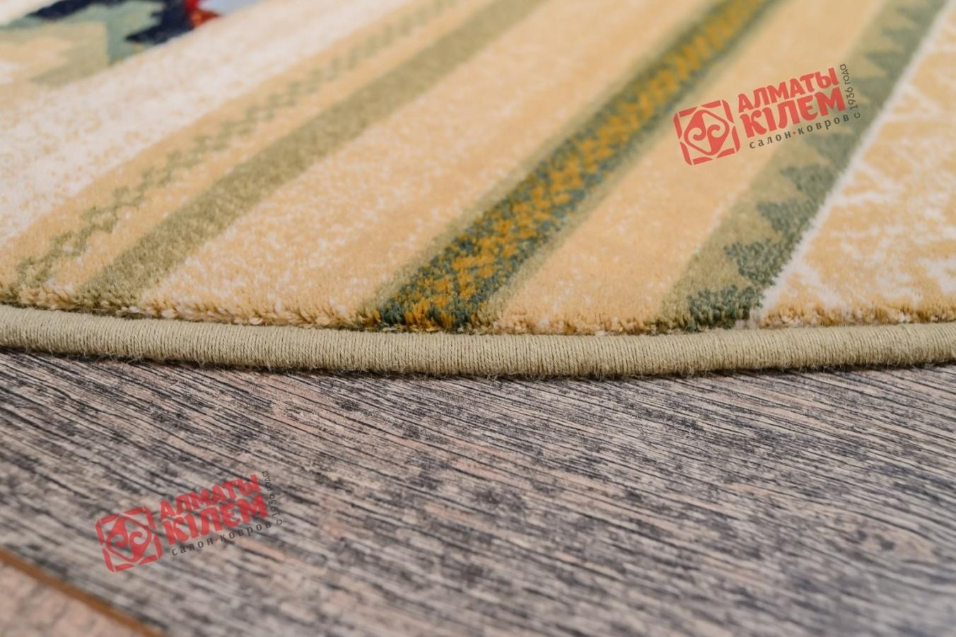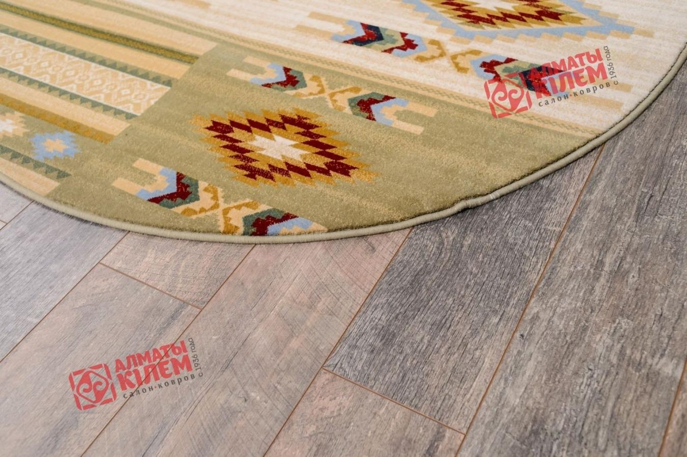 Невероятно оригинальный ковер от молдавского бренда Moldabela из коллекции «Bella» — это поистине красивое покрытие, которое способно преобразить абсолютно любой интерьер. Модель выполнена из стопроцентно натуральной шерсти без каких-либо примесей. Изделие относится к классическим, но является универсальным, поскольку лишено традиционных черт данного стиля. Основной бежевый оттенок дополнен зеленым, желтым, красным, синим и другими цветами. Они создают неповторимый геометрический узор с центральным рисунком на светлой сердцевине и зеркально отражающими друг друга боковыми орнаментами на оливковом фоне. В сочетании с круглой формой смотрится такой дизайн очень эффектно.