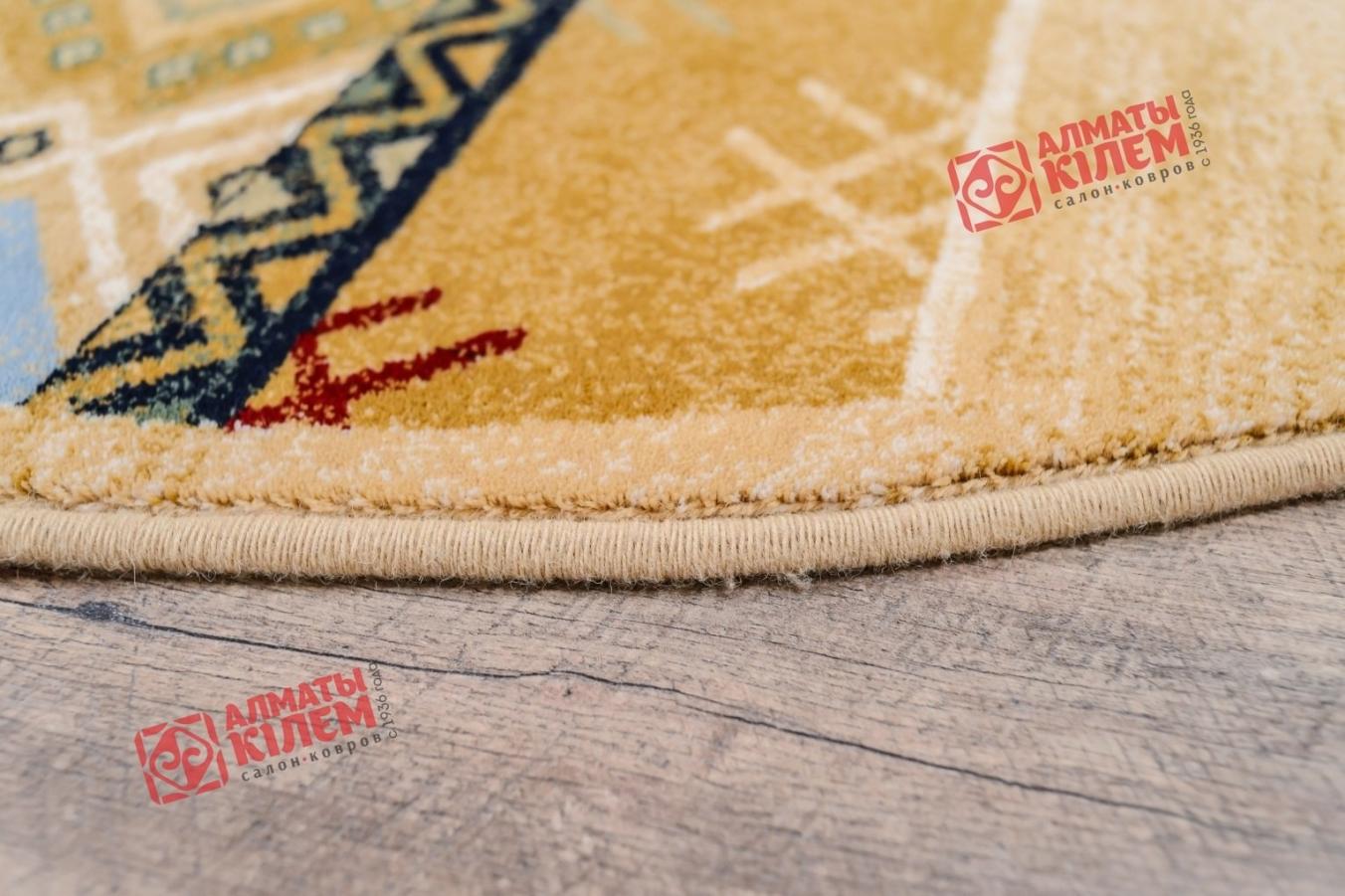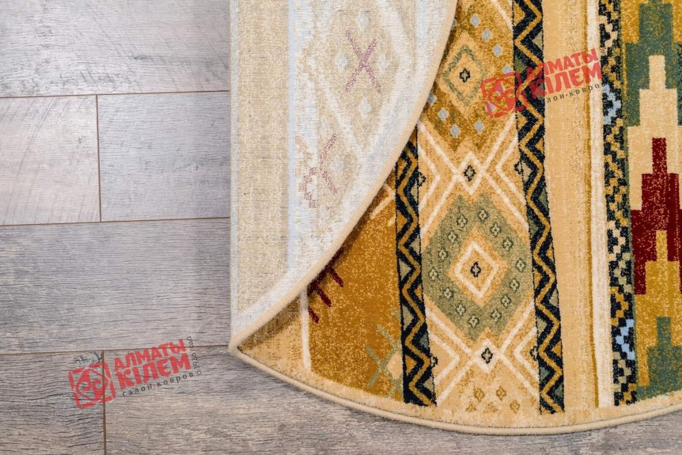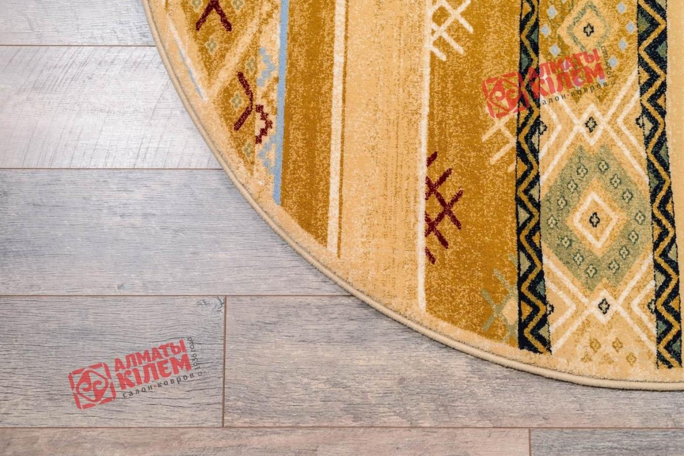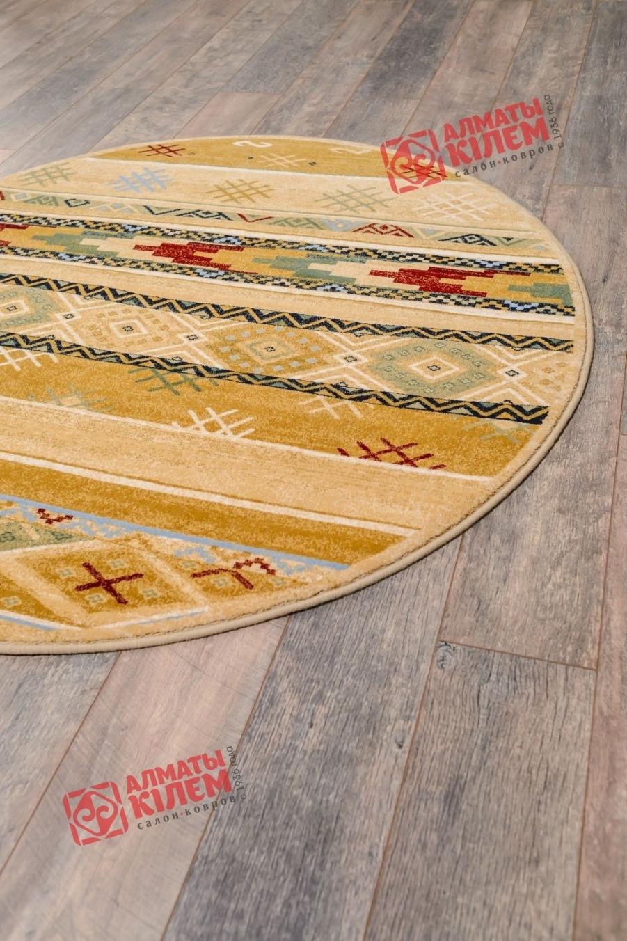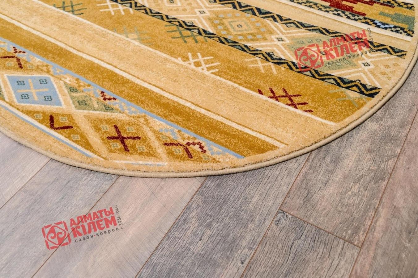 Невероятно красивый круглый шерстяной ковер молдавского производства из коллекции «Bella» — это покрытие, которое украсит собой интерьеры гостиных комнат, спален, столовых, кухонь, прихожих. Не менее красиво изделие будет смотреться в личном кабинете руководителя или офисе. Выполненный из натуральной шерсти без примесей, он создает поистине комфортную и уютную обстановку. Напольное покрытие не только красиво. Оно прекрасно поддерживает полы теплыми и способствует снятию усталости. Бежевый ковер декорирован геометрическим узором с легкими нотками этнических мотивов. Он отличается разнообразием. Каждая полоска, украшающая полотно, представлена своим орнаментом.