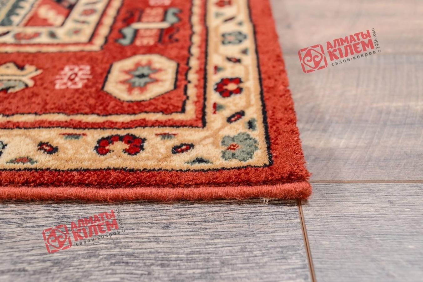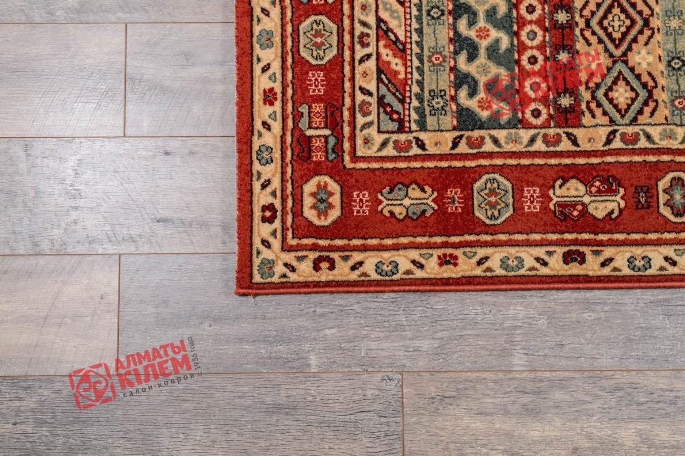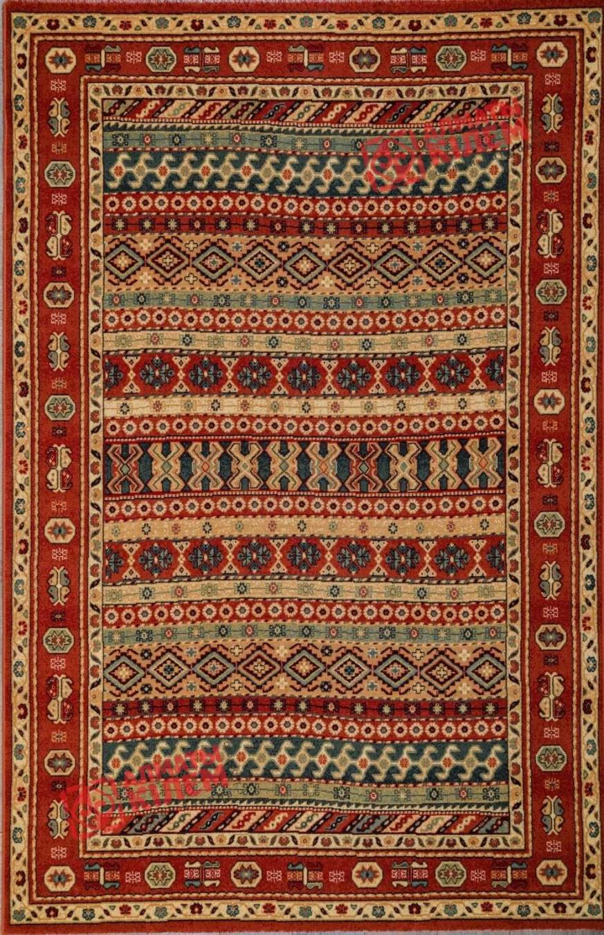 Оригинальный дизайн этого шерстяного ковра покоряет с первого взгляда. Он смотрится комфортно и уютно, приносит в атмосферу яркости и свежести, подчеркивает красоту мебели, декора и отделки. Модель выполнена в классическом стиле, но яркая расцветка и замысловатый орнамент придают покрытию особую изюминку. Она прекрасно сочетается абсолютно с любой палитрой. В сдержанной и монохромной гамме ковер станет ярким акцентным элементом, а в цветном и ярком дополнит собой общую концепцию интерьера. Прямоугольный медальон с геометрическим орнаментом, когда каждая полоска представлена своей фигурой, повторяющейся лишь дважды, обрамлен красным бордюром с узором.