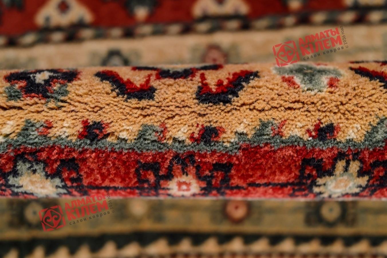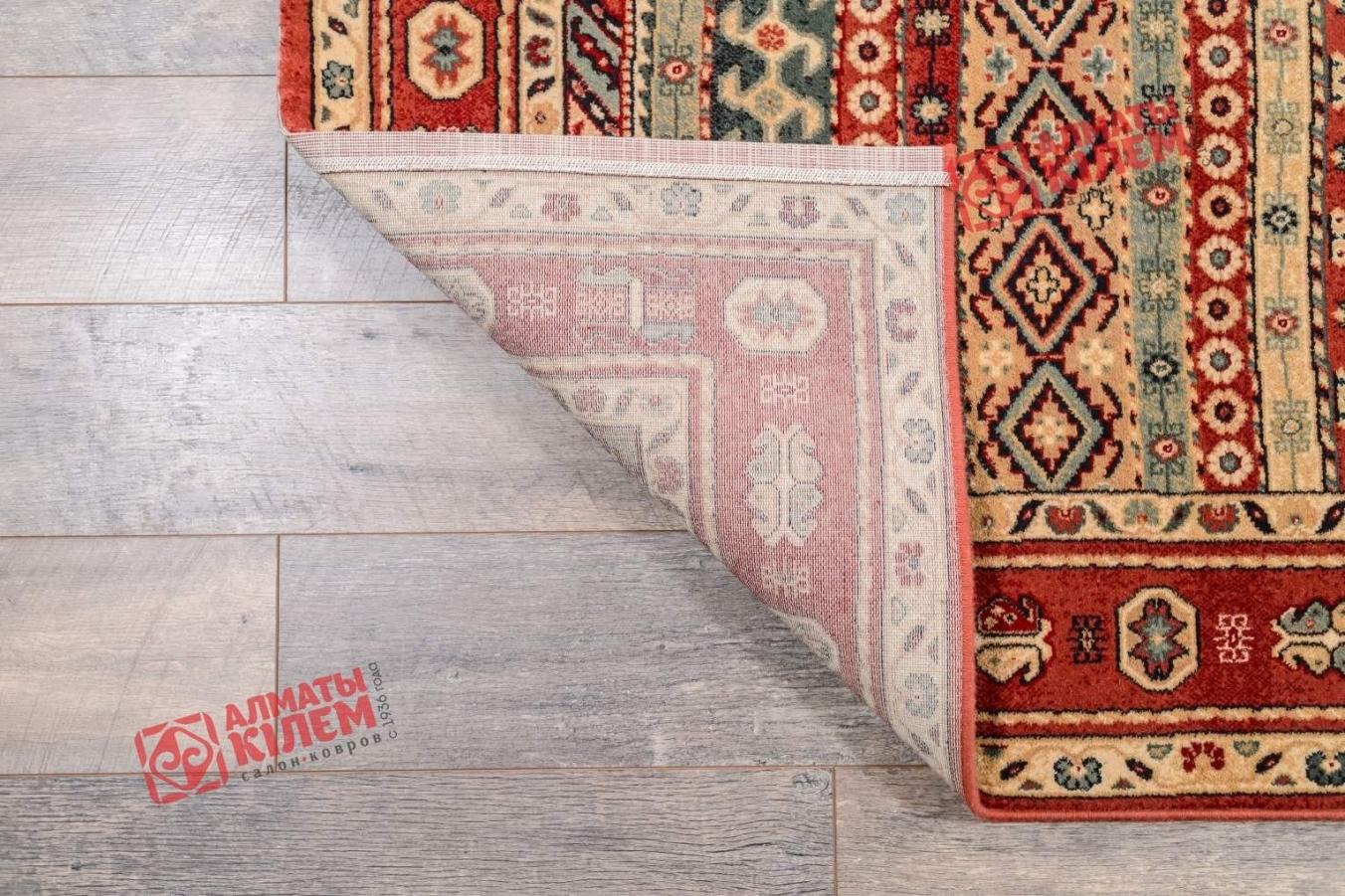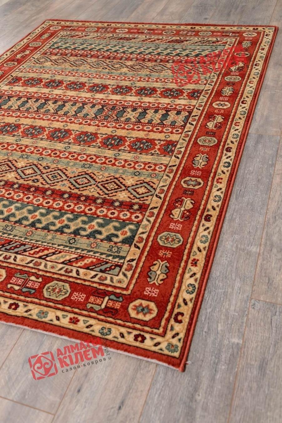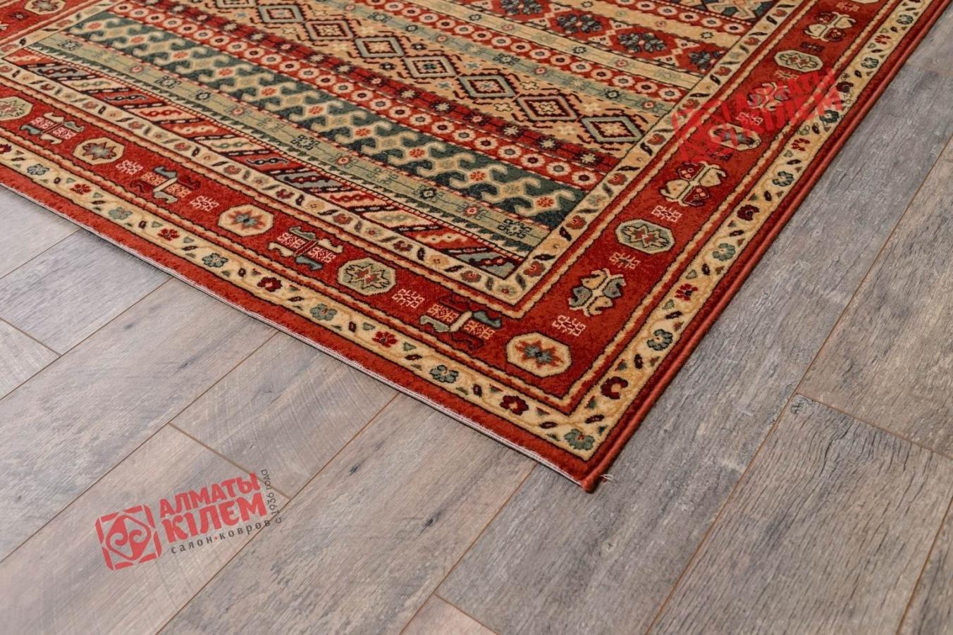 Оригинальный дизайн этого шерстяного ковра покоряет с первого взгляда. Он смотрится комфортно и уютно, приносит в атмосферу яркости и свежести, подчеркивает красоту мебели, декора и отделки. Модель выполнена в классическом стиле, но яркая расцветка и замысловатый орнамент придают покрытию особую изюминку. Она прекрасно сочетается абсолютно с любой палитрой. В сдержанной и монохромной гамме ковер станет ярким акцентным элементом, а в цветном и ярком дополнит собой общую концепцию интерьера. Прямоугольный медальон с геометрическим орнаментом, когда каждая полоска представлена своей фигурой, повторяющейся лишь дважды, обрамлен красным бордюром с узором.