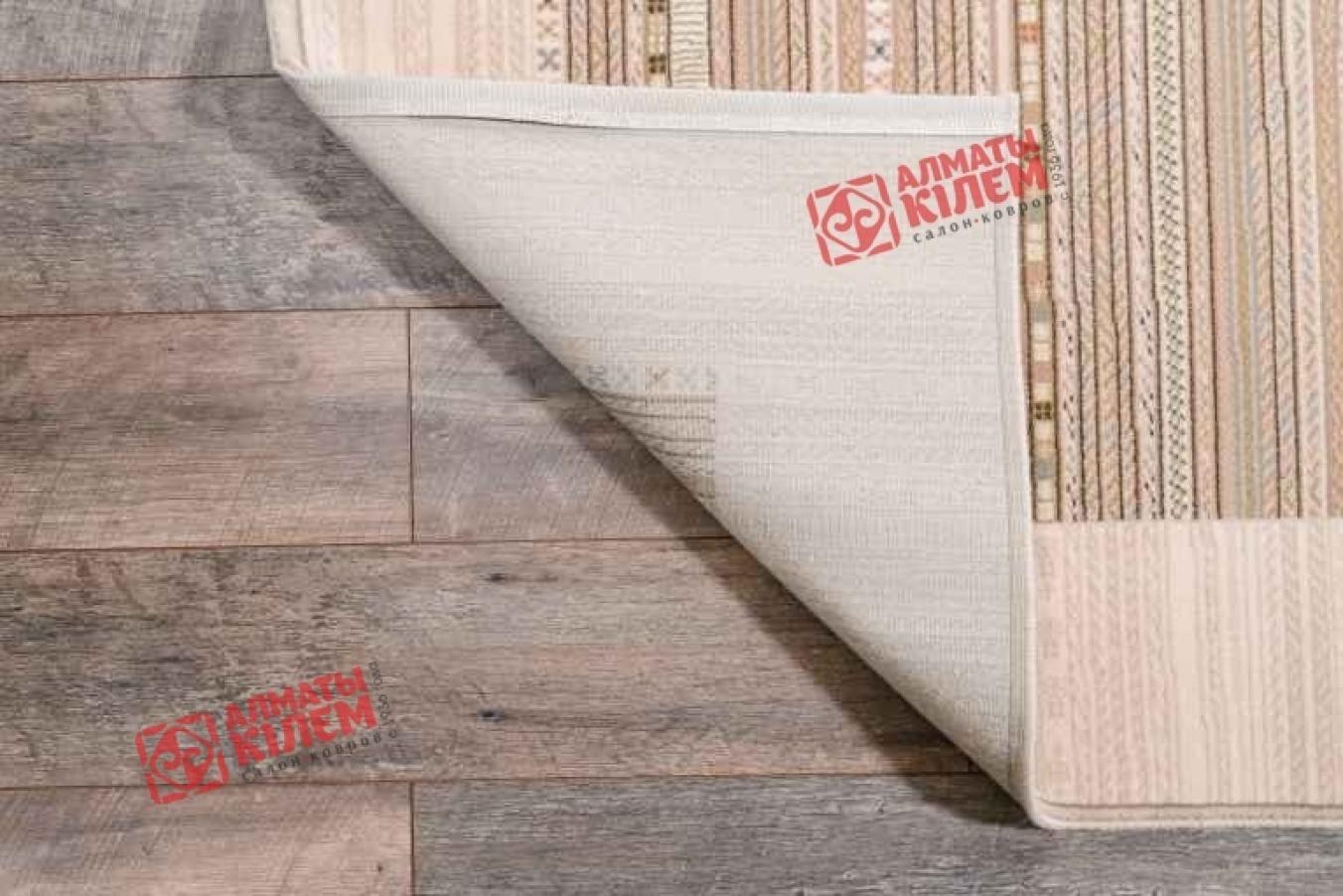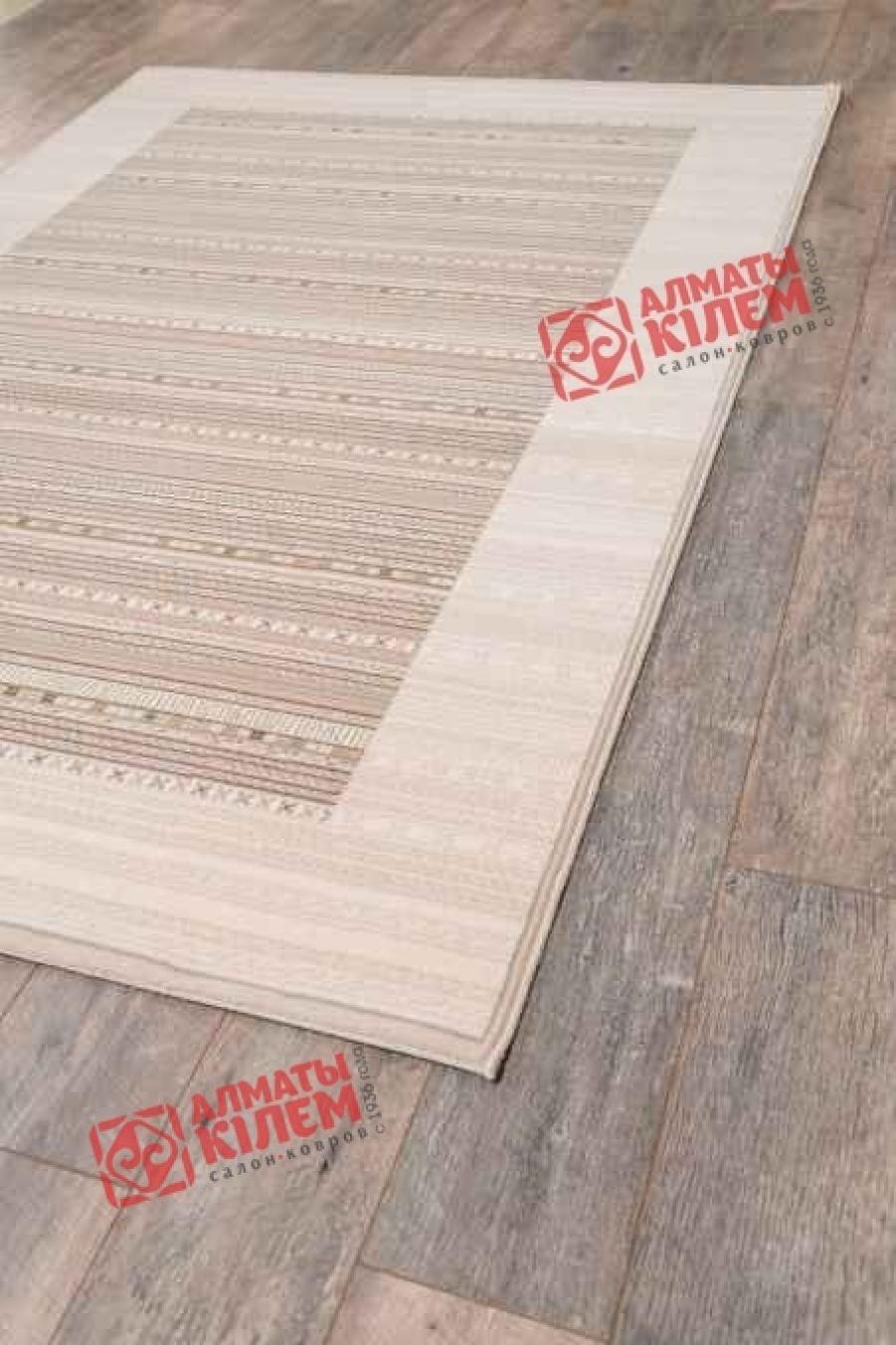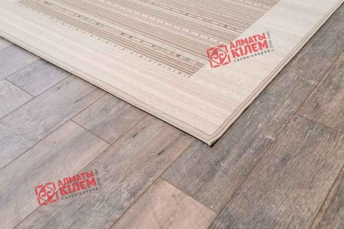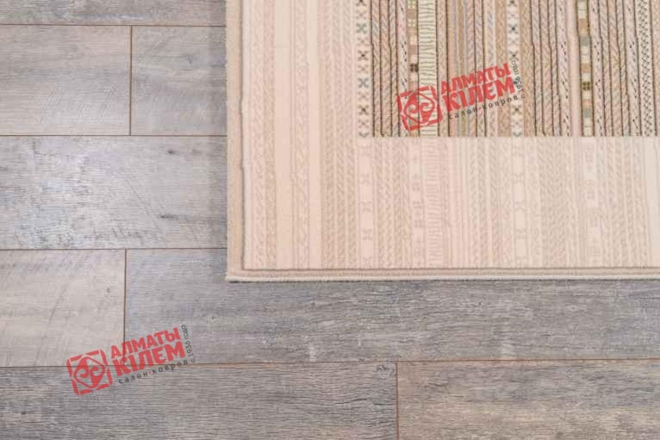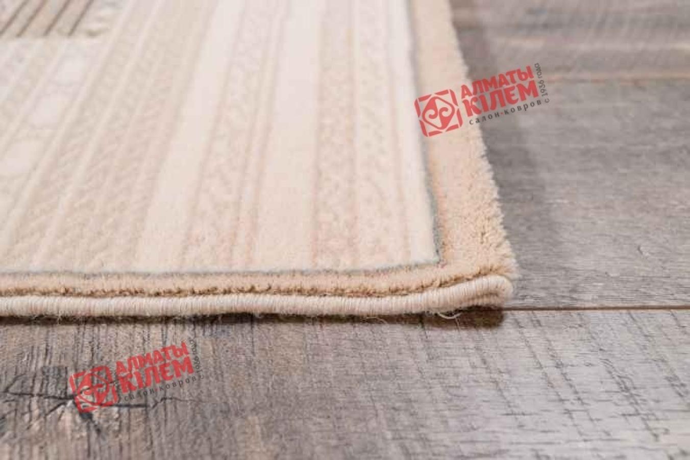 Классический напольный ковер в сдержанной пастельной палитре украсит собой домашние и офисные интерьеры. Он наполнит абсолютно любую комнату неповторимой атмосферой уюта и комфорта. Средний ворс натурального шерстяного волокна обладает не только роскошной и богатой фактурой, но и оставляет после себя исключительно самые приятные тактильные ощущения. Ходить по нему — одно сплошное удовольствие. Ногам всегда будет тепло и приятно. Полотно выполнено в бежевом цвете, но не лишено оригинальности. Центральную часть ковра украшает узор из мелких тонких полосок с геометрическим орнаментом. Рисунок сочетает в себе сразу несколько оттенков, что придает покрытию интересный дизайн.