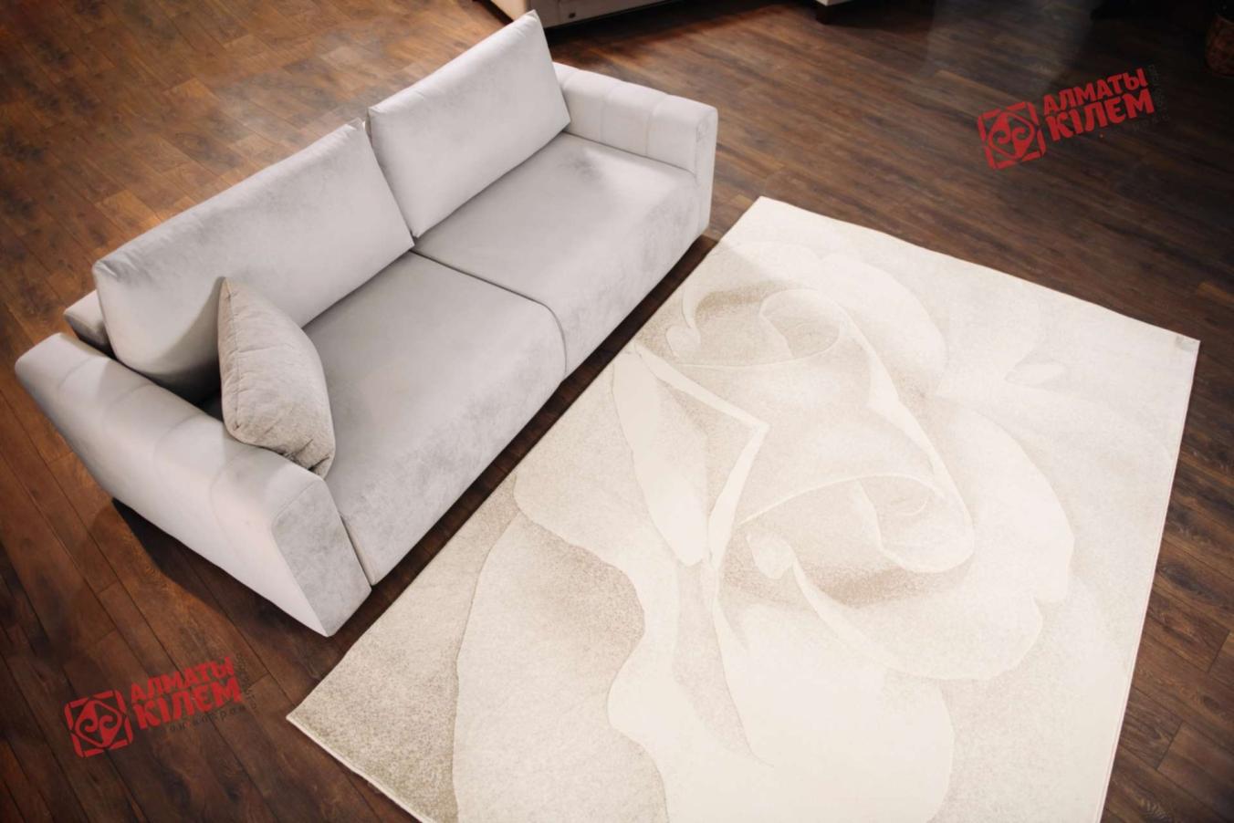 Шерстяной ковер производства Монголии из коллекции «Чингис» от бренда ERDENET CARPET в современном стиле с флористическим узором. Рисунок образован средней высоты ворсинками светлого и темного бежевого оттенков. Модель обладает высокой плотностью (340 тысяч узелков на 1 кв. м.). Основание выполнено из смеси джута, полиэстера, хлопка. Изделие обладает высокой устойчивостью к износу и истиранию. Это позволяет застилать ковром полы в домашних и офисных интерьерах.