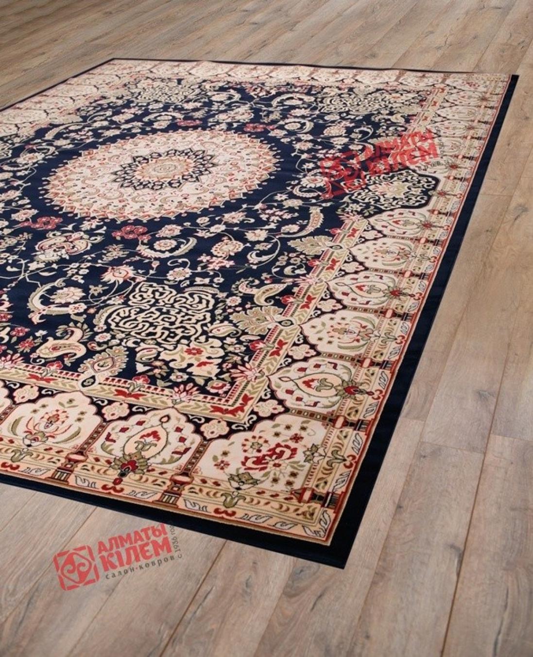 Невероятно роскошный и великолепный классический ковер, выполненный из натуральной шерсти, покоряет с первого взгляда. Его роскошный ворс средней высоты оставляет после себя исключительно приятные тактильные ощущения. Дизайн классической модели создан для украшения богато обставленных интерьеров гостиных, спален, столовых, прихожих, офисов, кабинетов, культурно-развлекательных учреждений. Темный медальон с бежево-кремовым флористическим узором и роскошной центральной розеткой придает ковру особую изюминку. Рисунок смотрится просто великолепно. Он обрамлен изысканным бордюром, орнамент которого отличается от главного рисунка и выполнен в виде закругленных ажурных прямоугольников.