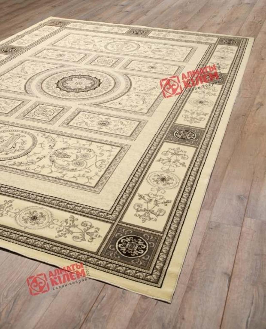 Роскошный и оригинальный дизайн напольного ковра из натуральной шерсти коллекции «Чингис ковер» создан для украшения богато обставленных интерьеров. Покрытие на пол великолепно вписывается в гостиные, спальни, столовые, кухни, прихожую, офис, кабинет, административные и культурные учреждения. Оно выполнено в античном стиле с изображением арф и флористических мотивов. Центральный медальон представляет собой рисунок из овальной розетки и прямоугольников с ажурными рамками. Завершенность и особую красоту изделию придает бордюр, повторяющий основной узор, а также темные вкрапления орнамента, которые разбавляют весь ансамбль утонченной и подчеркнуто сдержанной яркостью.