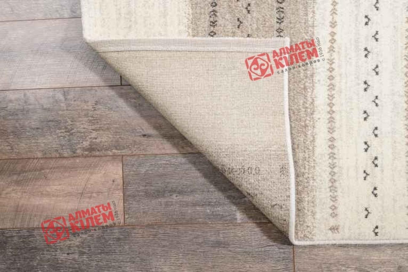 Изысканная модель из коллекции «Eco» от молдавского бренда Moldabela — это ультрамодное покрытие, способное преобразить собой обстановку кабинетов, офисов, квартир, особняков и коттеджей. Великолепная фактура шерстяного полотна подчеркивает респектабельность интерьеров и придает атмосфере особый уют. Средний ворс не только отлично согревает даже теплый полы, но и максимально комфортно ощущается под ногами. Модель выполнены в серо-бежевой палитре. Основной оттенок светлый. Рисунок представляет собой геометрические мелкие узоры, которые собраны в продольные полоски с различным орнаментом. Он выполнен с этническим мотивом, что смотрится весьма эффектно.