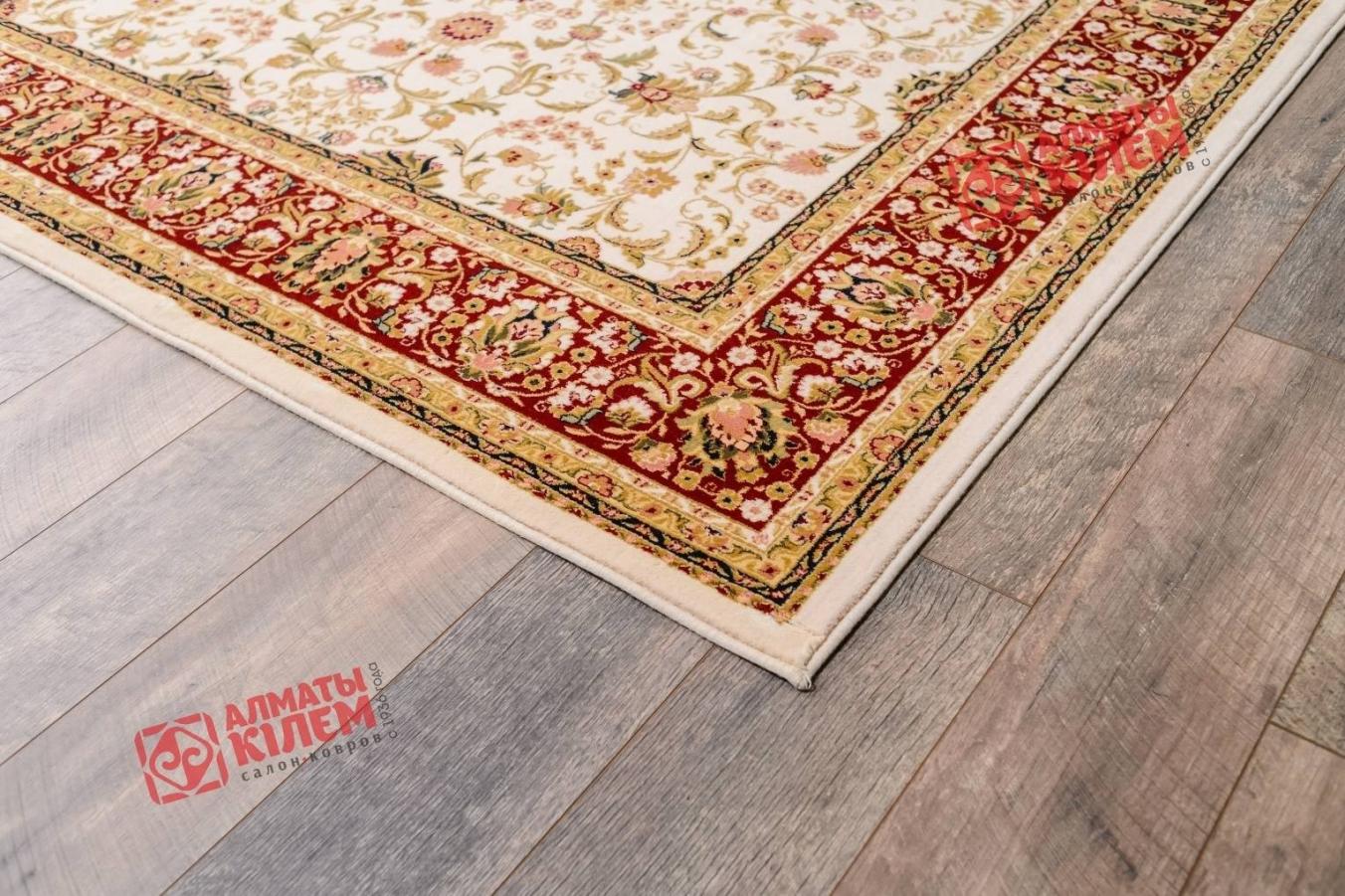 Шикарный классический ковер, выполненный из стопроцентной натуральной шерсти, в классическом стиле буквально создан для роскошных интерьеров. Он одинаково великолепно смотрится в домах, квартирах, офисах, приемных, кабинетах руководителей. Фактура напольного покрытия смотрится богато. Средний ворс оставляет после себя приятные тактильные ощущения. Сочетание красного и кремового позволяют изделию прекрасно вписываться абсолютно в любое цветовое решение, в котором оформлено помещение. Ковер одновременно ярок и сдержан. Светлый медальон декорирован мелким цветочным узором, а обрамляющий основной рисунок красный бордюр — более крупным флористическим мотивом.