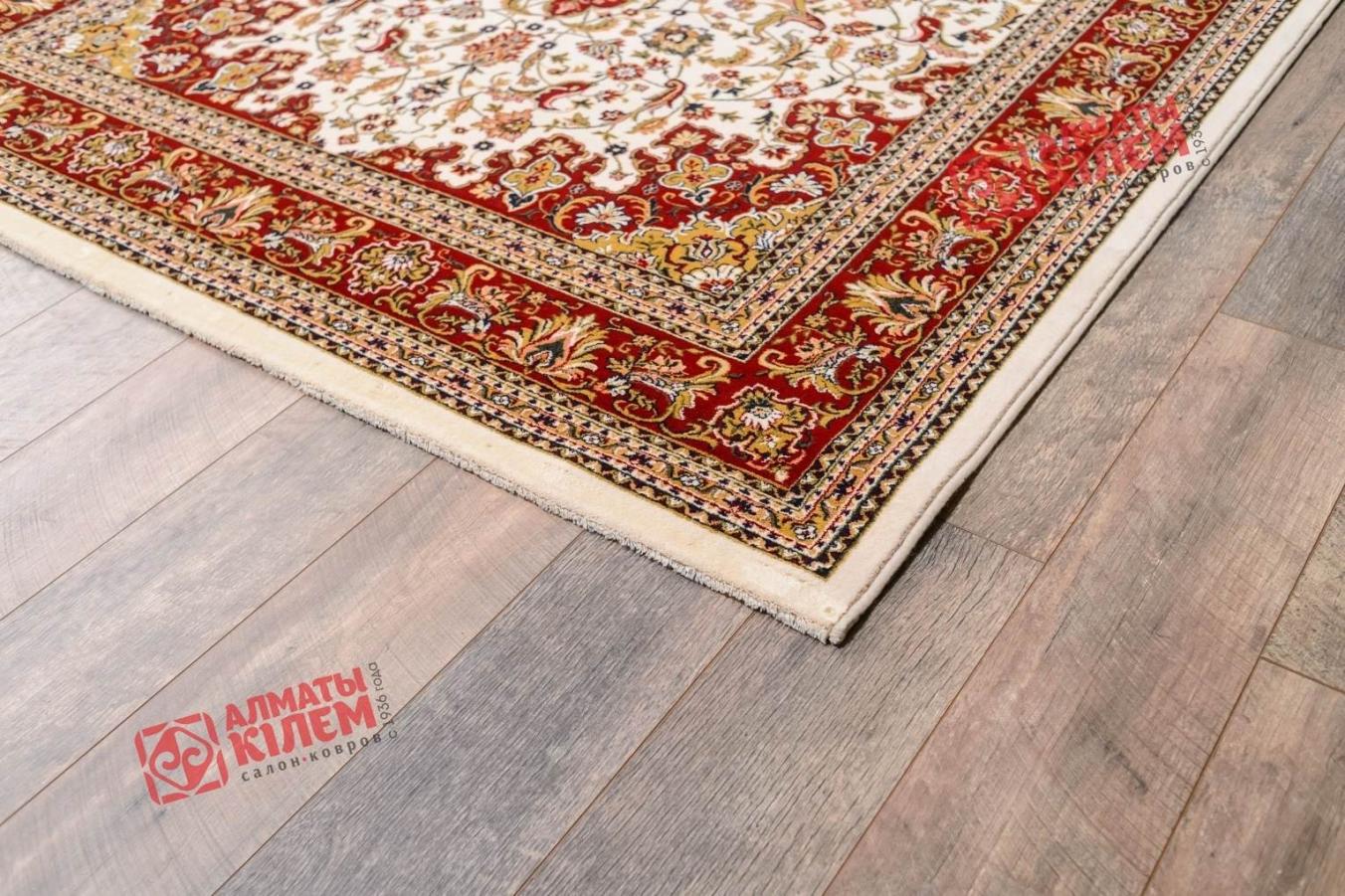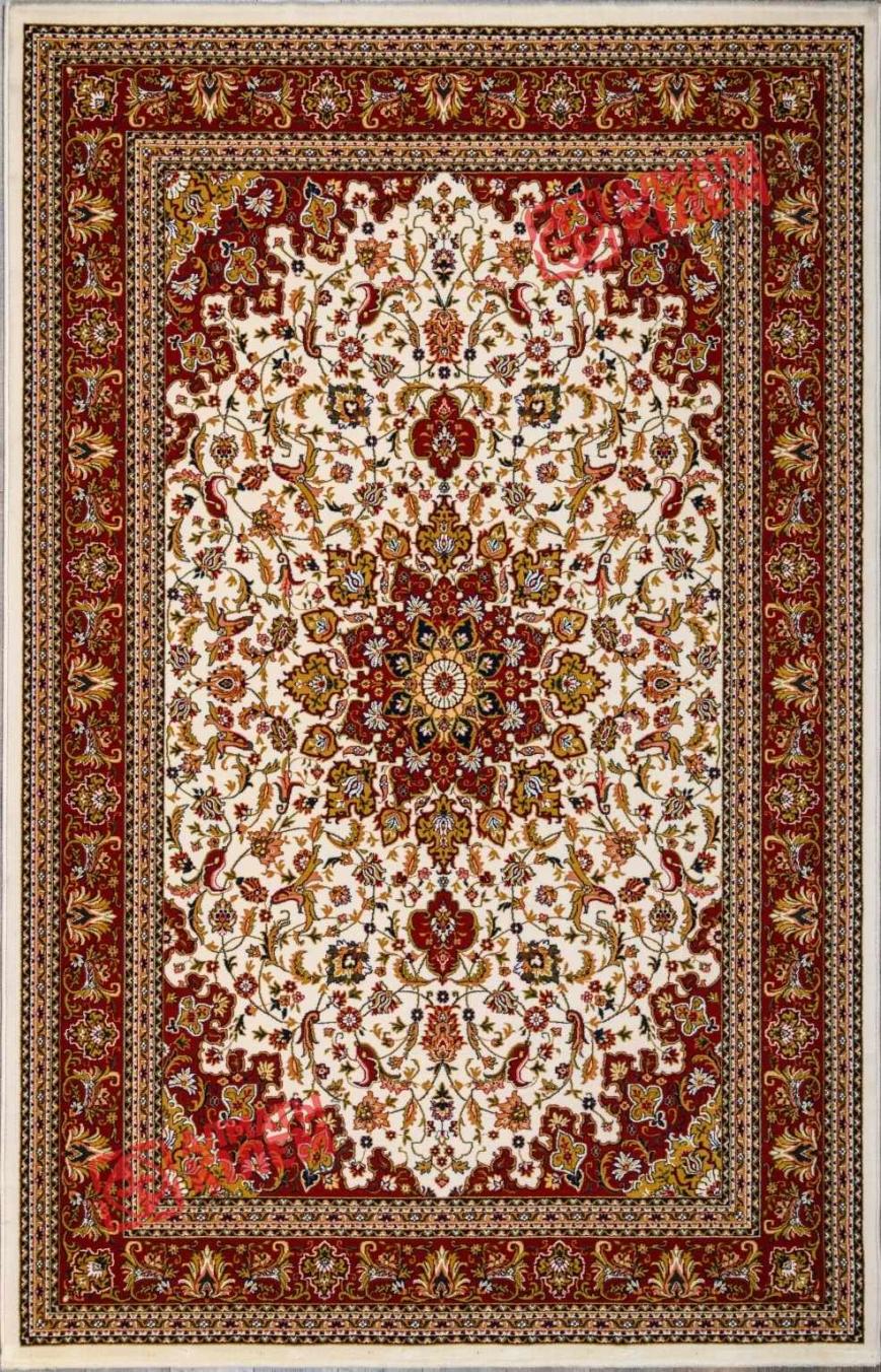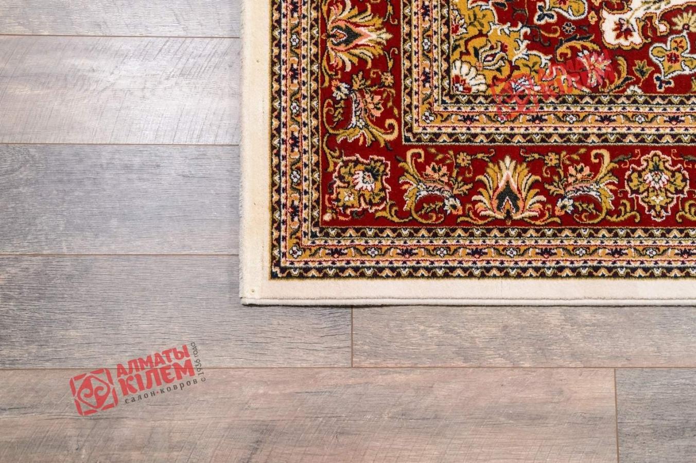 Великолепный ковер из коллекции «Elegance» является истинным воплощением классической элегантности, наполняет интерьеры роскошью и изысканностью. Выполненный из натуральной стопроцентной шерсти, он обладает поистине богатой фактурой, которая привносит соответствующую атмосферу в убранство домашней, офисной, административной обстановки. Гармоничное сочетание красного и бежевого подчеркивает красоту модели. Центральную часть медальона украшает красная в золотистом обрамлении ажурная розетка, «пускающая» свои ростки в виде небольших цветов и листочков по всему основному светлому рисунку. Они плавно переходят на красное обрамление и бордюр с флористическим узором.