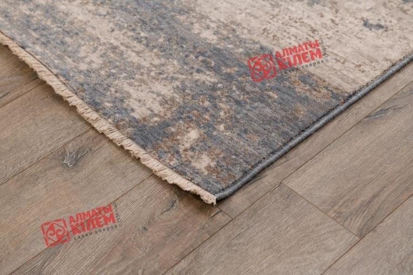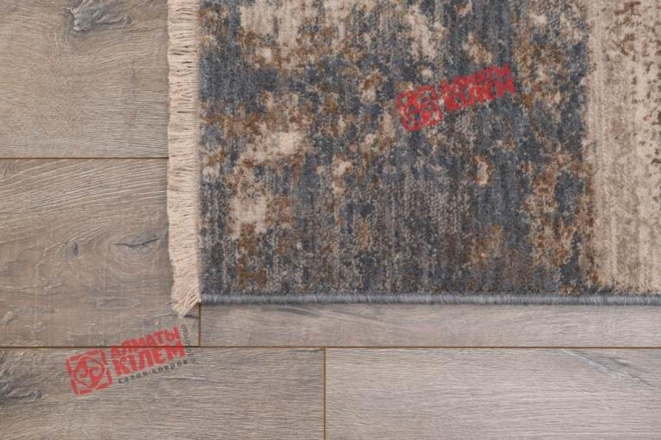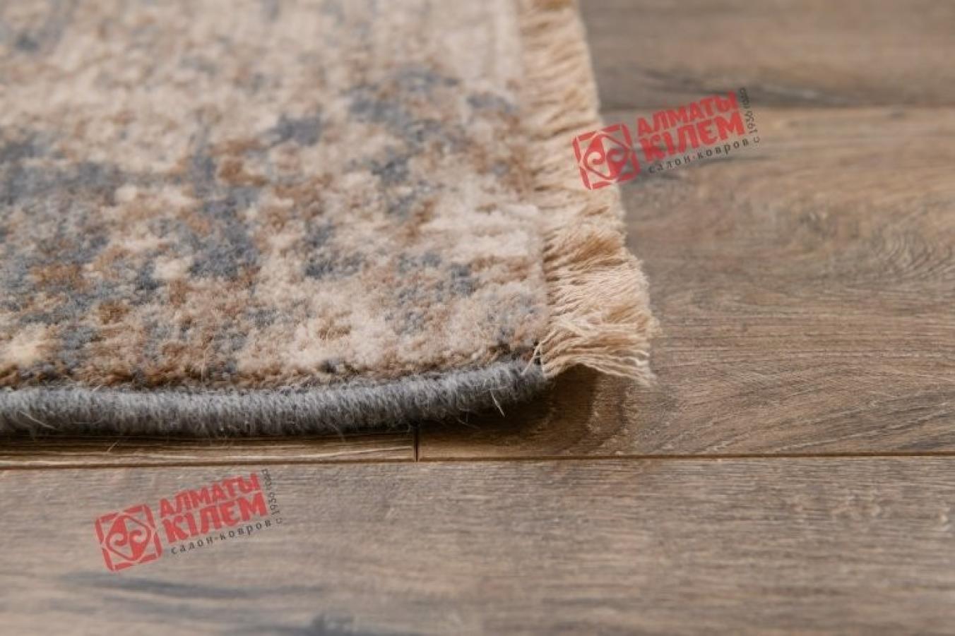 Роскошный напольный ковер от бельгийского бренда OSTA CARPETS — это покрытие из стопроцентно натуральной шерсти. Оно идеально вписывается в современные интерьеры гостиных, спален, столовых, прекрасно дополняет собой обстановку офисов и кабинетов руководителей. Сочетание серого и синего в различных оттенках, тонах и полутонах на бежевом полотне создает неповторимый оригинальный дизайн. По верхнему и нижнему краю идет бахрома, придающая изделию особую изюминку. Текстура однотонного ковра мягкая и нежная. Ходить по такому ковру — одно сплошное удовольствие.