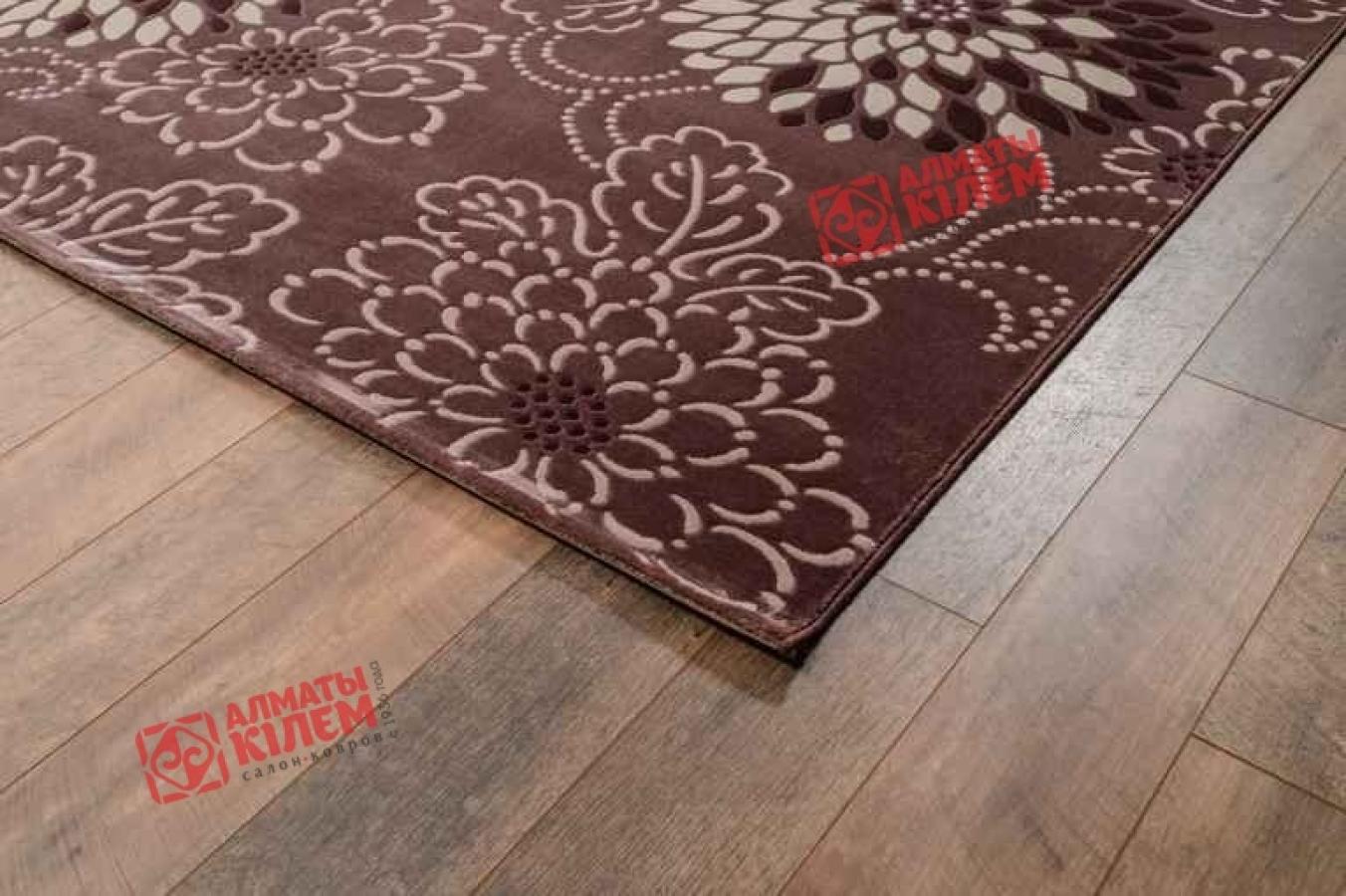 Роскошный ковер с флористическим мотивом поражает великолепием своей роскошной фактуры и дизайном. Необычное сочетание фиолетового, бордового и светлых оттенков смотрится одновременно и ярко, и утонченно. Цветочный узор состоит из двух отдельных слоев. Первый светлый со стеблями, листьями словно сливается с фиолетовым фоном и отличается лишь оттенком. Второй представляет собой роскошные цветы, похожие на бело-бордовые хризантемы. Рисунок смотрится реалистично и красочно. Присутствует легкий трехмерный эффект. Наш магазин ковров предлагает напольные покрытия, которые безусловно украсят собой не только залы, но и другие комнаты в доме, прекрасно сочетаясь как с яркими многоцветными, так и сдержанными интерьерами.