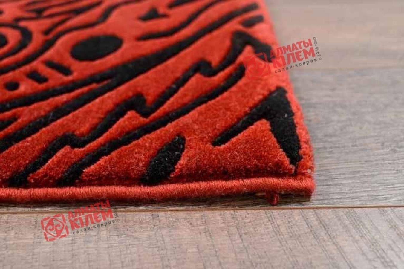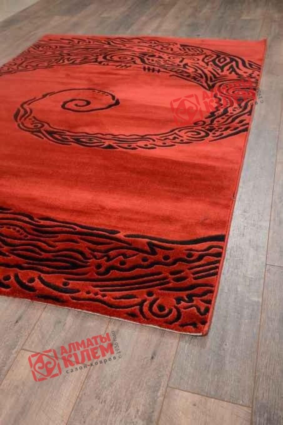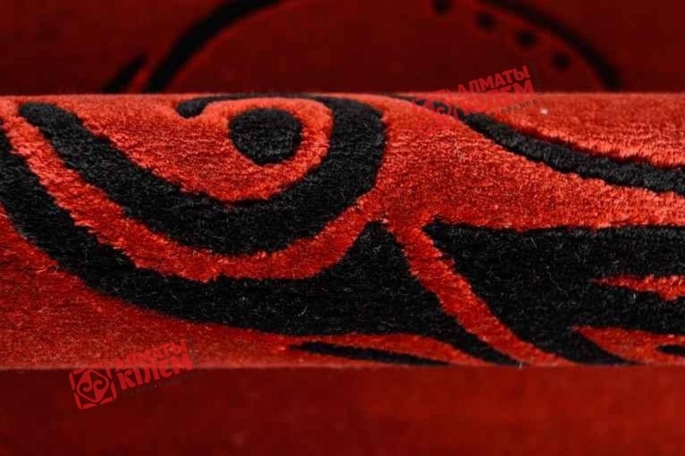 Шикарный ковер в контрастной палитре красного и черного станет идеальным выбором для интерьеров в современном стиле. Спиралевидный темный круг, закручивающийся к самому центру, образован ажурным рисунком, который не скрывает темно-красного оттенка фона. Покрытие смотрится невероятно красиво и оригинально. Оно одновременно красочное и строгое, поэтому может стать как акцентным элементом дизайна, так и дополнит собой насыщенные сочными красками интерьеры. Акриловый высокий ворс в сочетании с оригинальным рисунком создает неповторимо красивую фактуру, которая смотрится роскошно, поддерживает полы теплыми и приятными для хождения как в обуви, так и босиком.