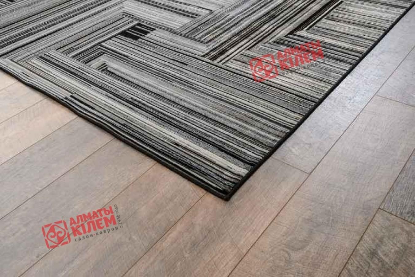 Великолепный ковер из вискозы в черно-серой палитре смотрится по-настоящему оригинально и роскошно. Абстрактная геометрия в виде полосок создает на поверхности полотна замысловатый узор. Одни полоски направлены горизонтально, а другие — вертикально. Чередование положения, длины, оттенков, а также плавные или резкие переходы придают геометрическому рисунку объемности. Вкрапления коричневого и четкость полосок усиливают трехмерный эффект. Геометрический ковер выполнен из вискозы. Она не просто безопасна, не вызывает аллергической реакции, а еще и невероятно красива. Фактура материала напоминает собой дорогой шелк, переливающийся благородным блеском.