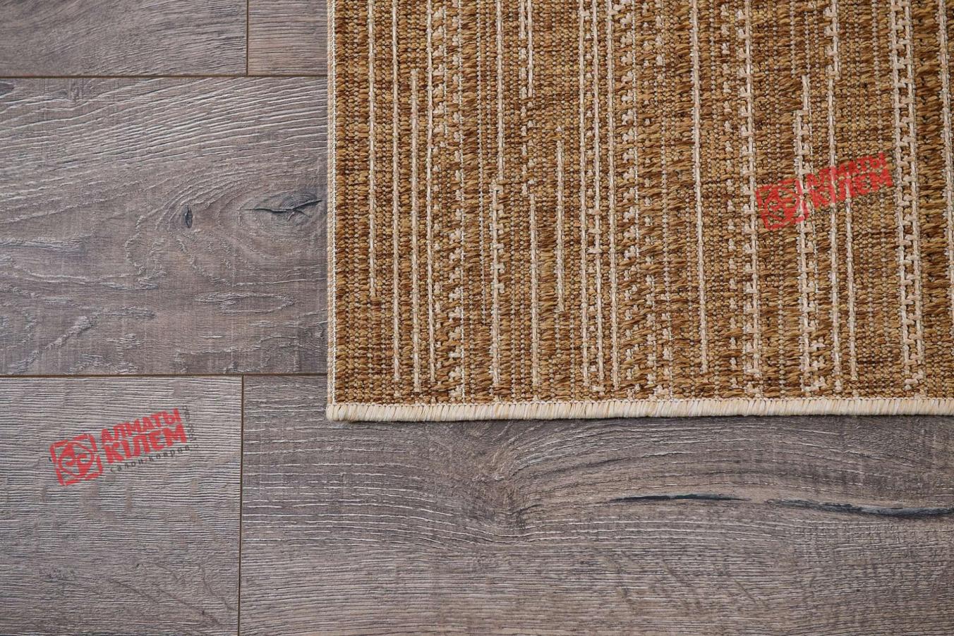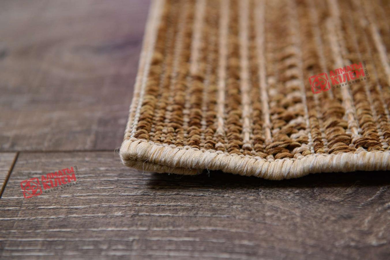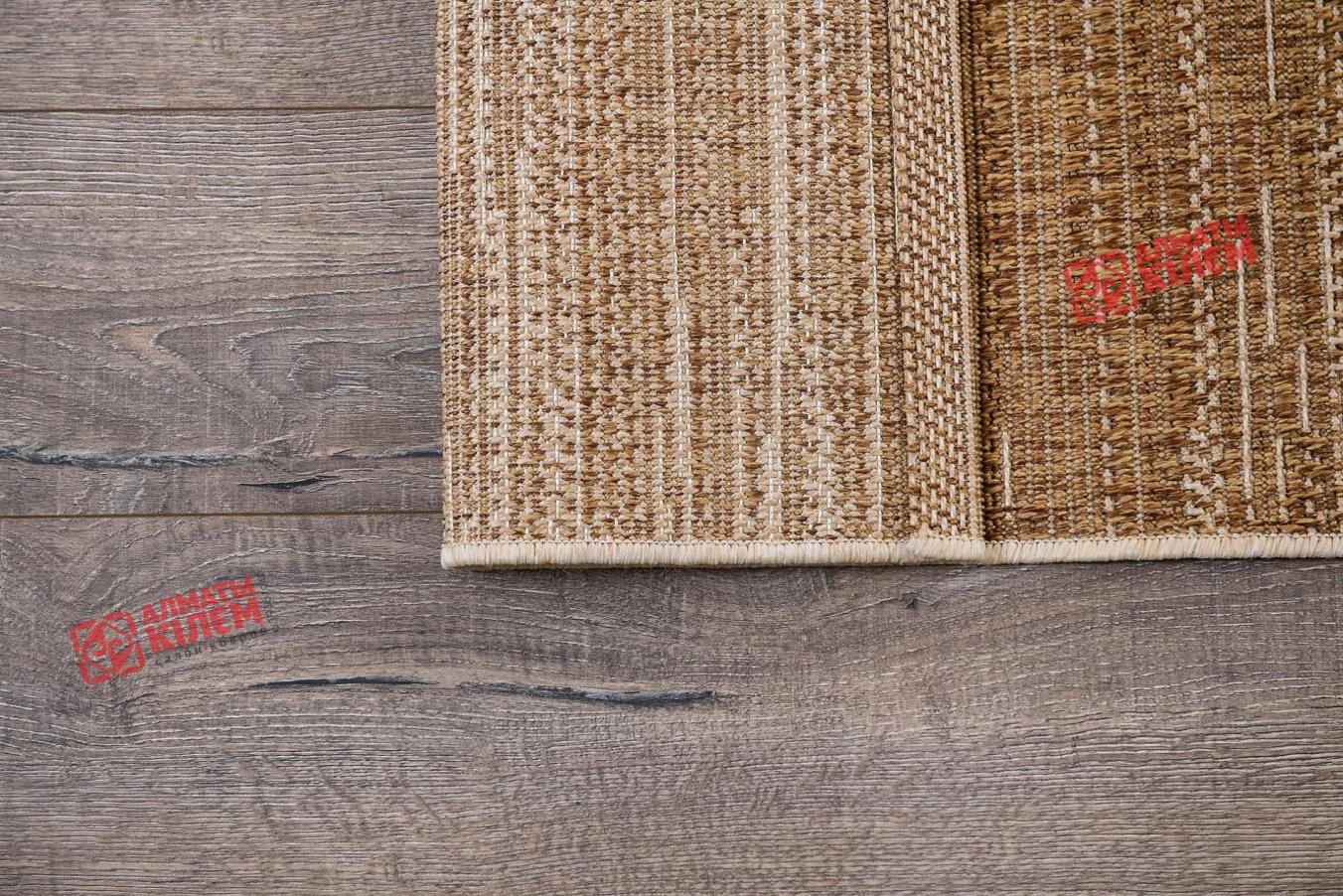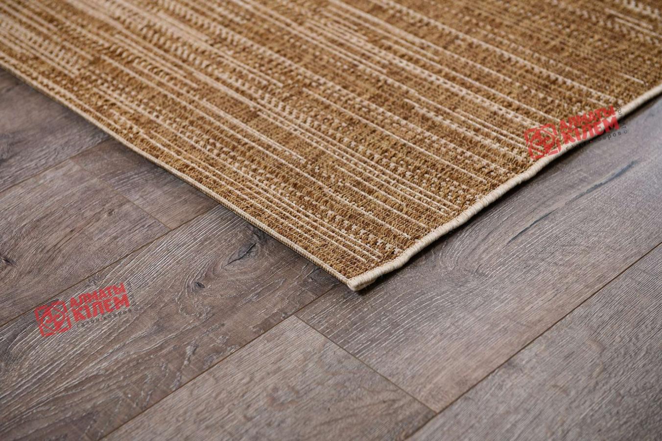 Безворсовый ковер бельгийского производства представляет собой покрытие, полностью выполненное из полипропилена. Главной особенностью модели в современном дизайне и бежево-коричневой расцветке является простота и легкость в уходе. Обусловлено это тем, что циновка лишена ворсинок, в которые забивалась бы пыль. Это делает изделие отличным выбором для людей, склонных к аллергии. Покрытие идеально подходит для таких комнат как кухня, столовая, ванная и прихожая.