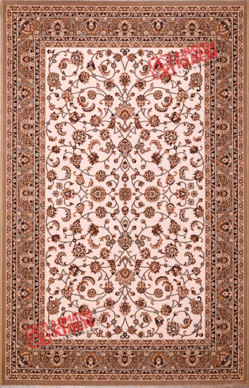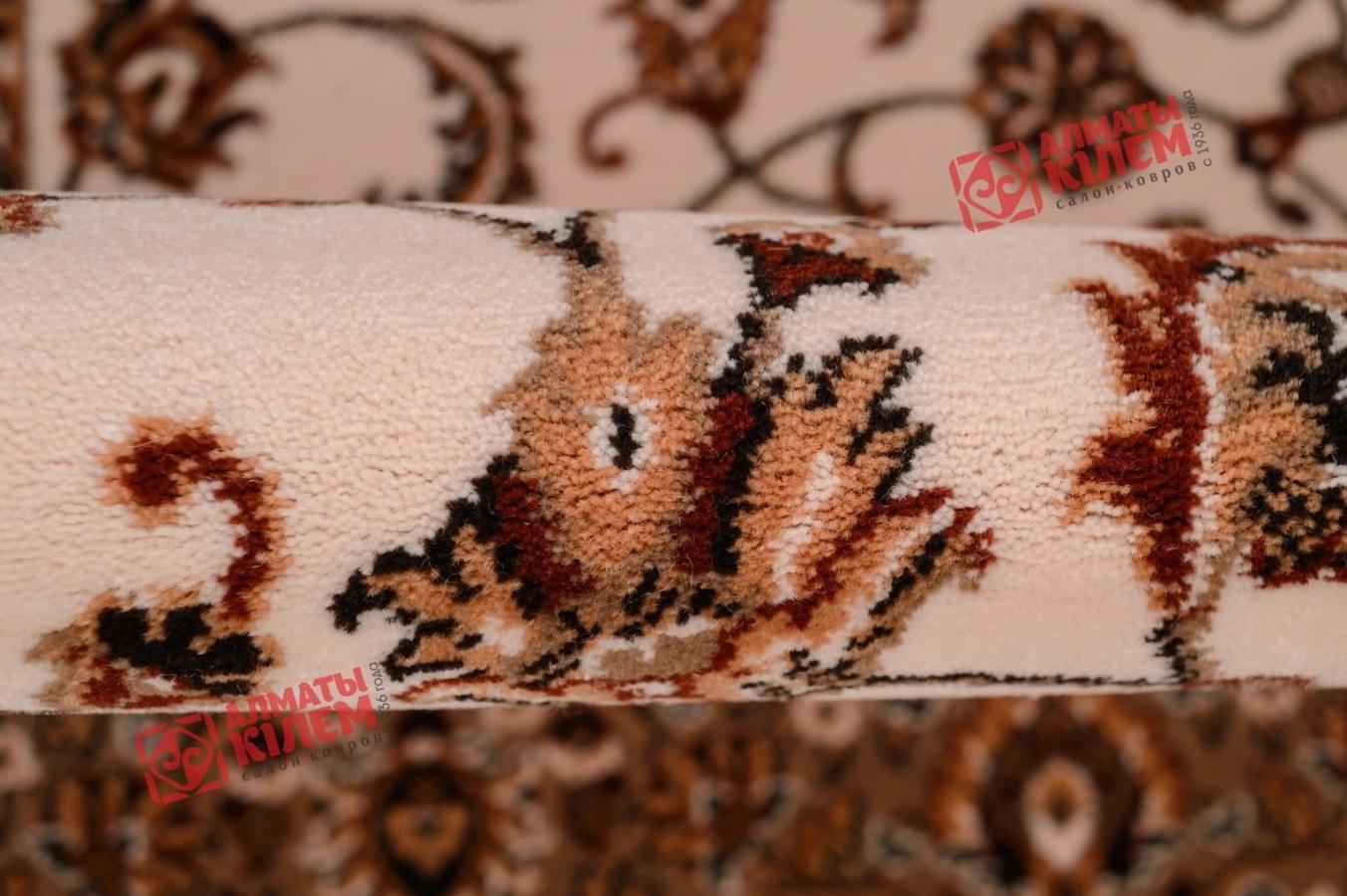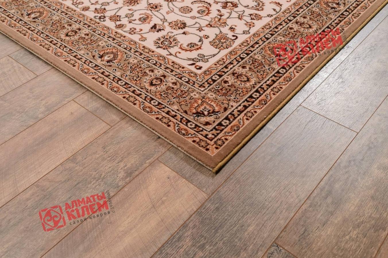 Роскошный натуральный ковер из стопроцентной шерсти со средним ворсом — это европейское качество по доступной стоимости. Напольное покрытие одинаково великолепно смотрится в классических интерьерах кабинетов, офисов, гостиных комнат, залов, спален, столовых, прихожих и холлов. Оно оставляет после себя прекрасные тактильные ощущения на коже от соприкосновения и при ходьбе, способствуя расслаблению. На бежевое полотно нанесен флористический мотив коричневого оттенка. Цветы соединены замысловатыми округленными листиками и стеблями. Завершенность узору придает коричневая рамка, обрамляющая бельгийский ковер по краю, повторяющая основной рисунок.