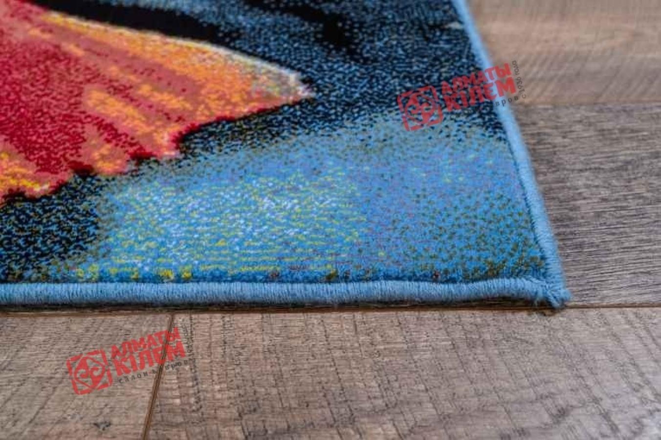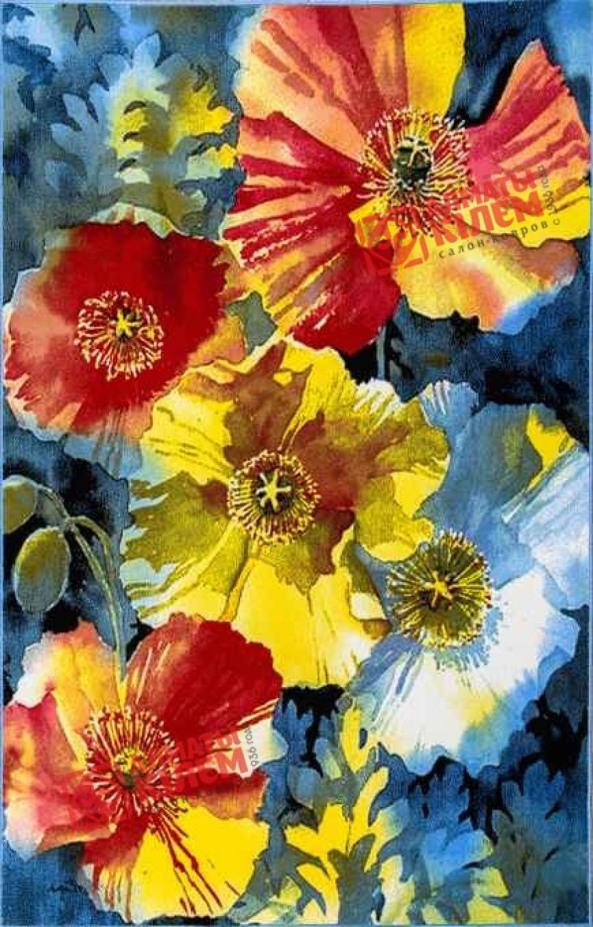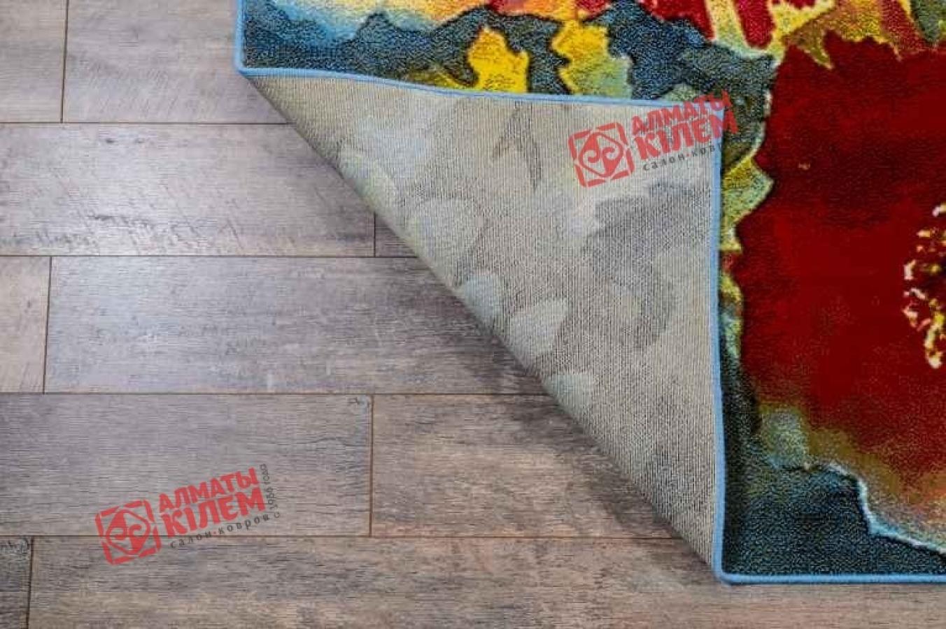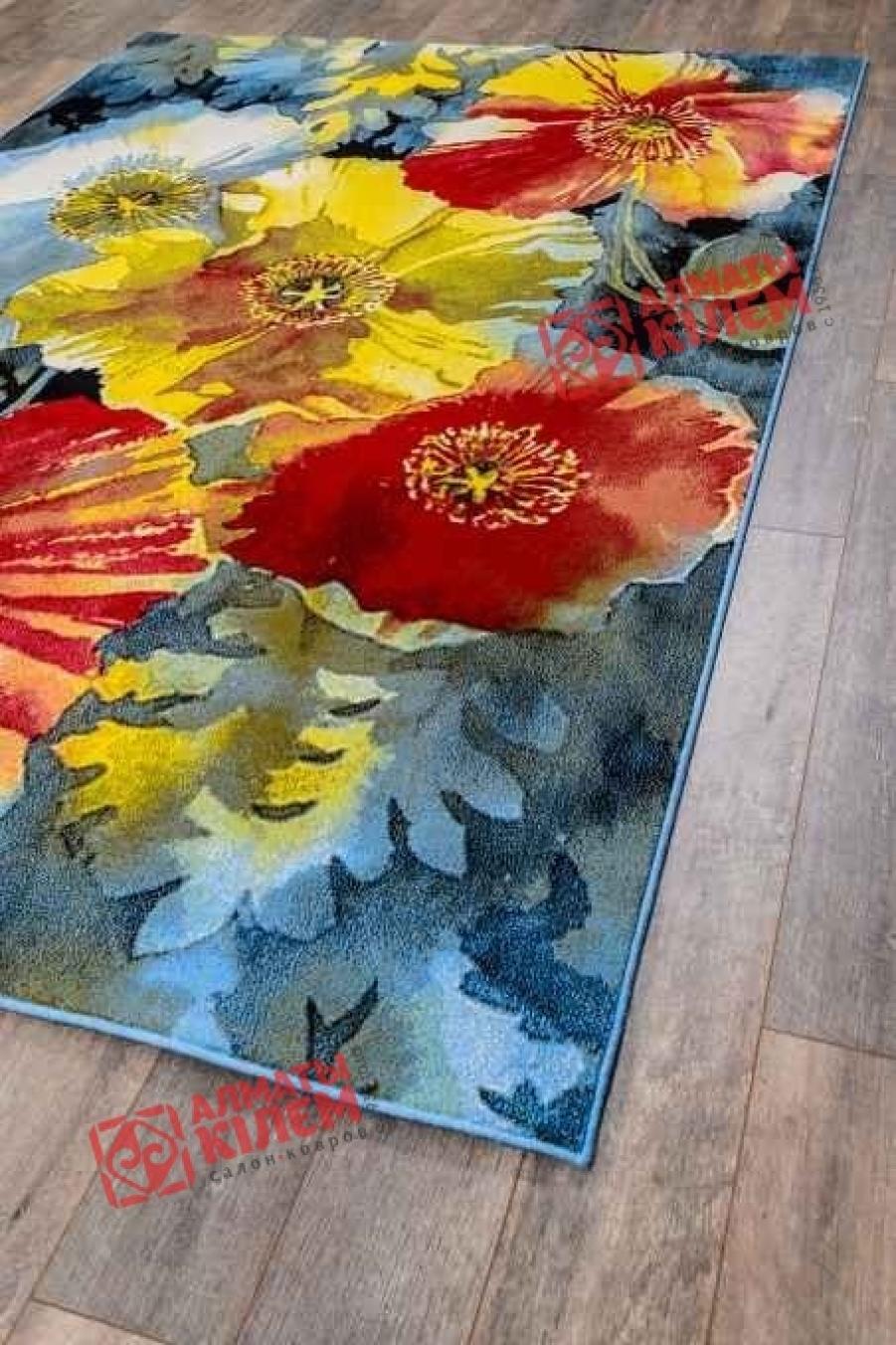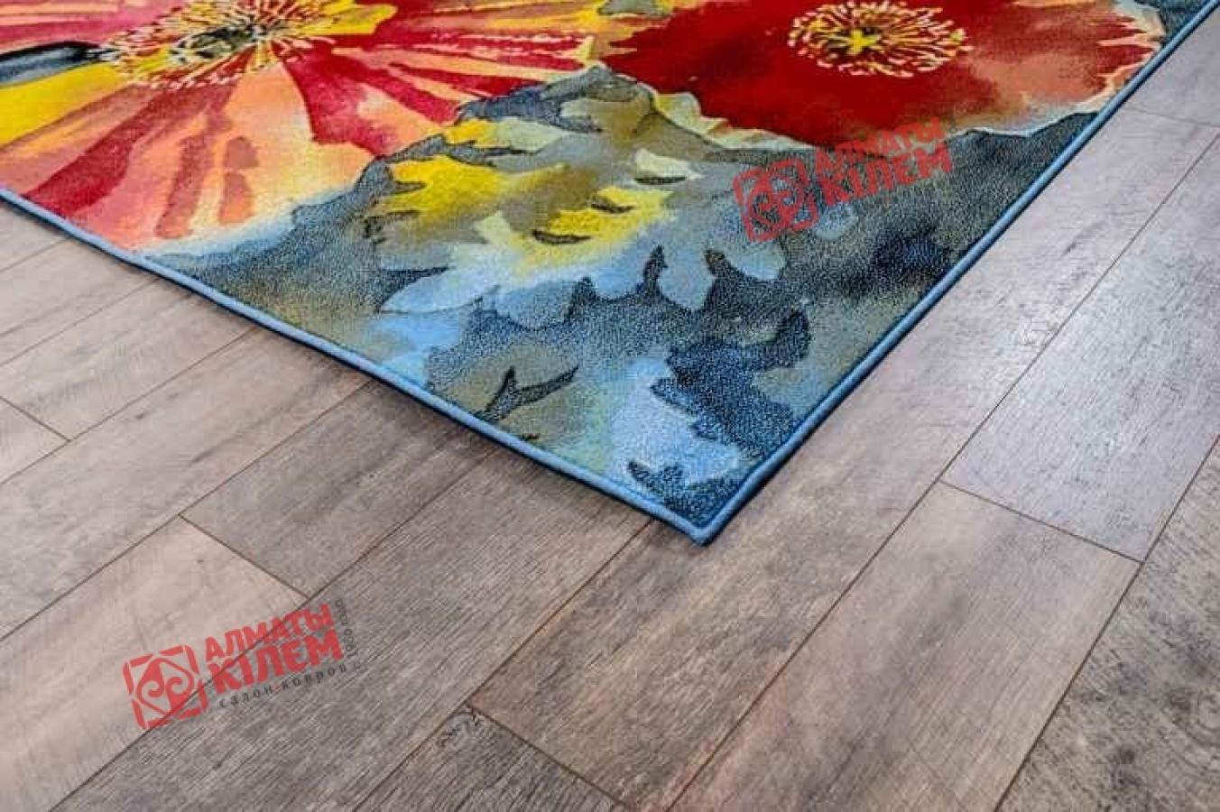 Роскошный ковер из шерсти с примесью полиамида в цветочном дизайне станет тем самым ярким акцентным элементом, который придает интерьеру завершенность. Полотно выполнено в палитре «мультиколор», сочетающий в себе сразу несколько оттенков. На синем с голубизной фоне изображены роскошные распустившиеся цветы с желтыми, красными, голубоватыми лепестками. Изделие прекрасно вписывается в гостиные, спальни, столовые, прихожие и отлично дополняет современные интерьеры, а также классические, если решено придать обстановке оригинальности. Средний ворс обладает приятными тактильными ощущениями.