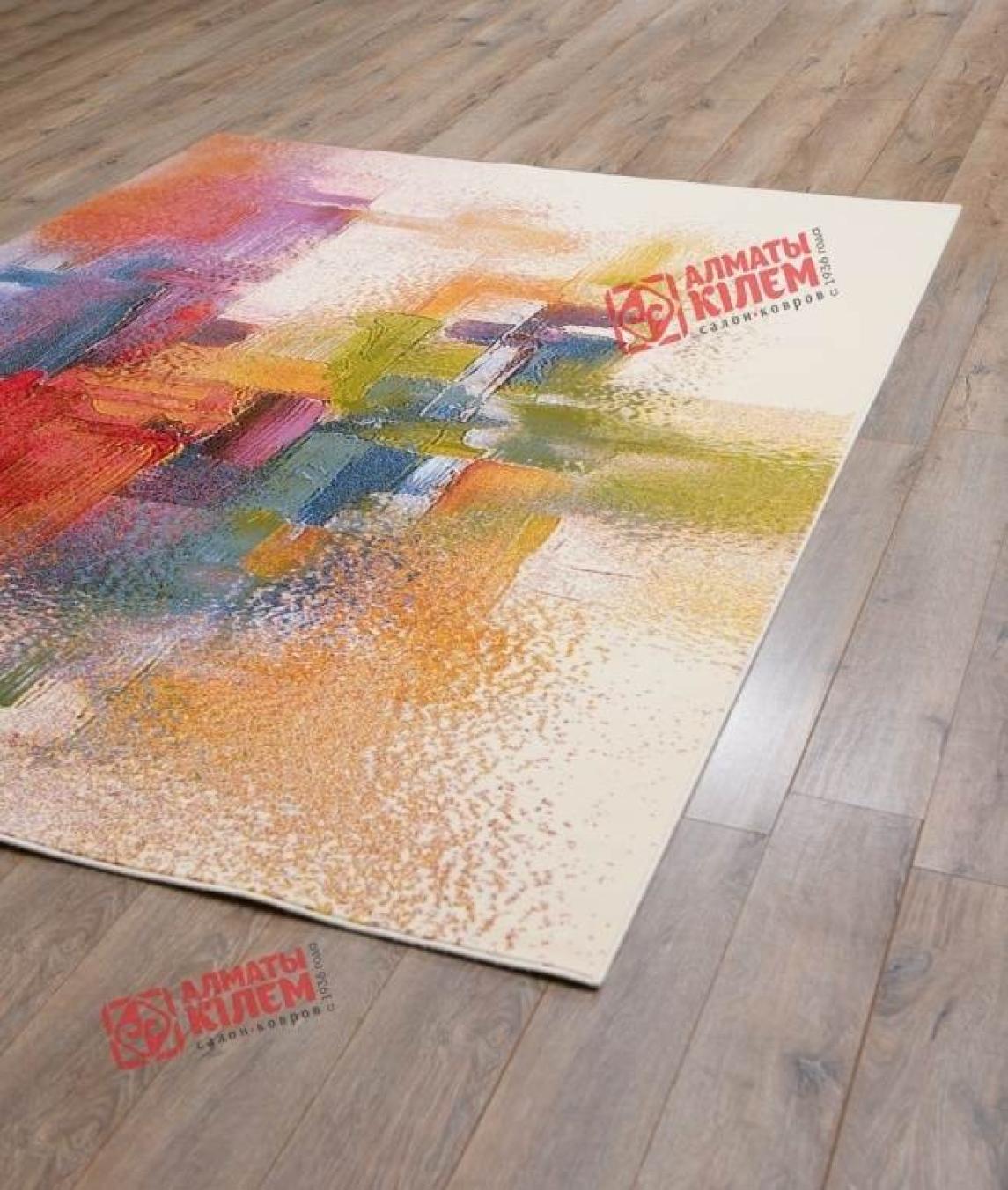 Шикарный шерстяной ковер в современном стиле не оставит равнодушным абсолютно никого. Он займет центральное место в гостиной, спальне, столовой, прихожей, кабинете или офисе и буквально преобразит собой интерьер. Светлое полотно с ярким рисунком придаст всей обстановке особую атмосферу уюта и наполнит помещение свежестью и позитивным настроением. Оно лучше всего подходит к интерьерам в светлых тонах. Узор представляет собой цветные мазки краски, хаотично расположенные от центра к краям. Абстрактный рисунок прекрасно сочетается с современной мебелью, артами, декором. Ковер станет идеальным дополнением в комнаты, оформленные в стиле хай=тек, минимализм, модерн.