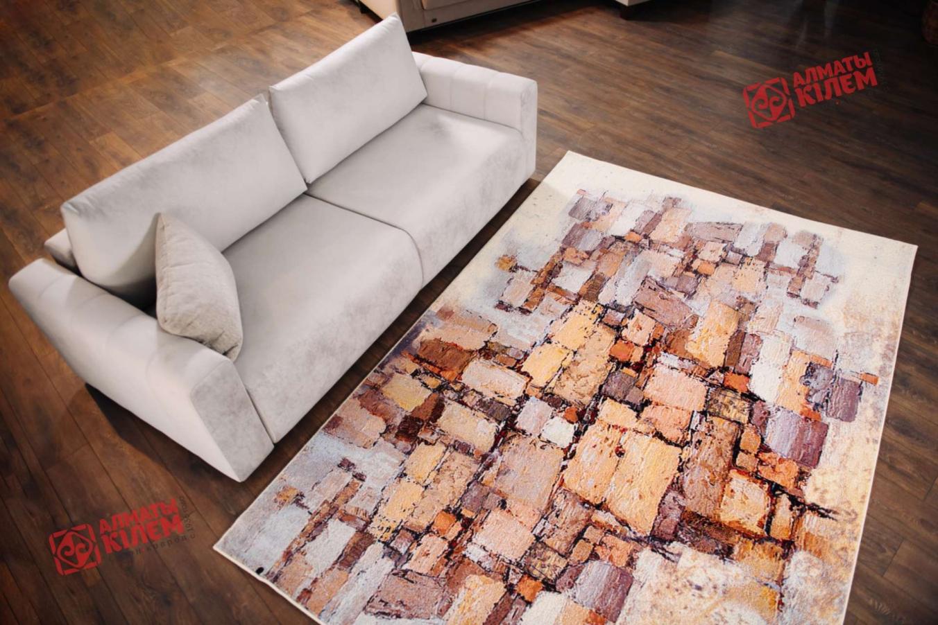 Роскошный напольный ковер монгольского бренда Erdenet Carpet из шерсти с добавлением полиамида (не более 20%) на основе из джута, хлопка, полиэстера. Высота плотного ворса варьируется от 9 до 11 мм. Особую оригинальность покрытию придает рисунок абстрактной кирпичной кладки, плавно переходящей в бежевый основной цвет изделия. Лучше всего подобная модель смотрится в современных интерьерах квартир и домов. Особенно красиво он смотрится в модерне, минимализме, хай-теке.