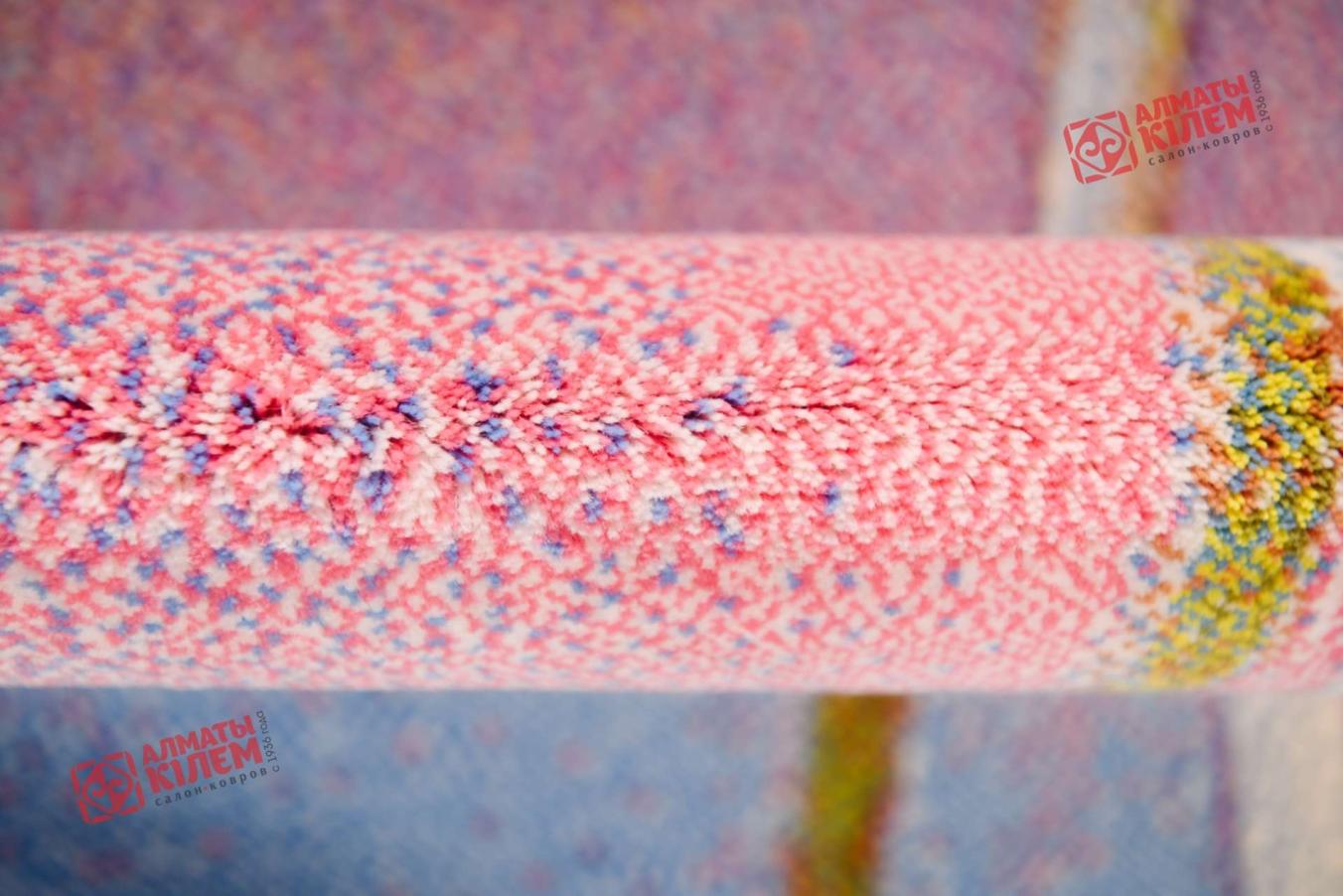Невероятно оригинальный ковер от известного монгольского бренда Erdenet Carpet из коллекции «Хунну». Покрытие напоминает собой роскошную картину с изображением двух крупных цветов с высокими ножками на цветном фоне из плавно переходящих друг в друга волн синего, розового, фиолетового и бордового оттенков. Изделие выполнено из высококачественной шерсти с ворсом средней высоты (9-11 мм) плотного плетения (680 тысяч узлов на 1 кв. м.). Модель лучше всего смотрится в гостиной.